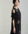 繊細なチュールスリーブと立体的な花柄刺繍が映えるIラインドレス
