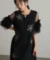 ショルダー部分にチュールをあしらい、軽やかな抜け感を表現