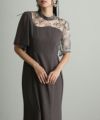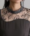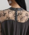 デコルテから腕にかけてのレースの透け感が、上品で華やかな印象に。