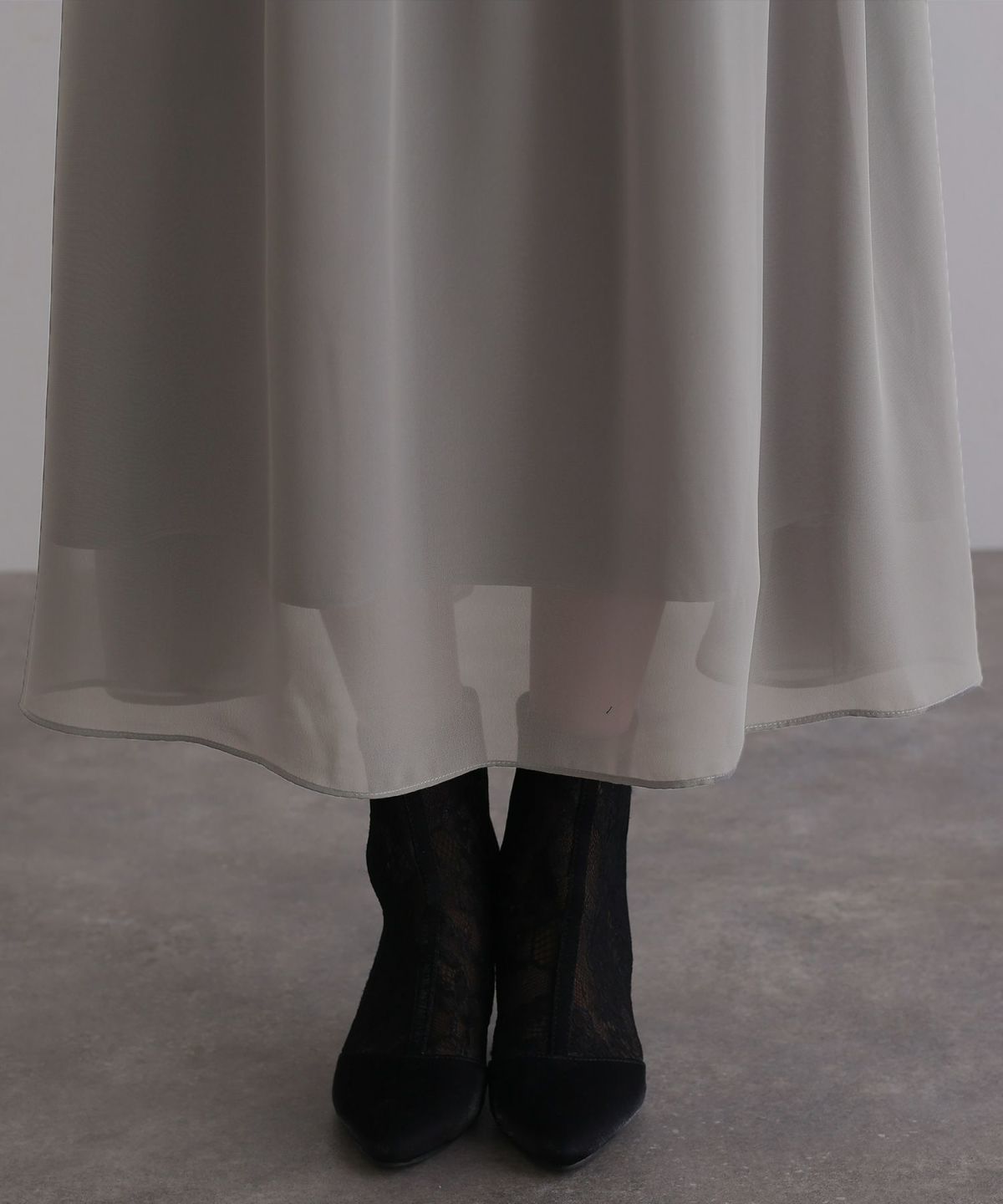 ■軽やかなシフォン生地でストレスフリースカートは歩くとふわっと広がって女性らしさをプラスしてくれます。