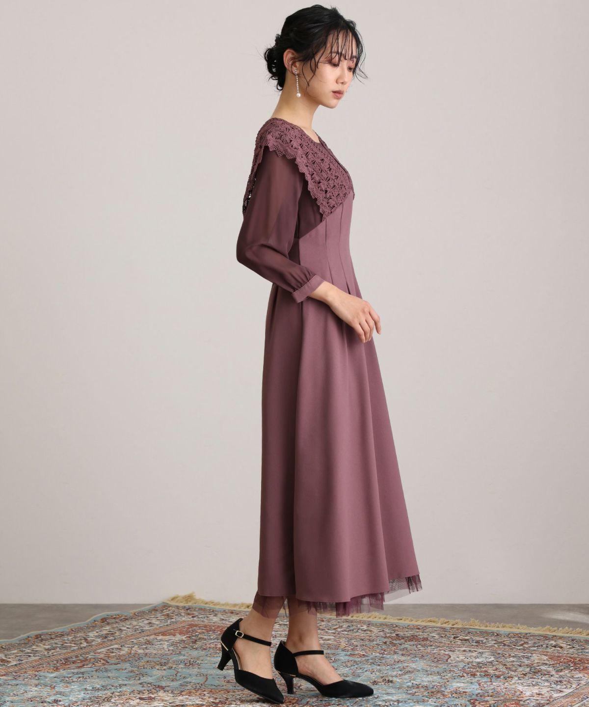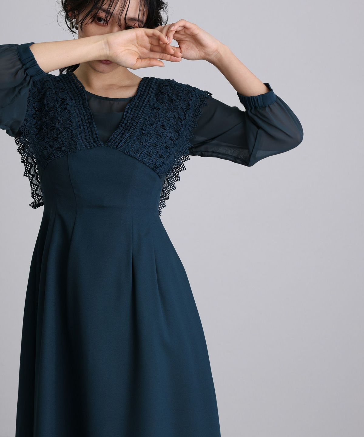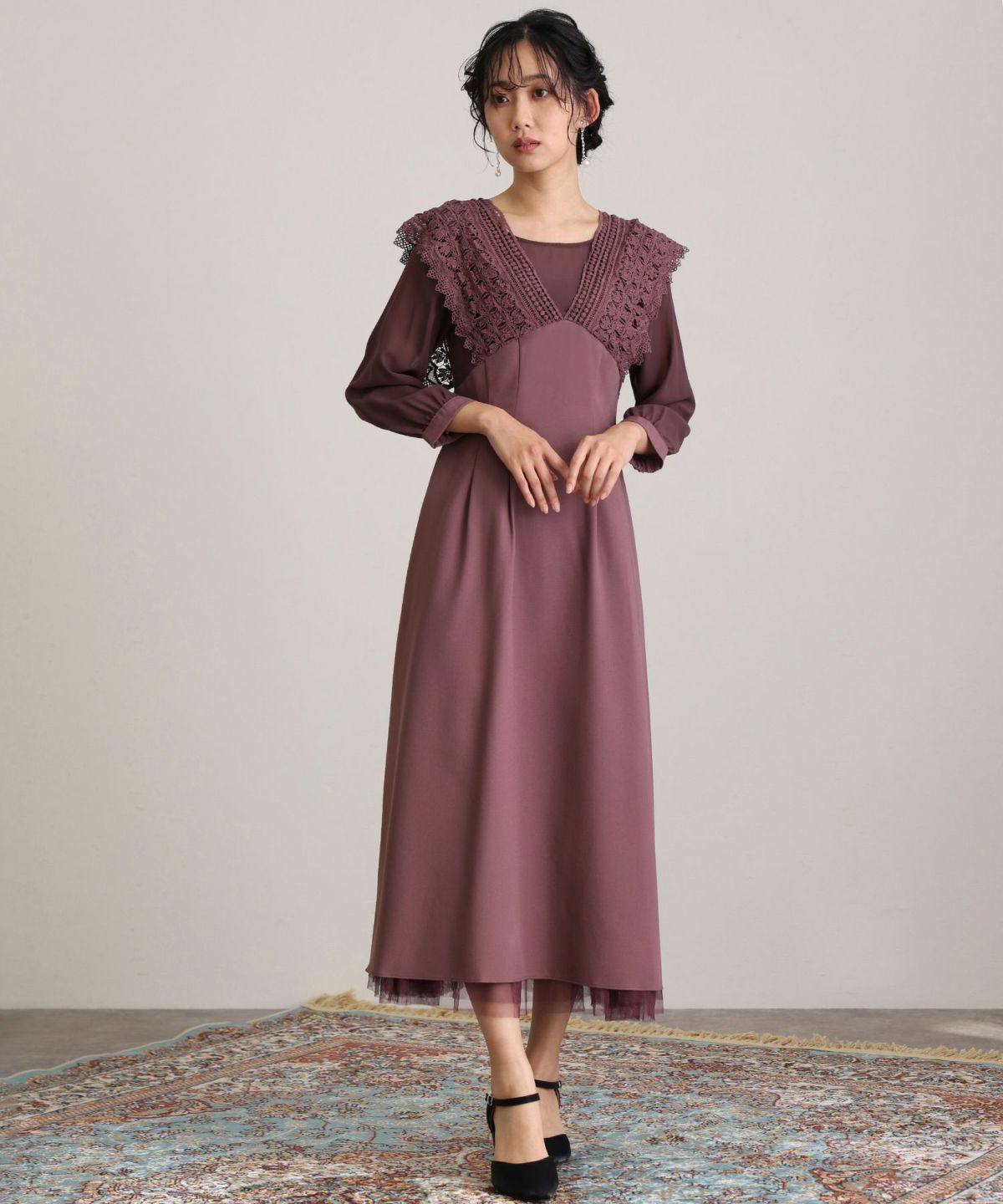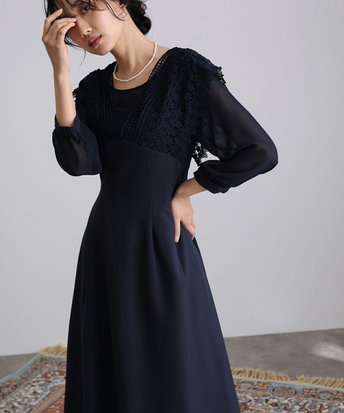 刺繍レースのエンジェルスリーブが可愛いワンピースです。