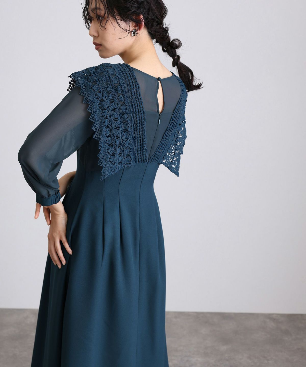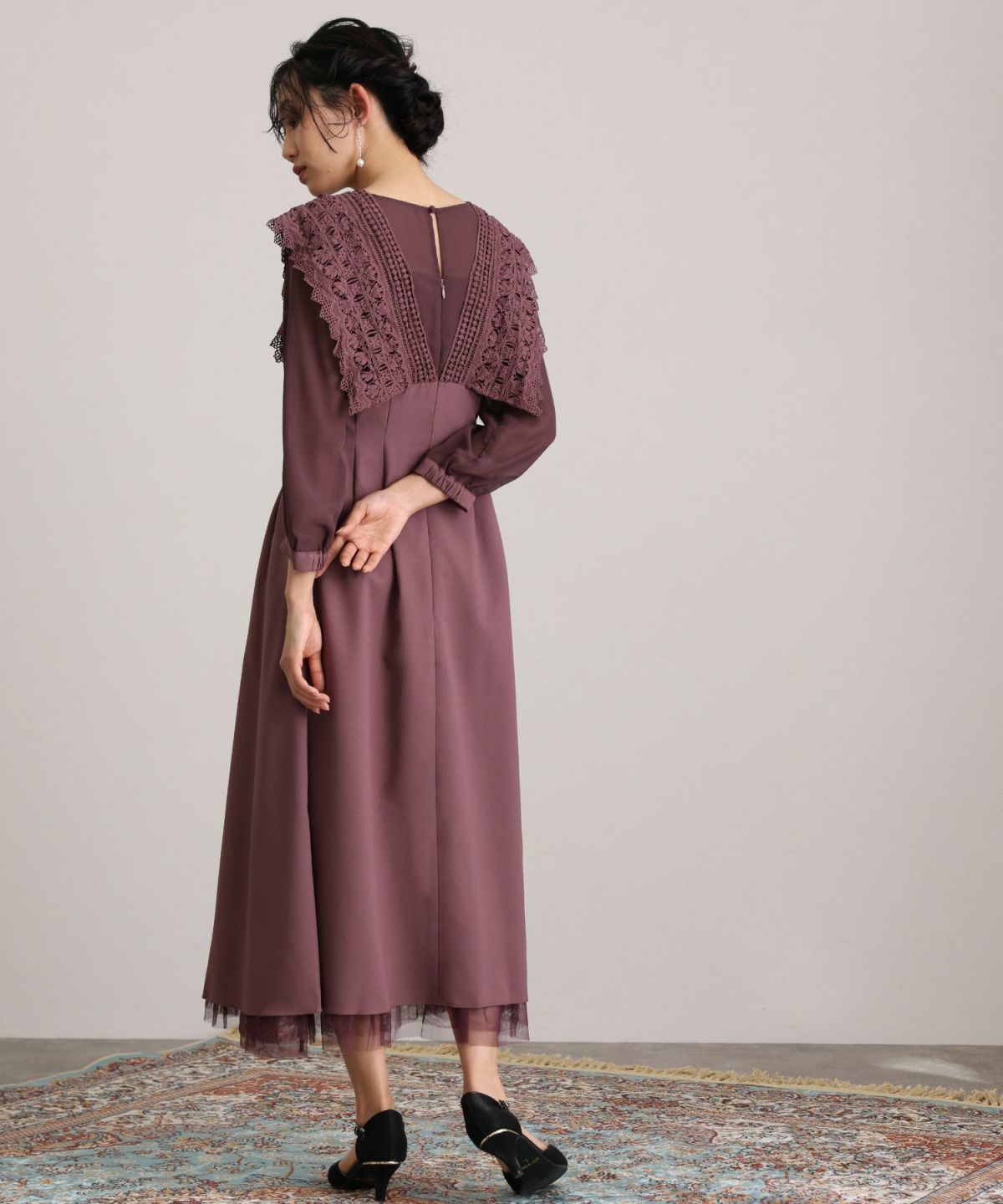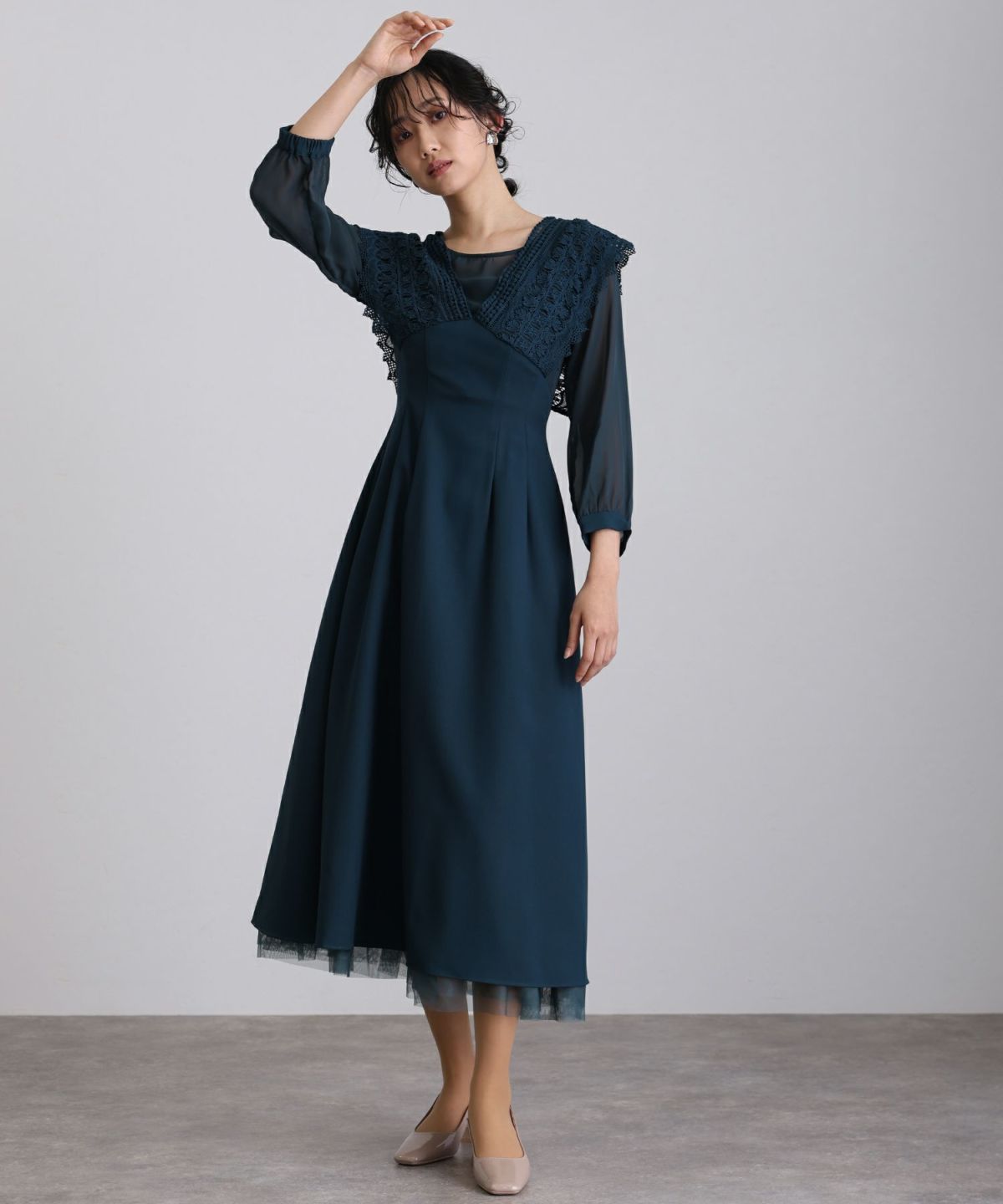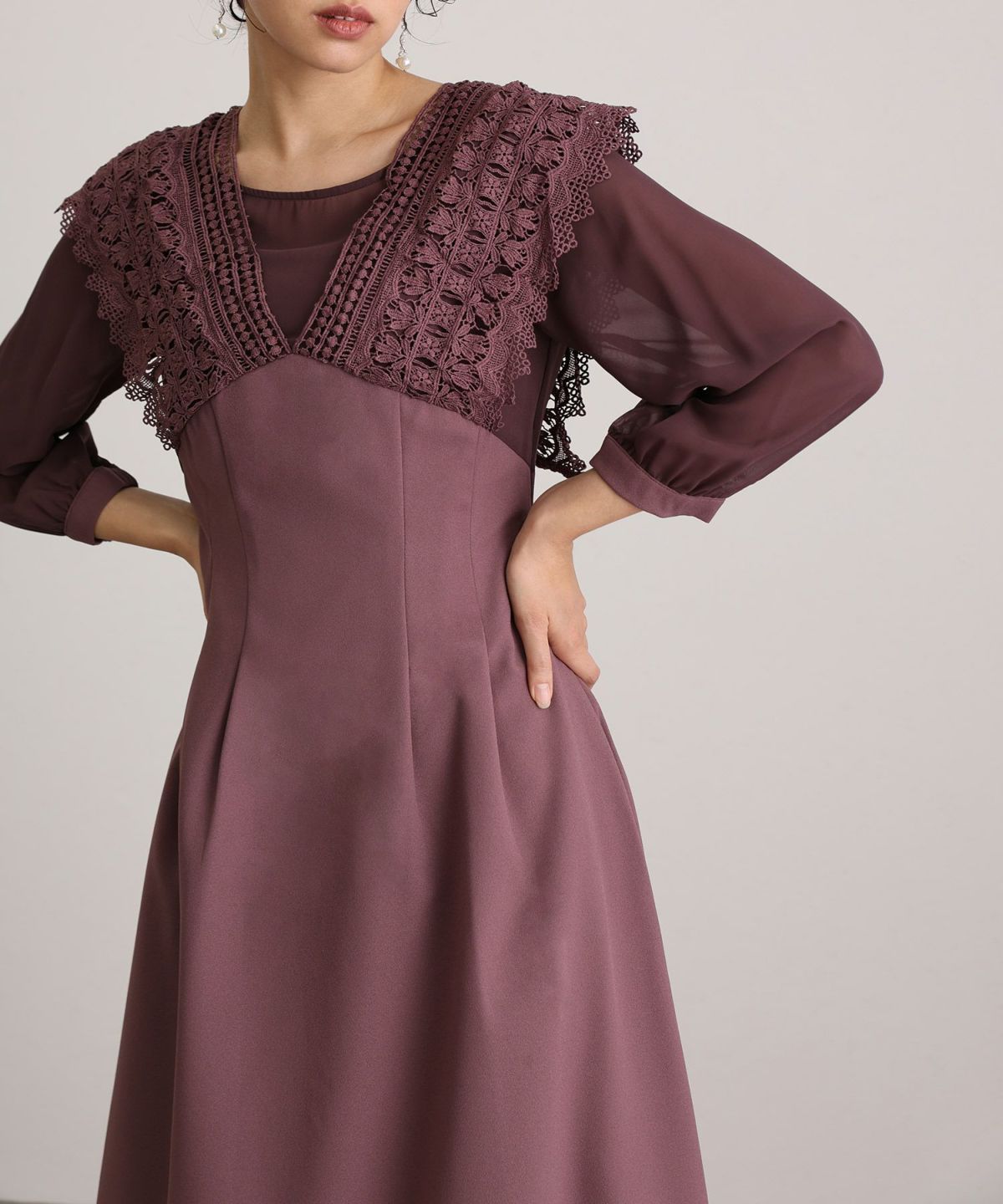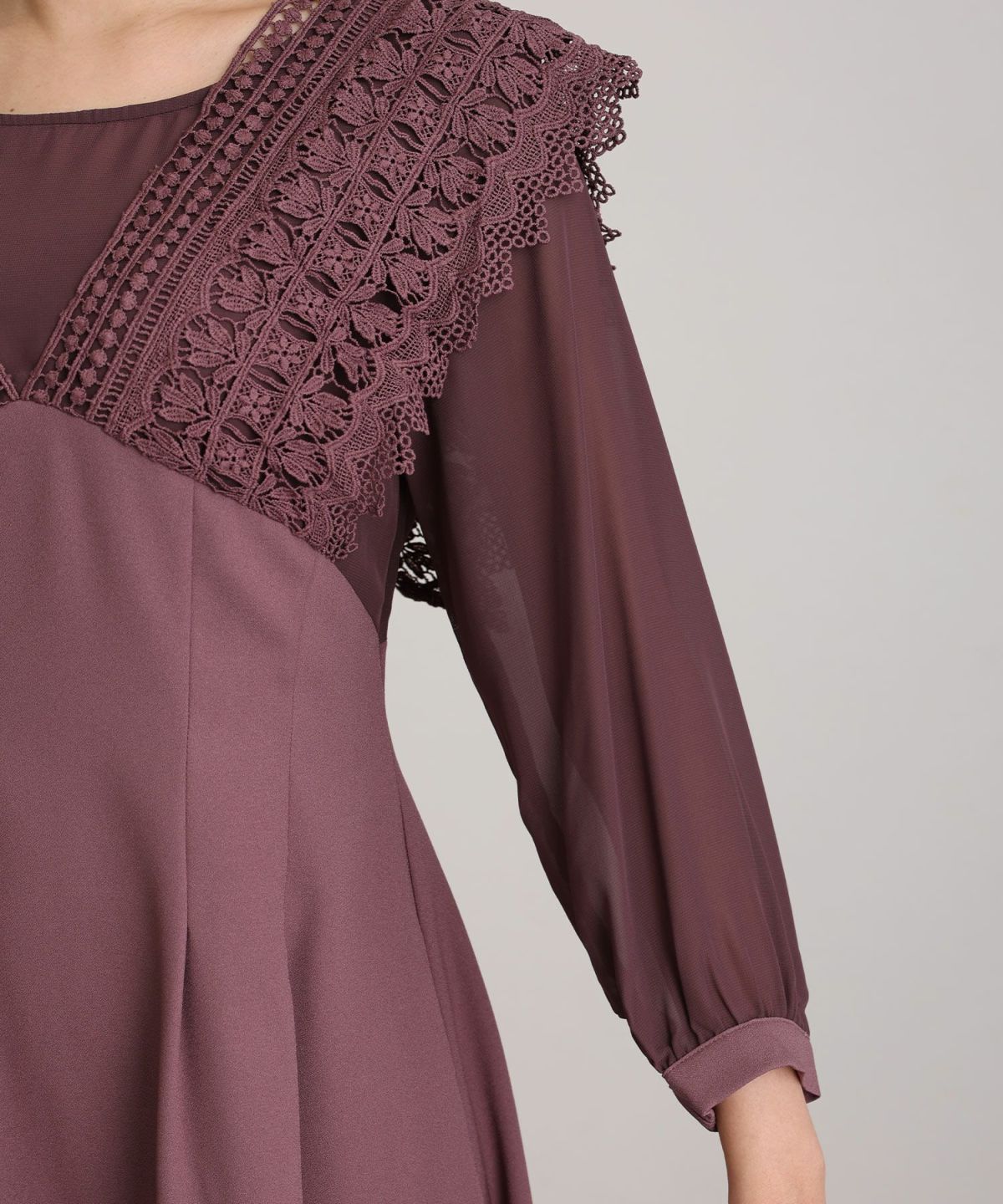 刺繍レースのエンジェルスリーブが可愛いワンピースです。