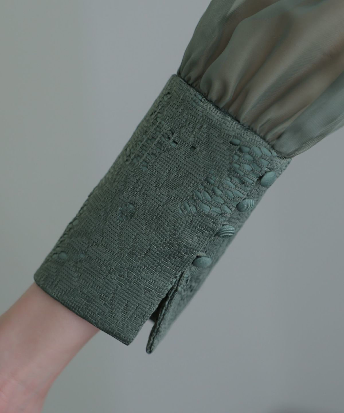 ■オーガンジーの透け感が上品体型カバーポイント:【二の腕】【ウエスト】【ヒップ】袖のオーガンジーの透け感が上品で気になる二の腕も目立たない。適度に丈感が短めなので可愛らしさをプラス。