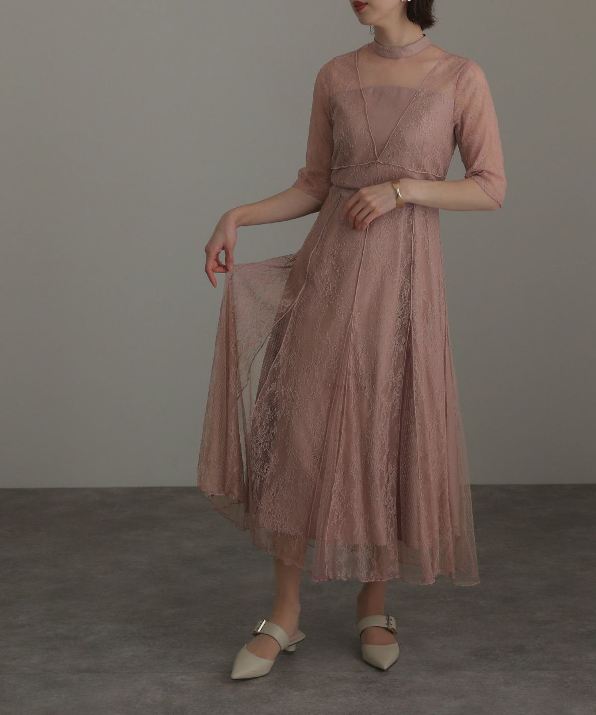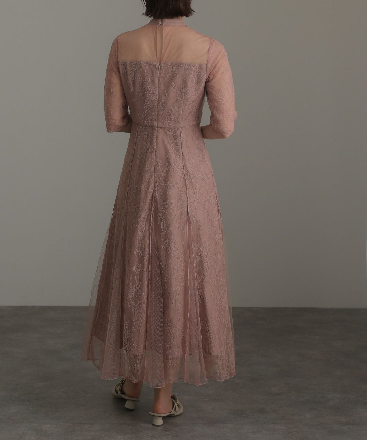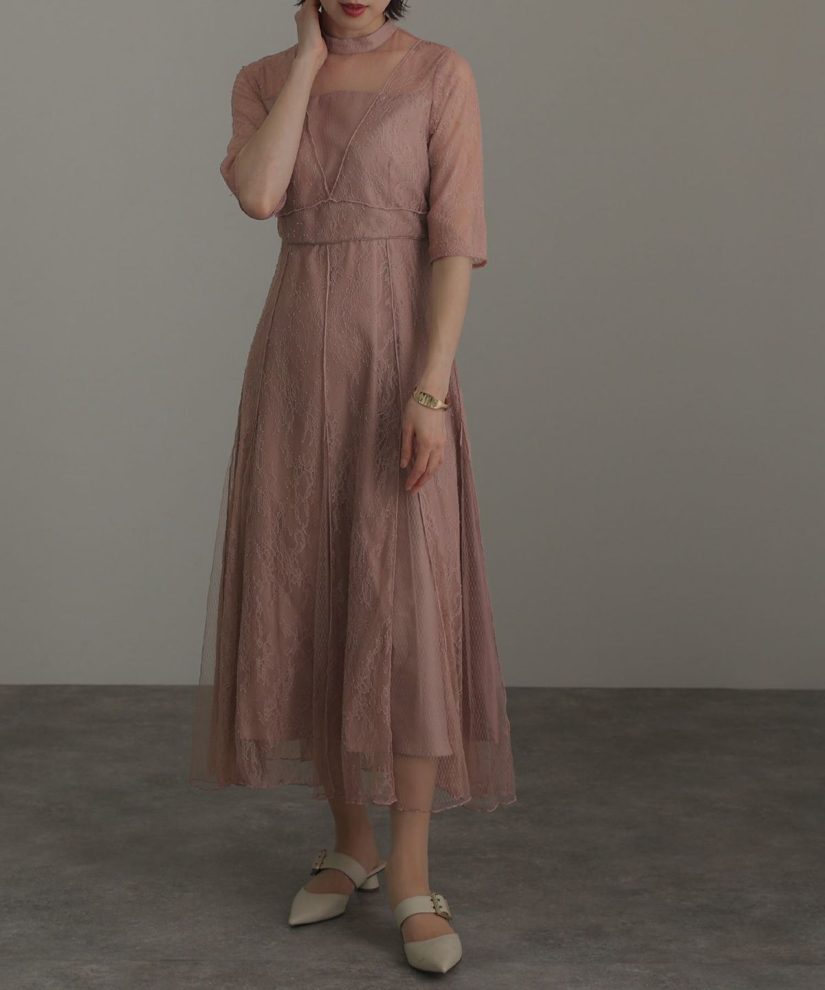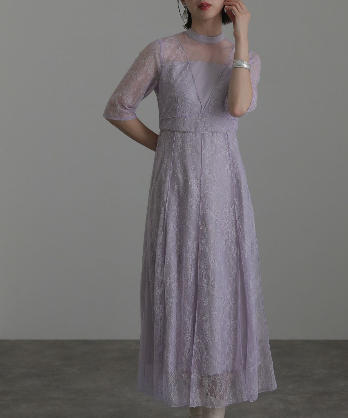 繊細なレース×チュールが細やかなディティール感あるドレス。
