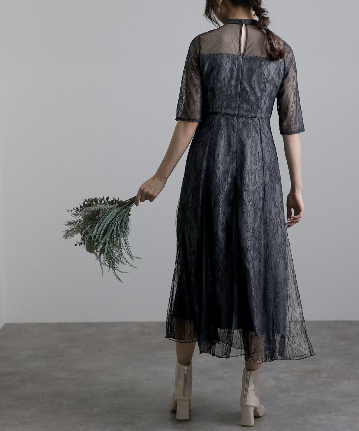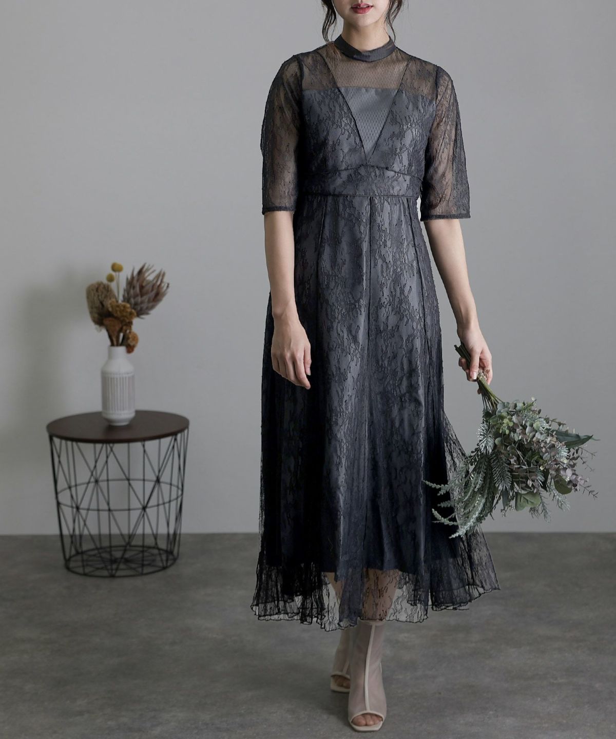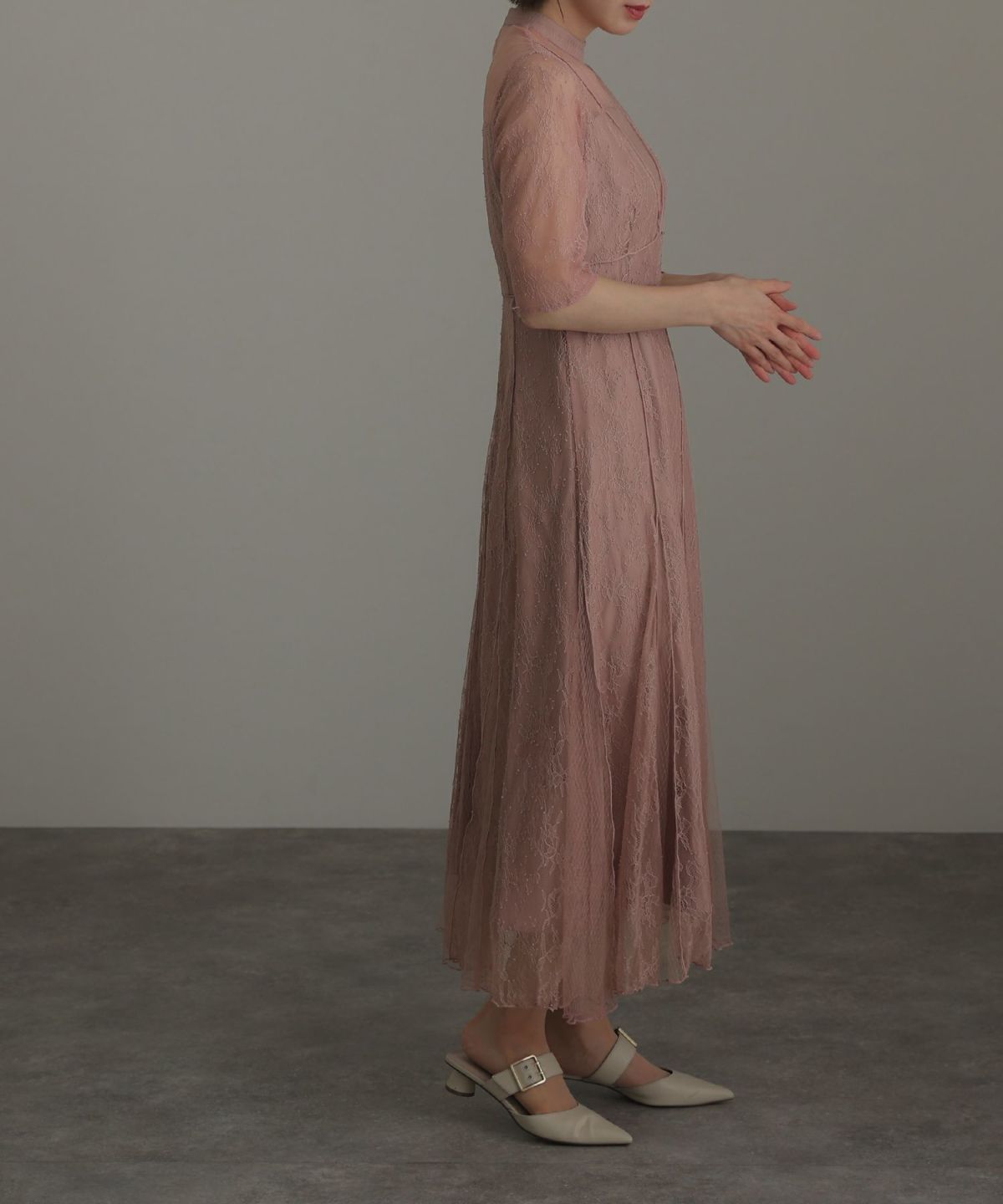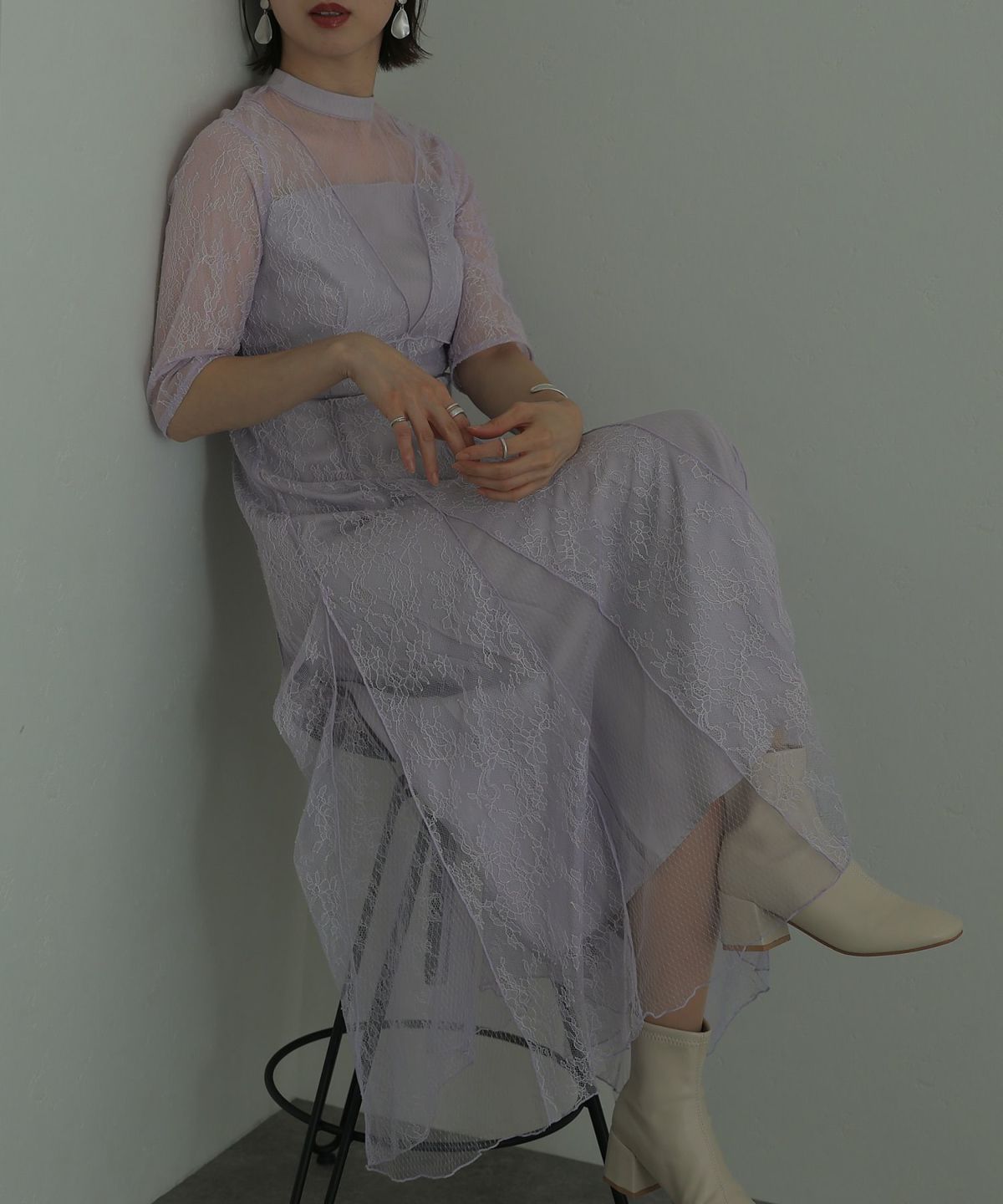 繊細なレース×チュールが細やかなディティール感あるドレス。