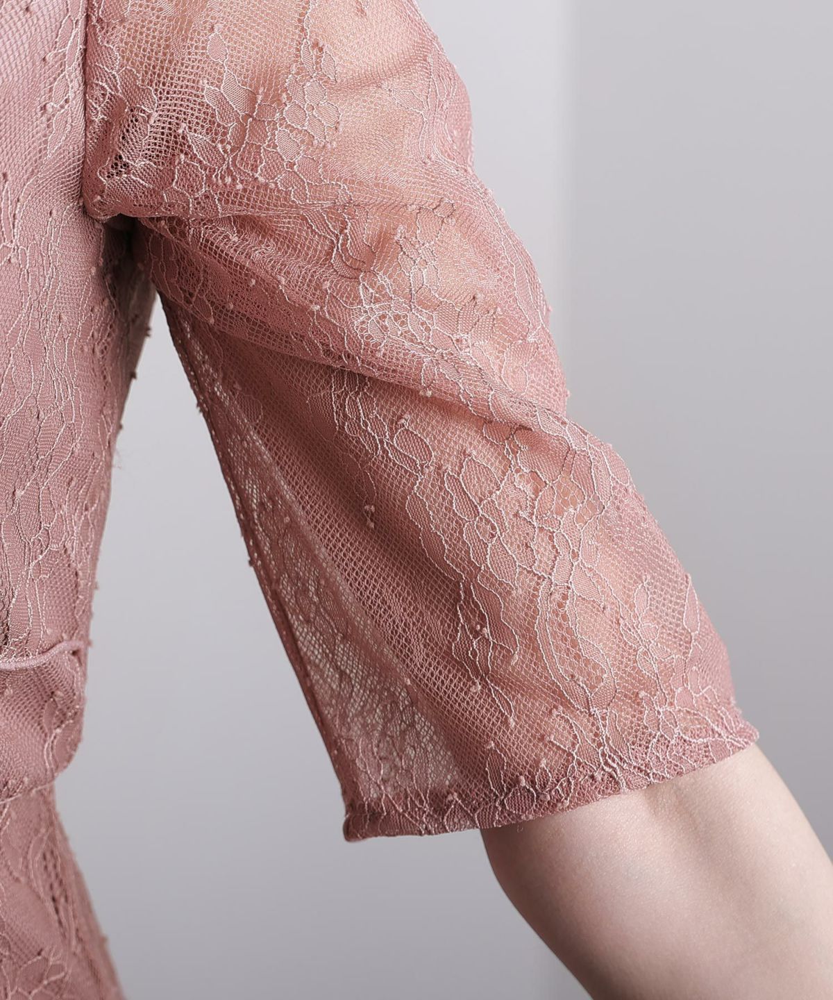 【二の腕】【脚】【ウエスト】【ヒップ】レースとチュールの2枚重ねで、透けすぎないデザインが体型カバーと上品見えに繋がります。