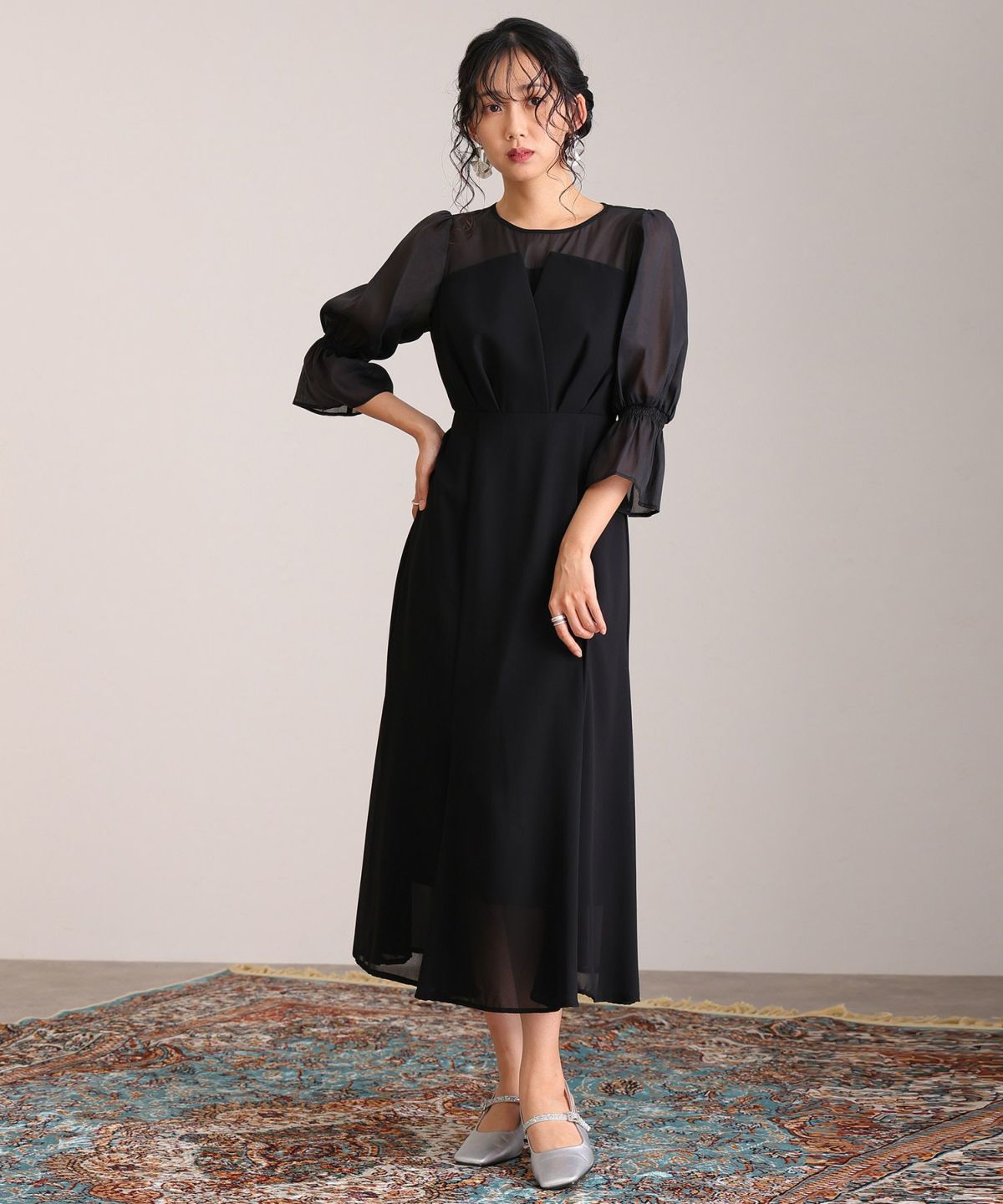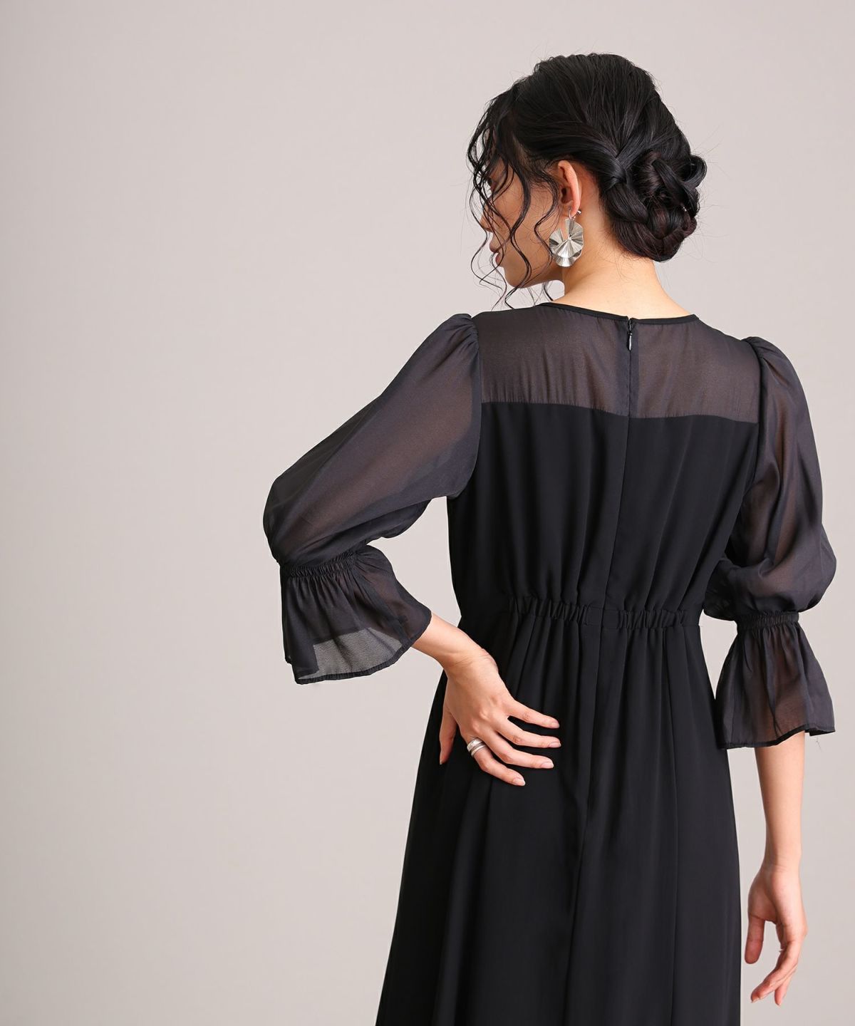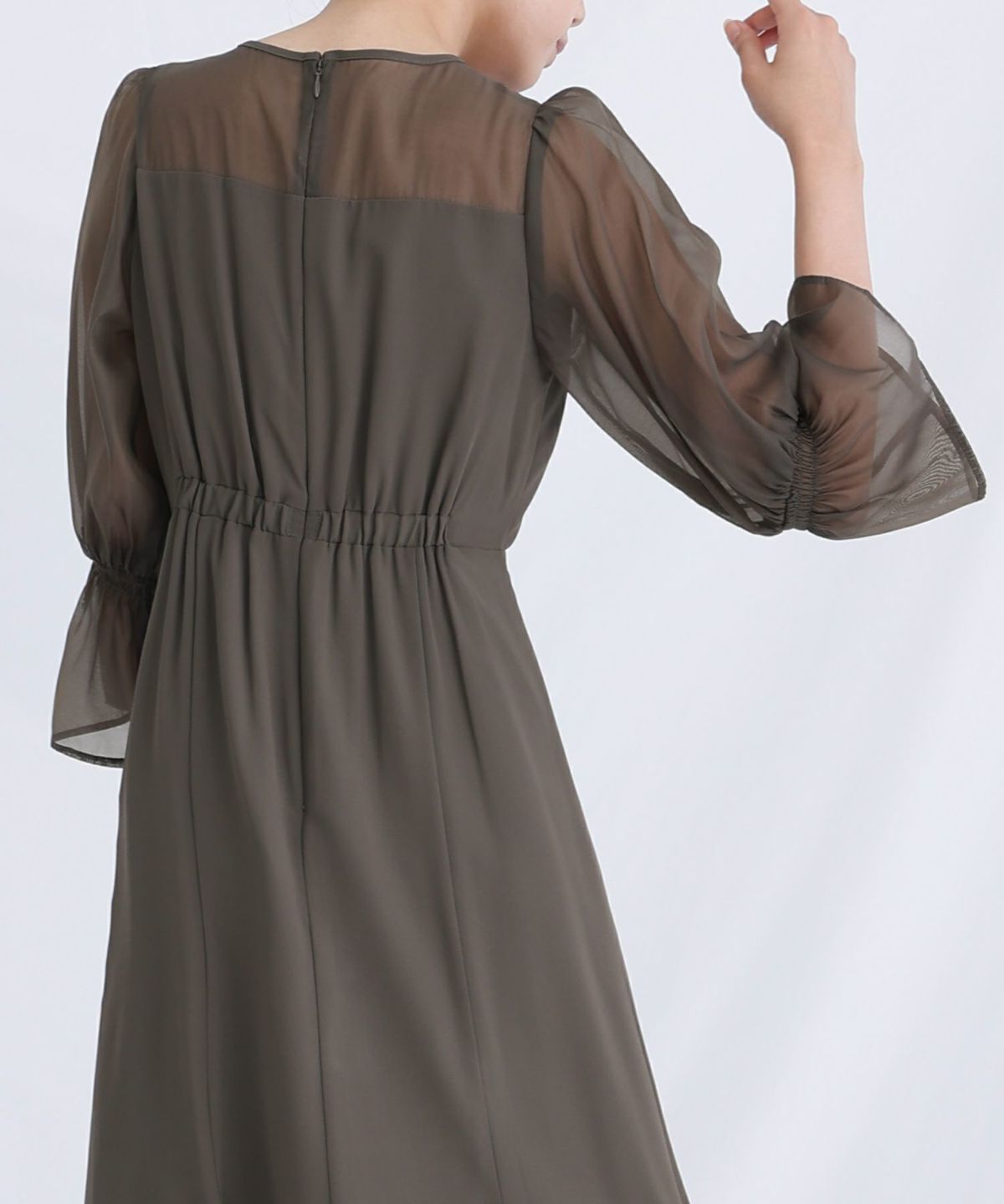 光沢感のあるシアーが華やかさをプラスしてくれるワンピースです