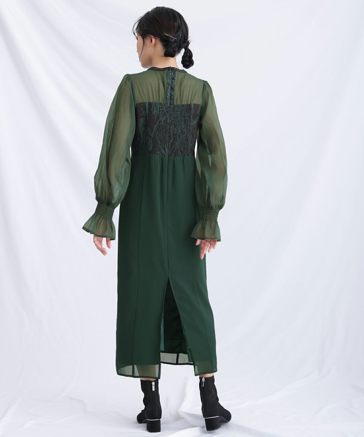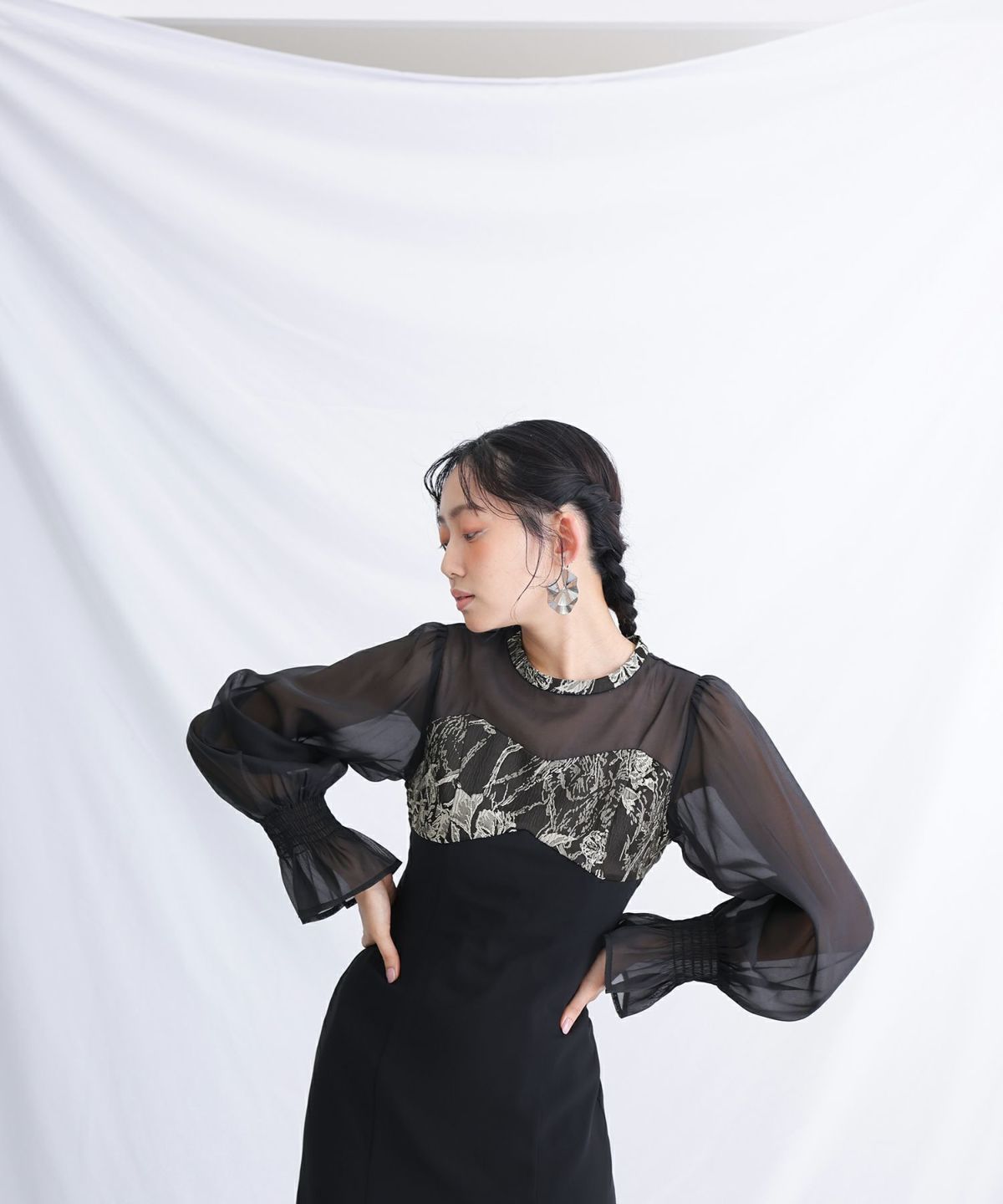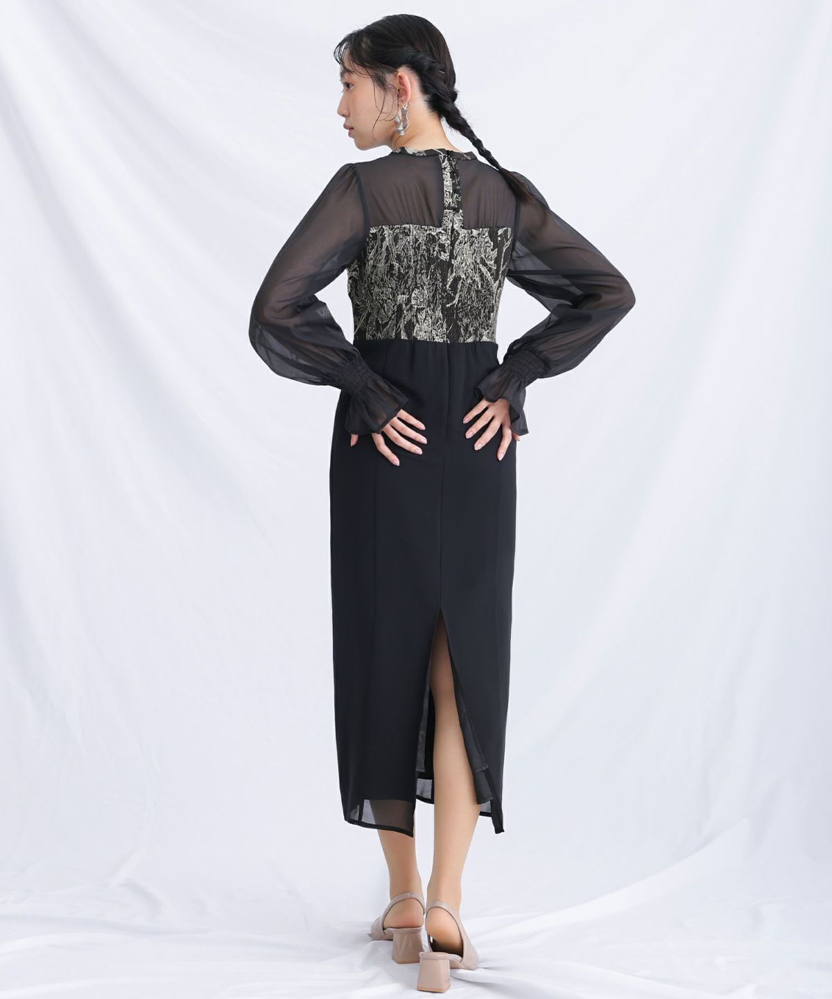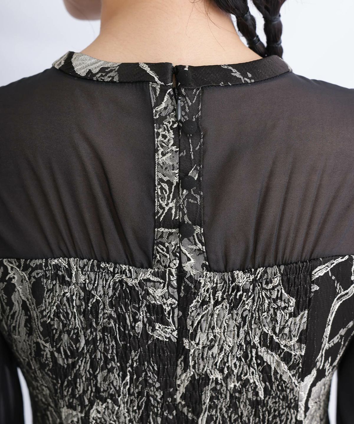 ジャガード素材を使用したハートカットのワンピース。