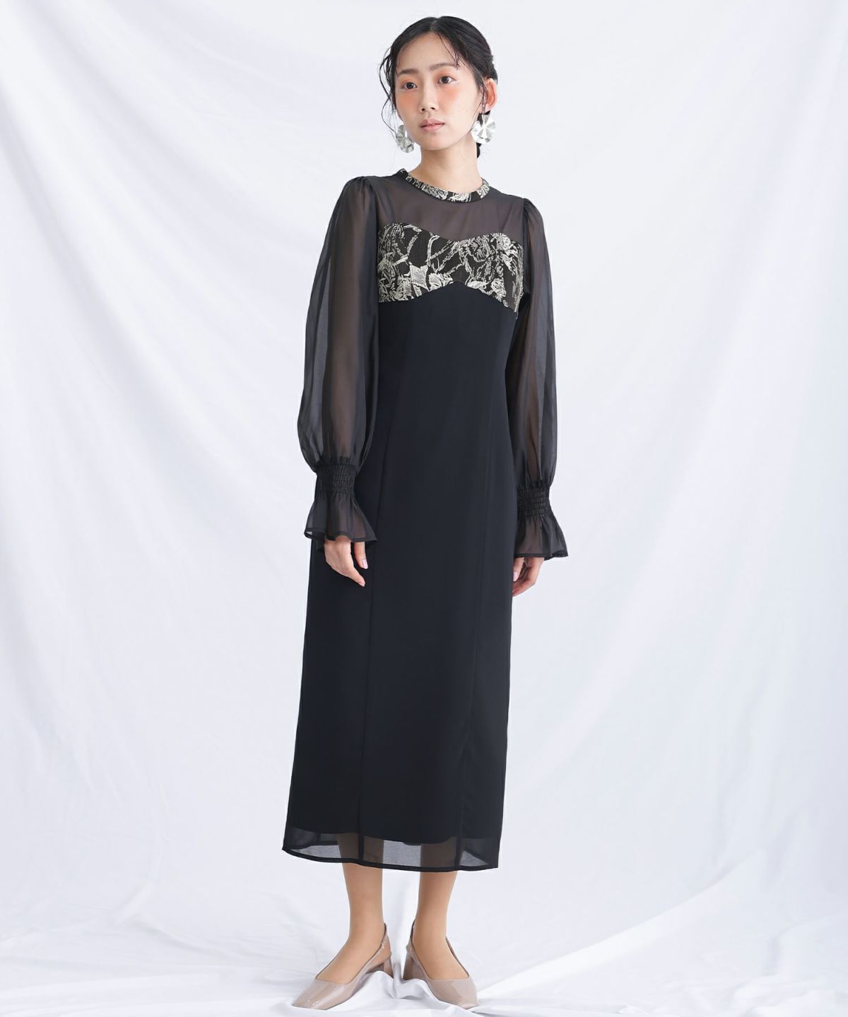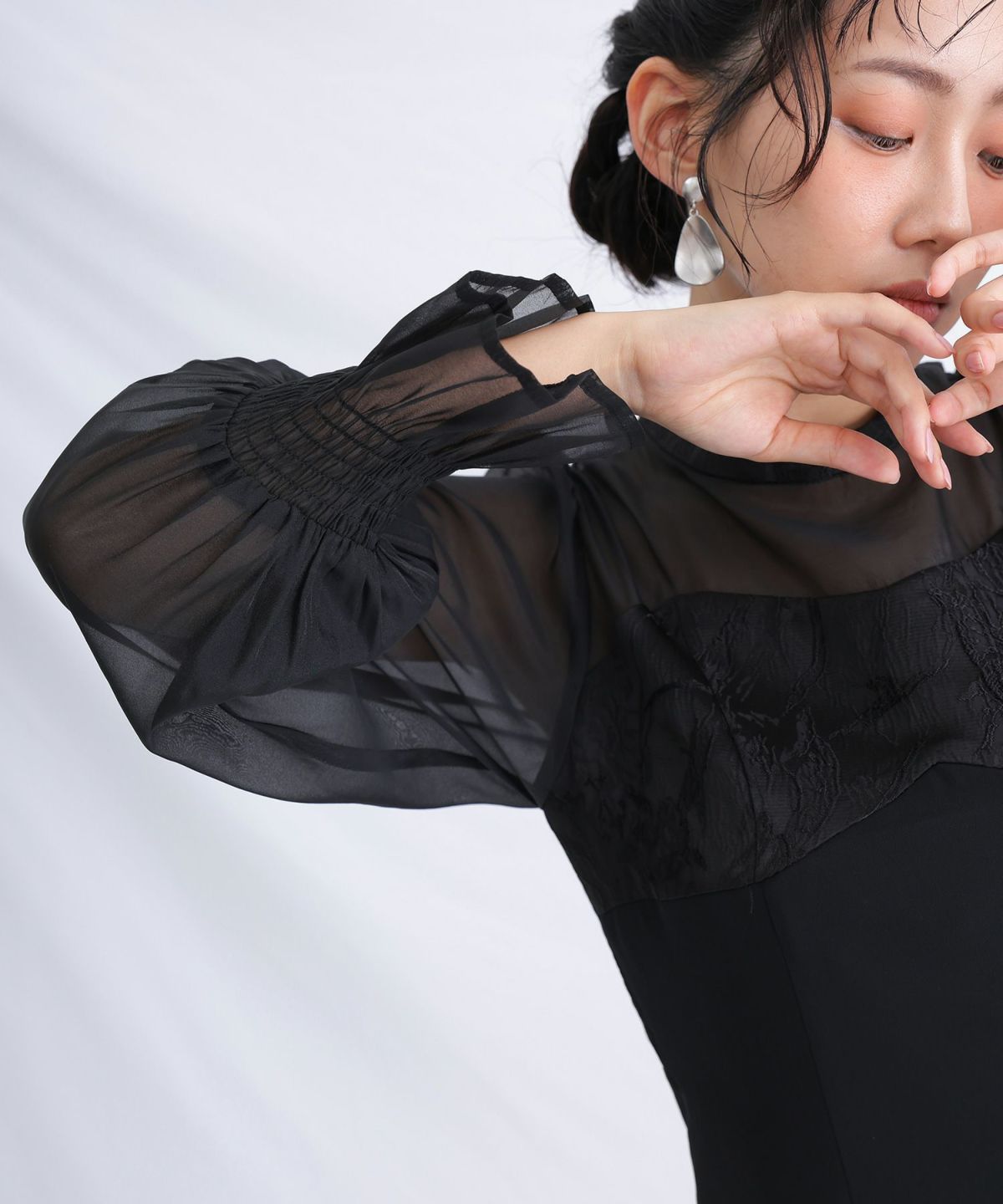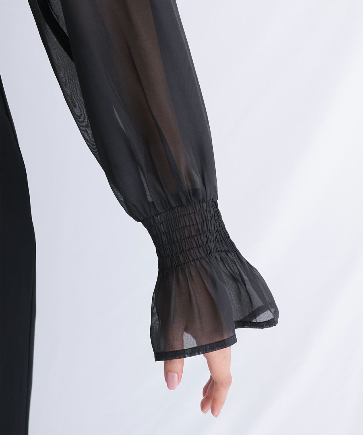 袖口のシャーリングがフェミニンな印象に。