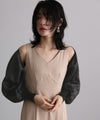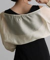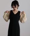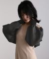 シアー素材とニットでできたショート丈のボレロ。シンプルながらもこだわりの詰まったでデザインでこなれ感を演出。ドルマンスリーブの独特なシルエット感が可愛らしい。袖口にはニットを使用しており、普段使いもできるおすすめの一着です。