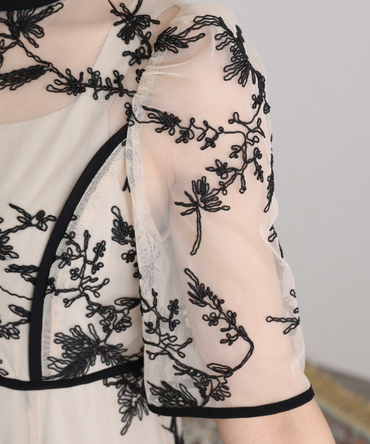 立体感のあるエンブロイダリーレースで他と被らないデザインがうれしいポイント