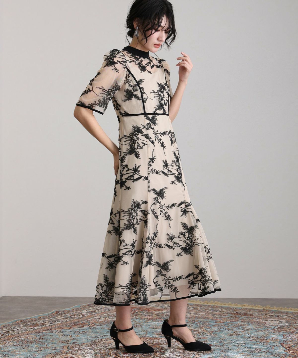 バイカラーが目を引く華やかな総レースドレス