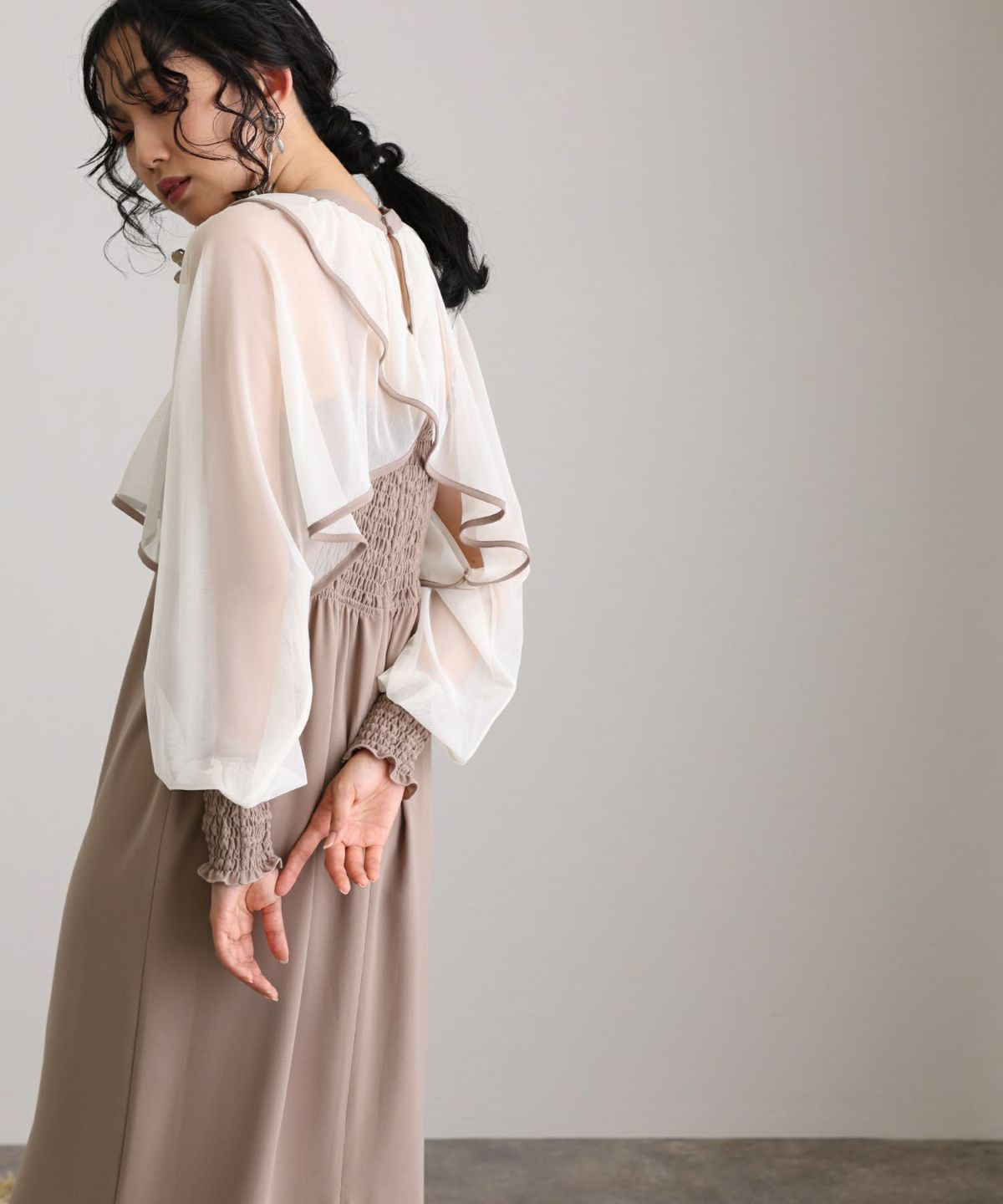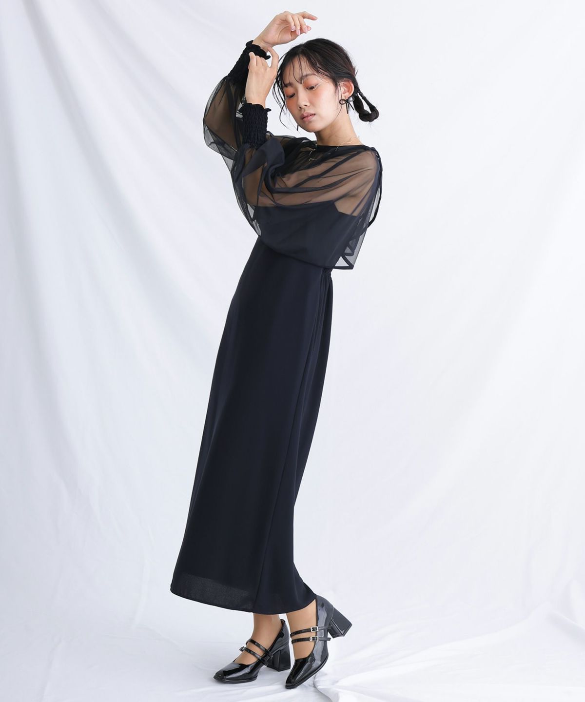 マイクロチュールのショート丈トップスが可愛い一着。