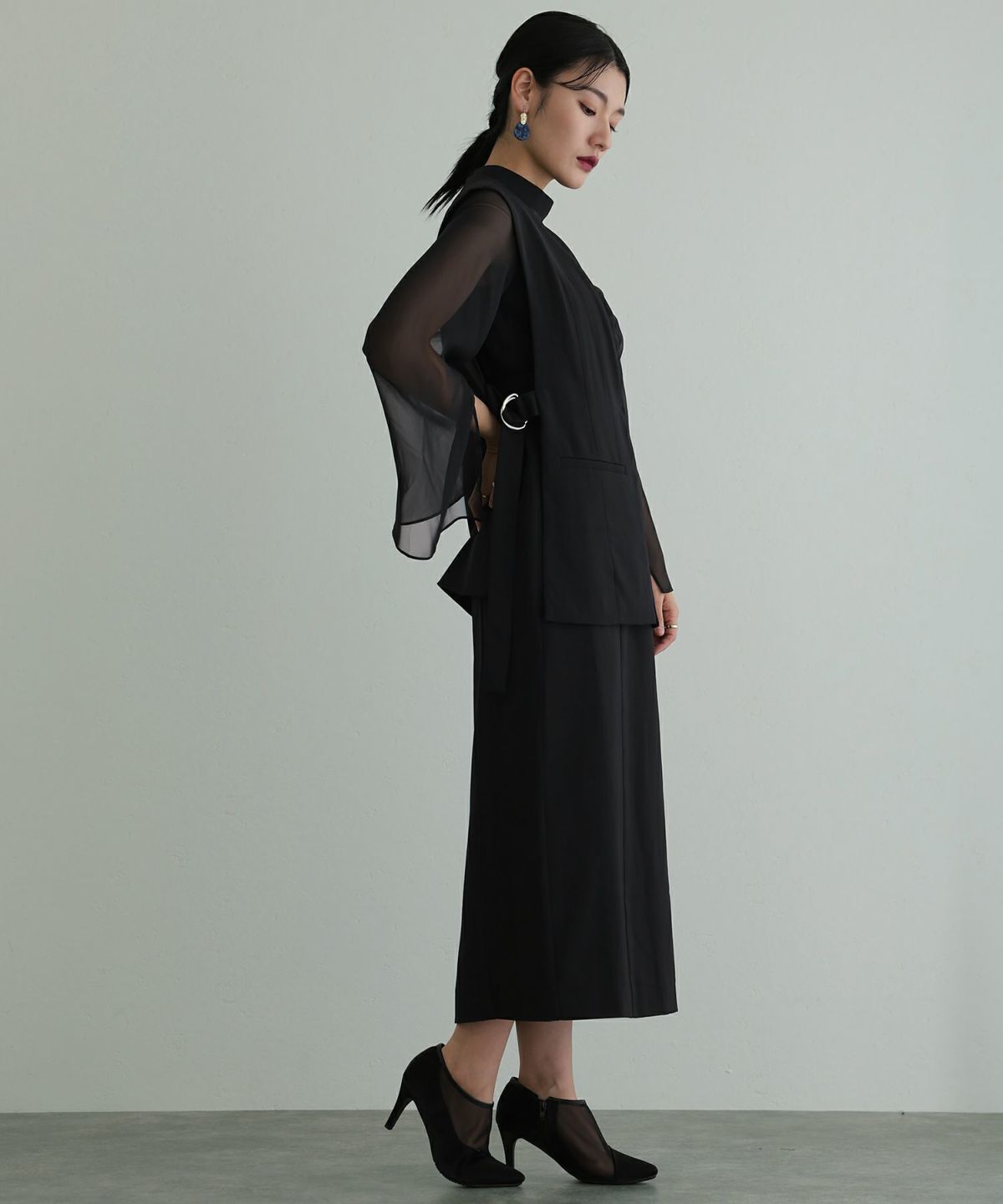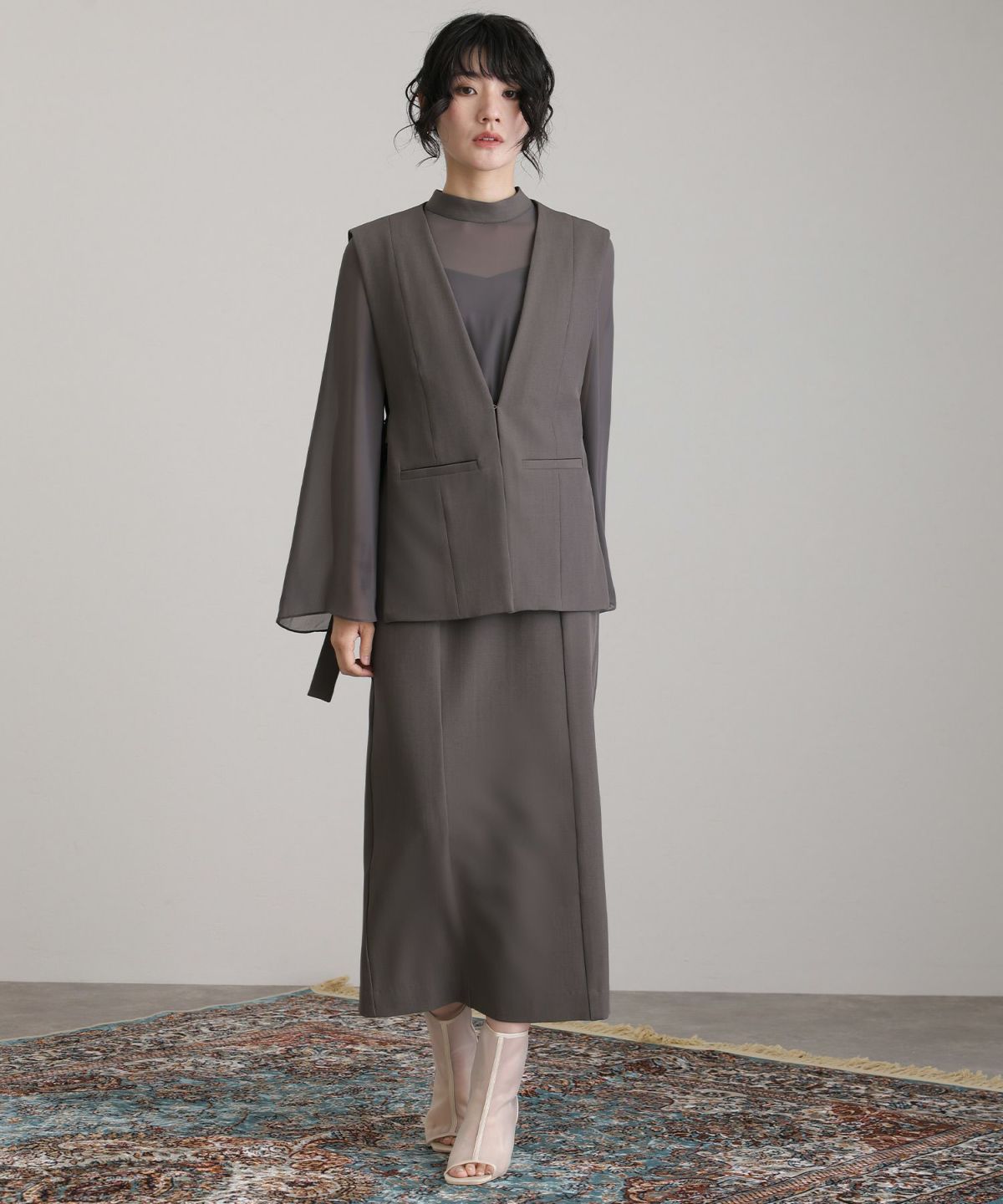 カジュアルにも使えるジレと、スリットスリーブが魅力的なワンピースのセットアイテムです。都会的なデザインで、おしゃれさんにおすすめな一着。ジレはサイドがベルトになっているので、好きなサイズに調整が可能です。オケージョンシーンはもちろん、特別なお食事会などにもおすすめです。