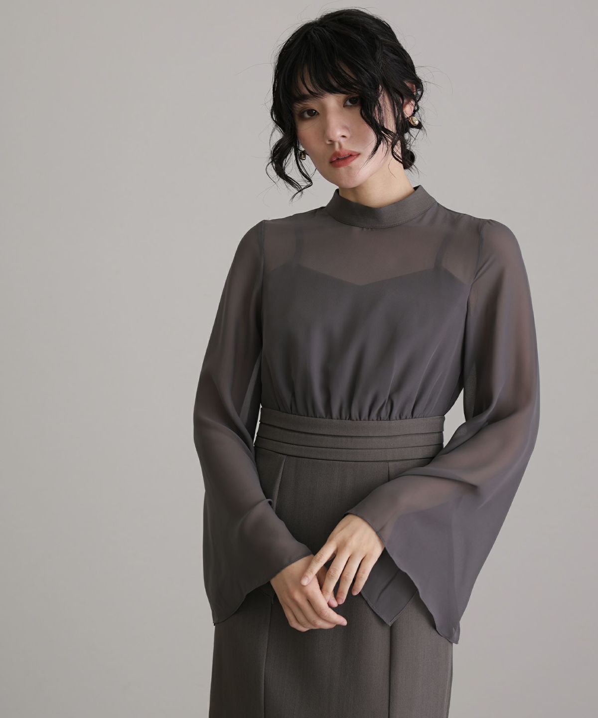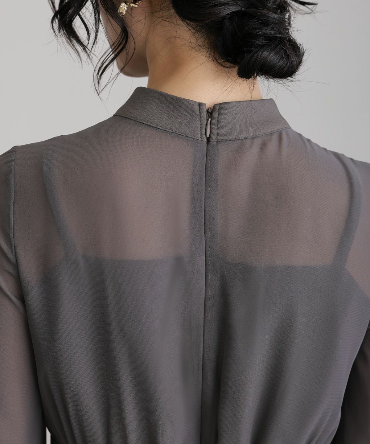 ワンピースに使用しているシフォンは肌触りがよく程よい透け感なので、透け素材に抵抗がある方にもおすすめです。