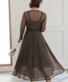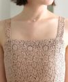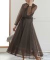 ■透け感チュール×小花柄幾何学模様のチュールからチラッと覗く小花柄が可愛いワンピース。チュールの羽織はフック留めになっており、前開けも簡単にできます。透け感のあるチュール生地が動くたびにふんわり広がり女性らしさを演出してくれます。インナーをカジュアルアイテムと合わせることもでき、自由にアレンジを楽しんでいただけます。