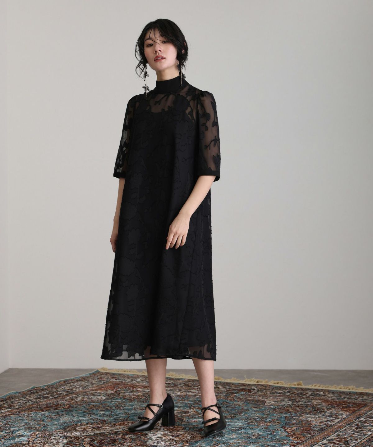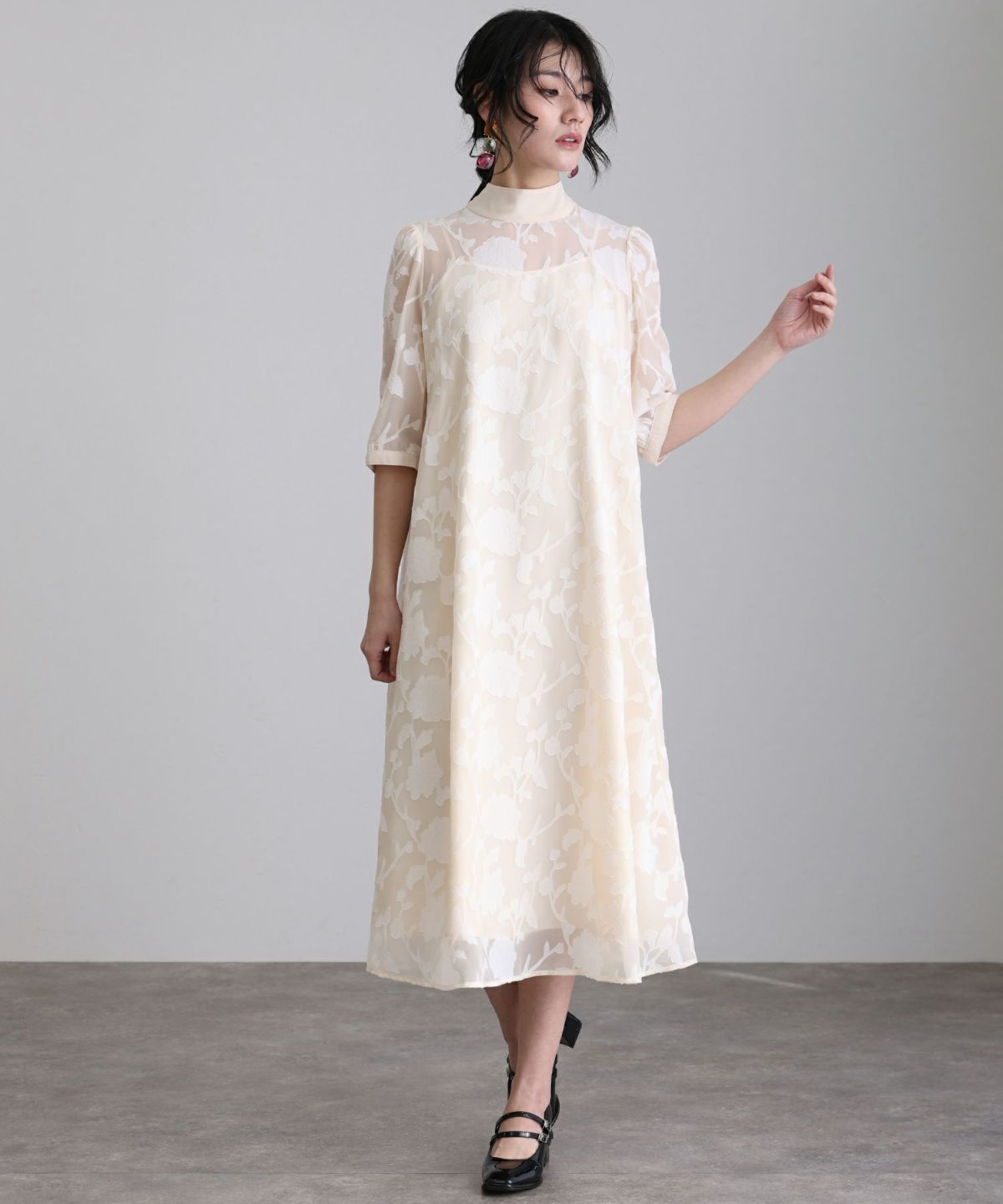 ジャガードレース素材の花柄が上品な雰囲気をプラス