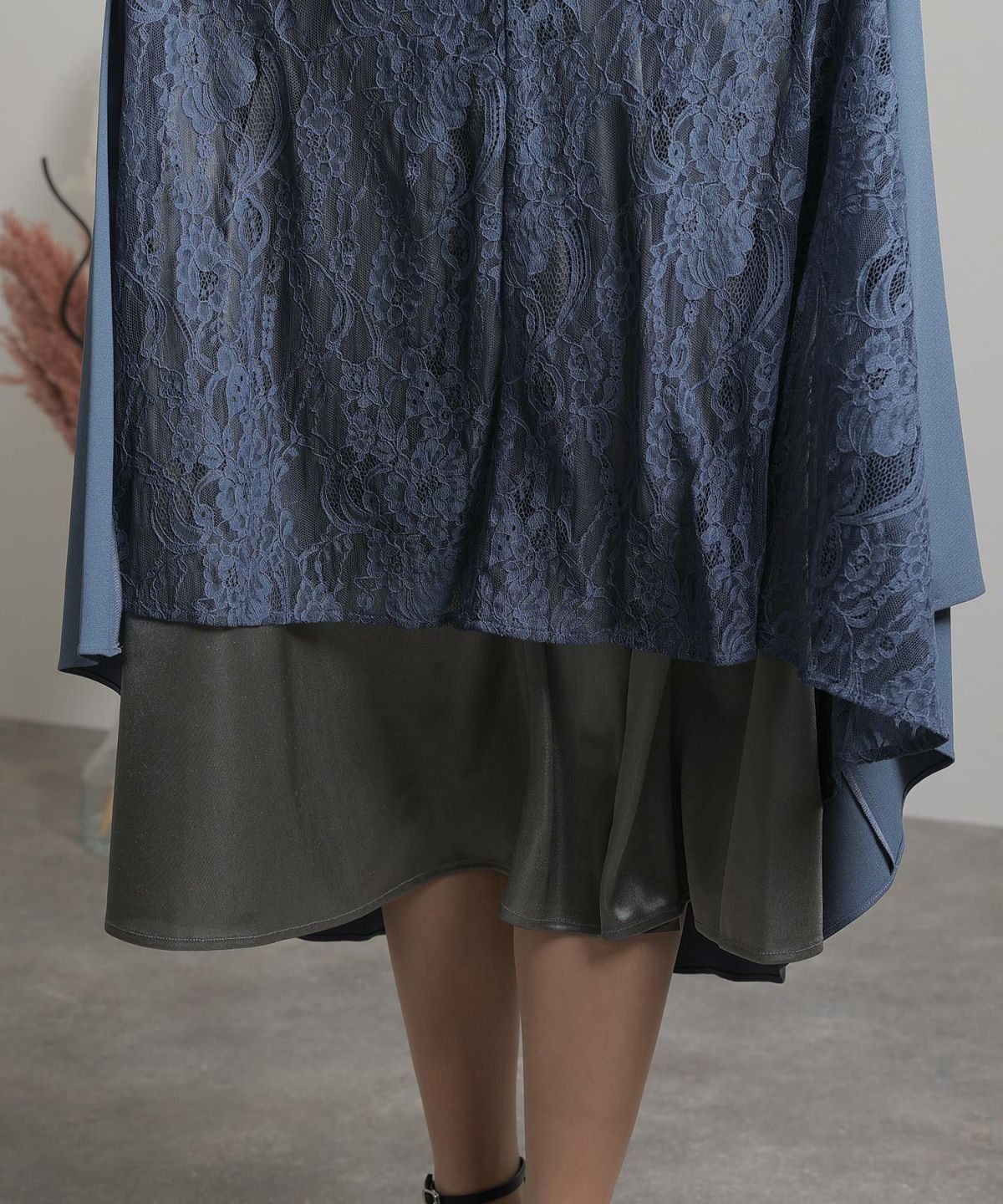 品が際立つレースのレイヤーワンピース レーススカートレイヤードワンピース