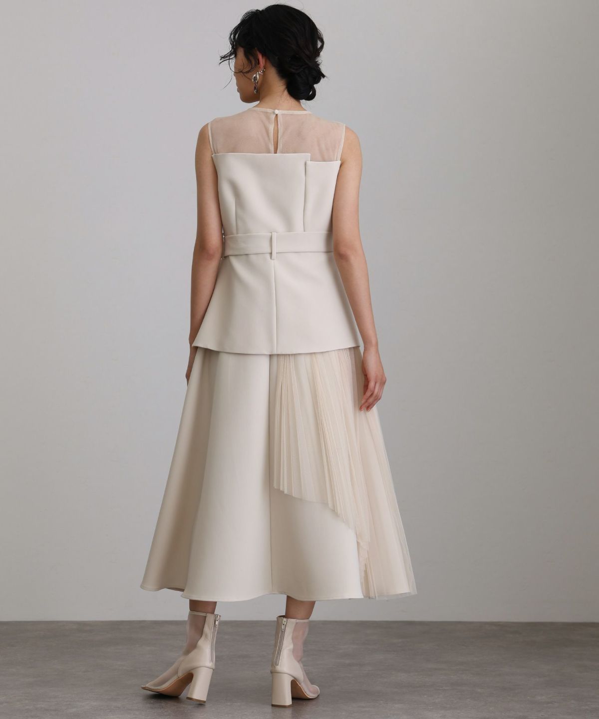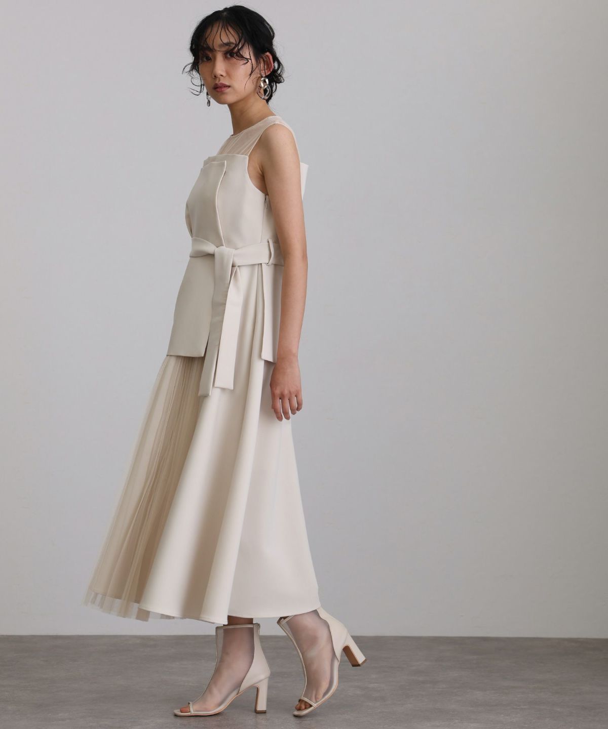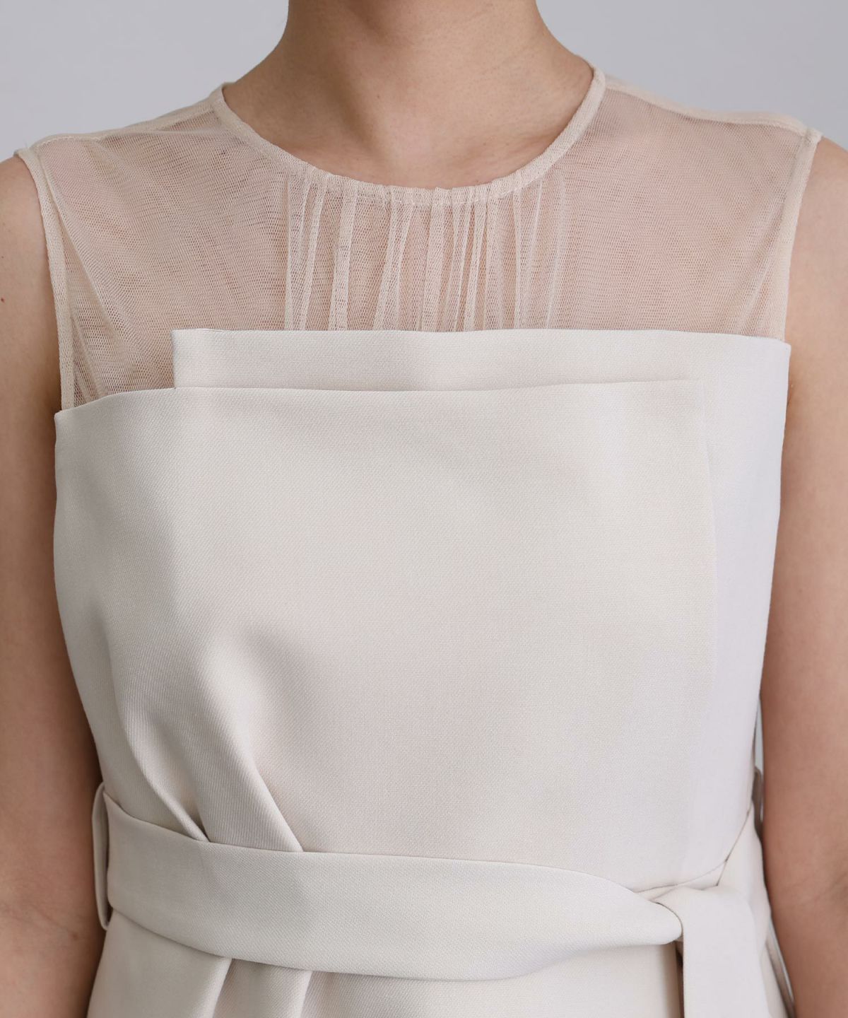 シアー感のあるノースリーブトップスでデコルテを美しく