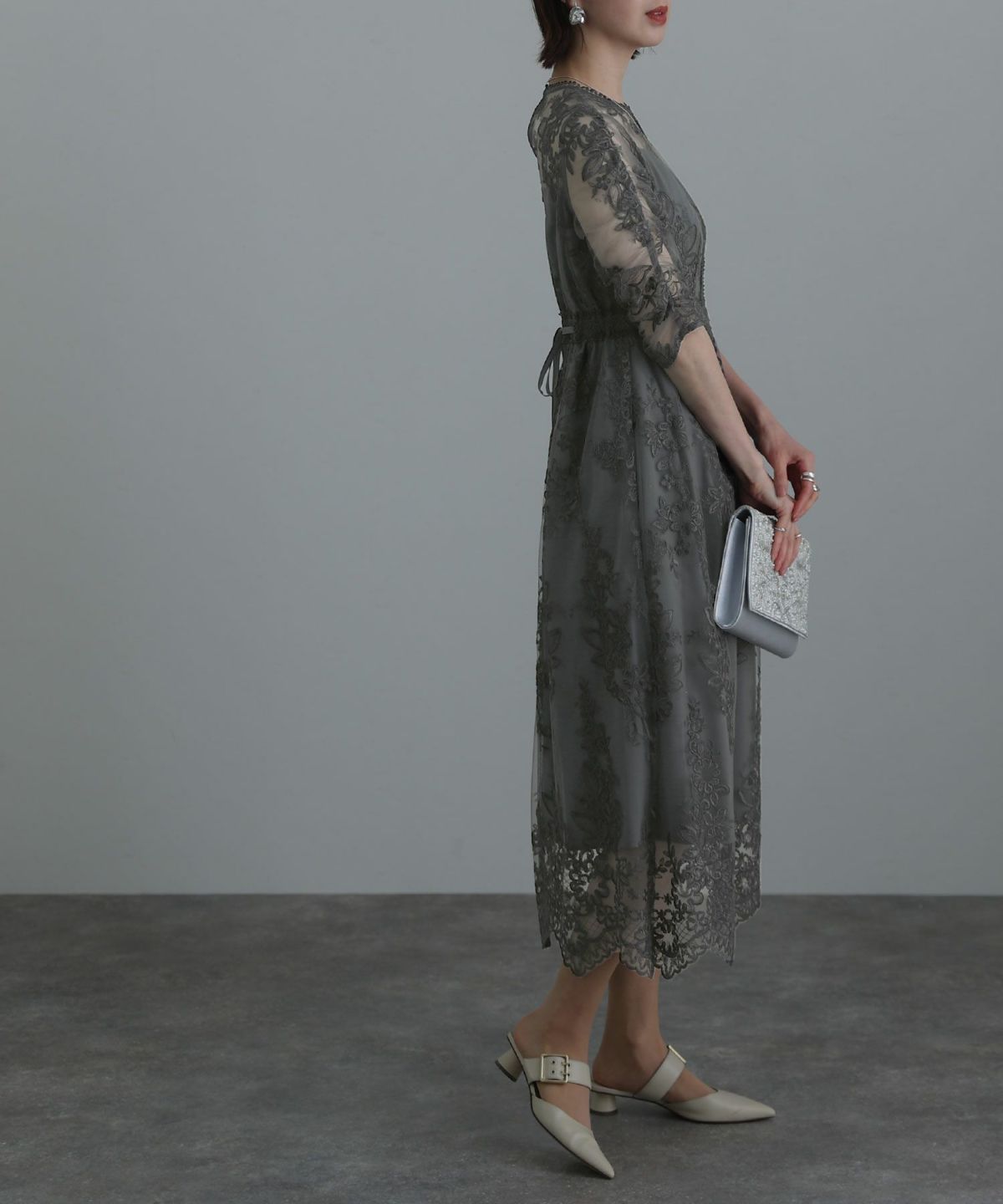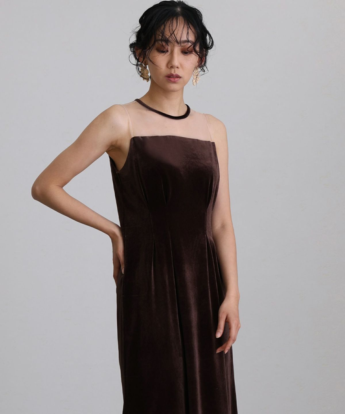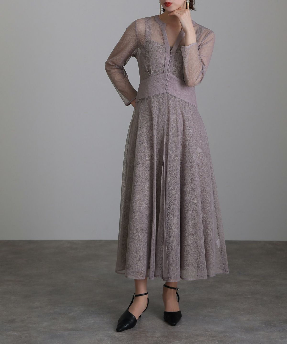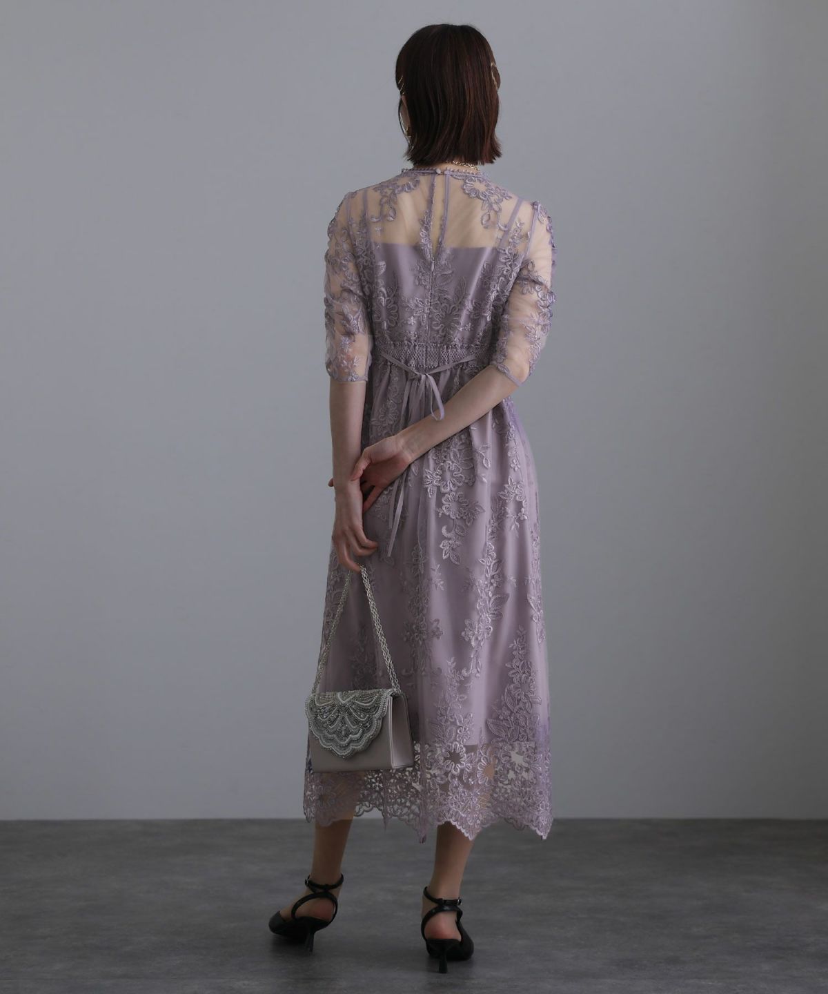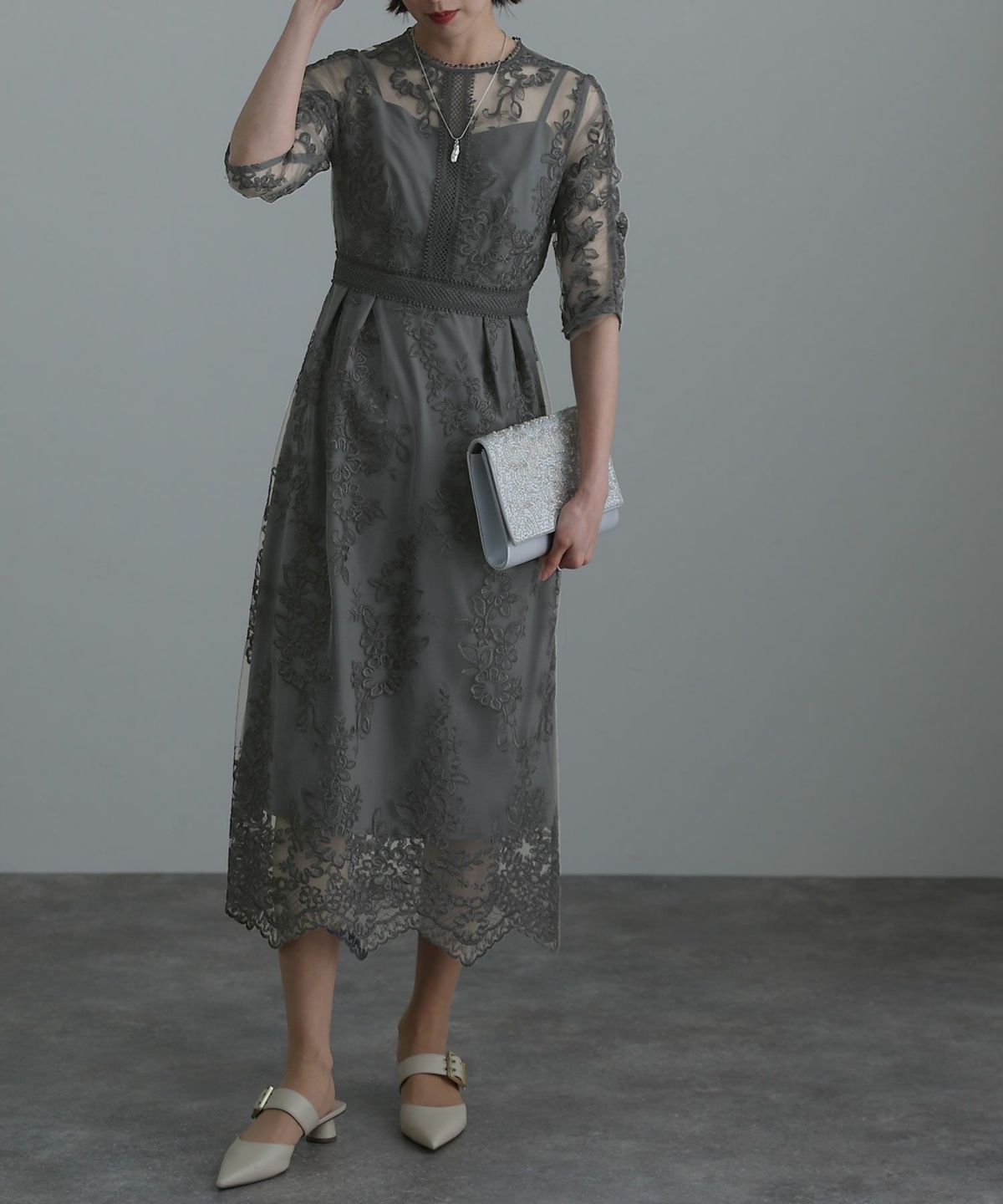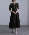【二の腕】【脚】【ウエスト】【ヒップ】ほどよい透け感で気になる二の腕をカバーしたりロング丈で脚元もカバーできる体型カバーに優れたドレスもございます。