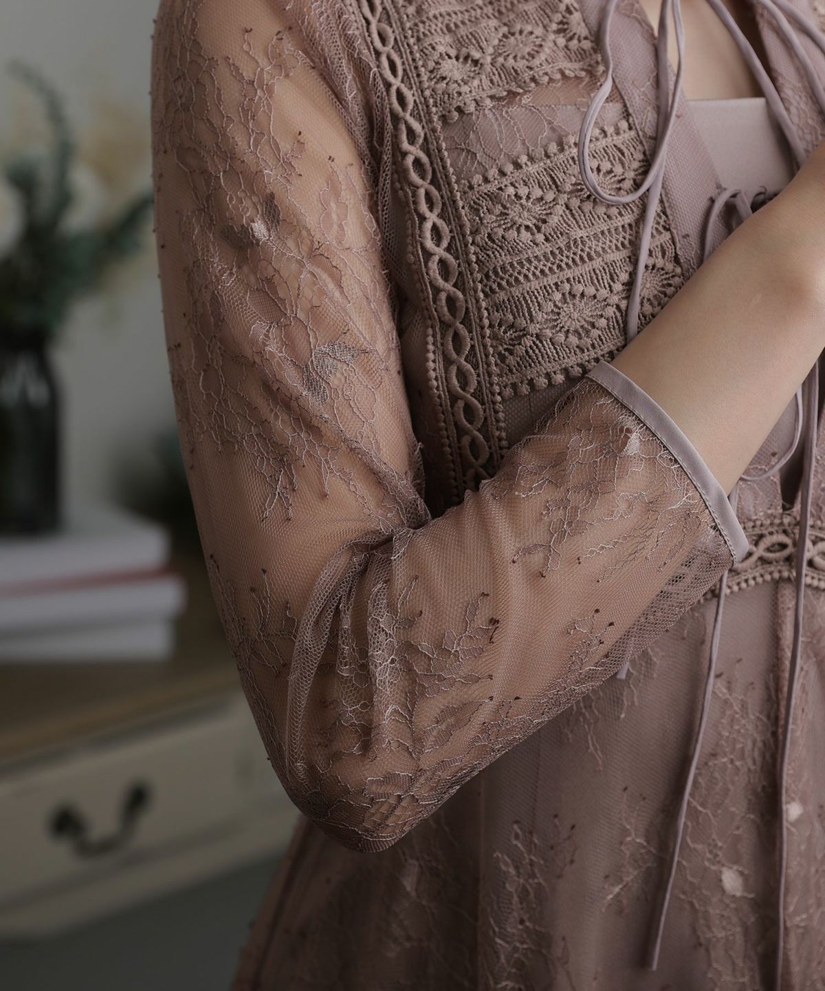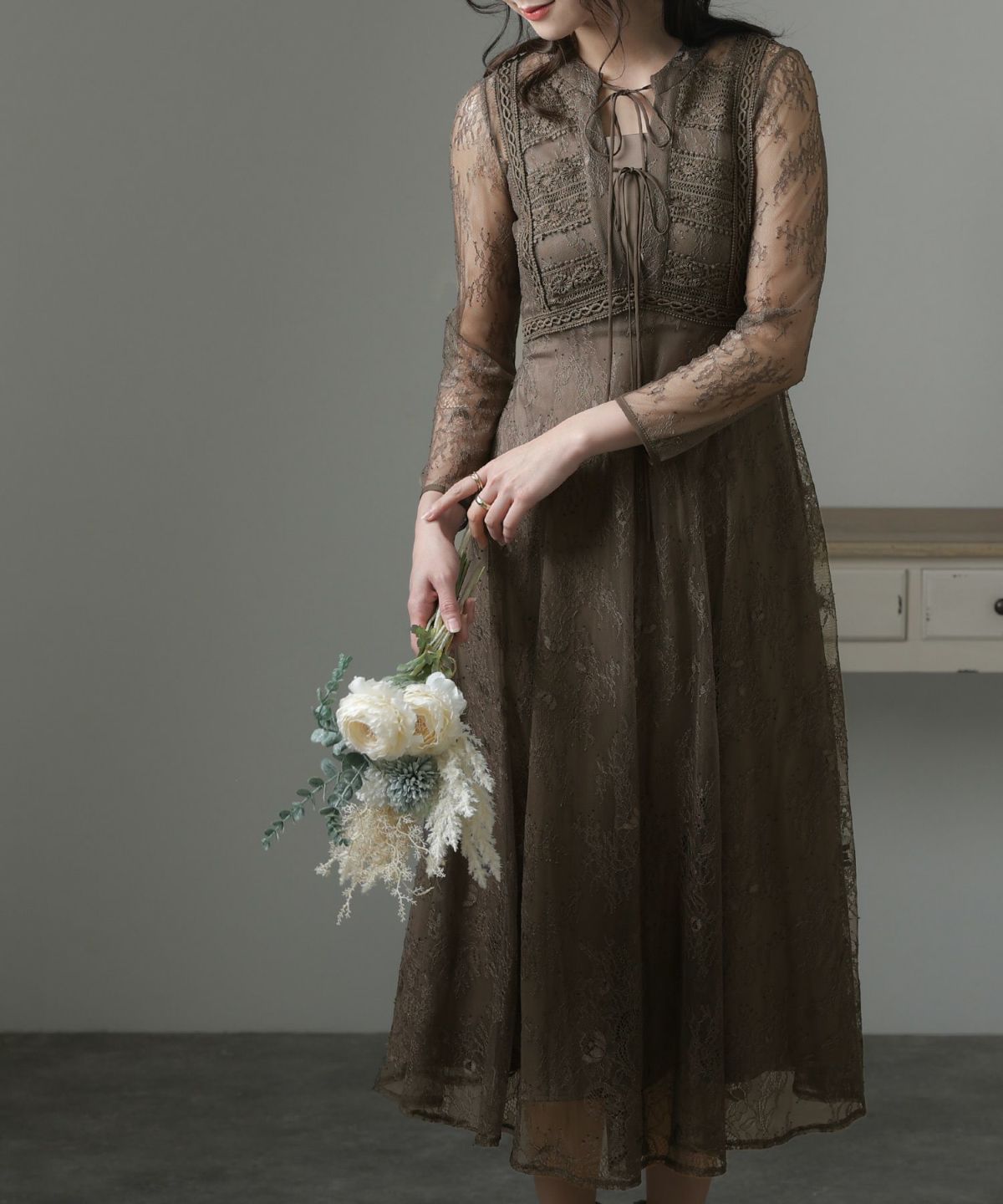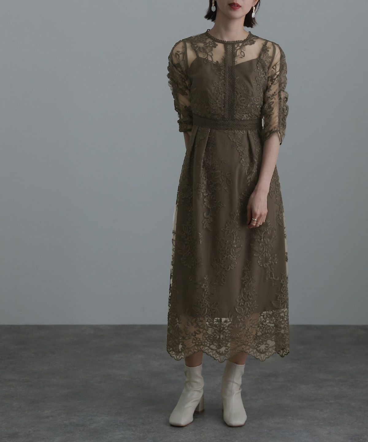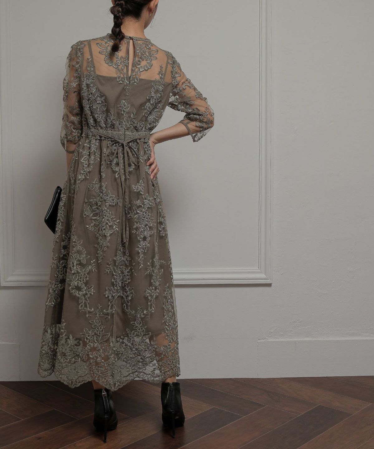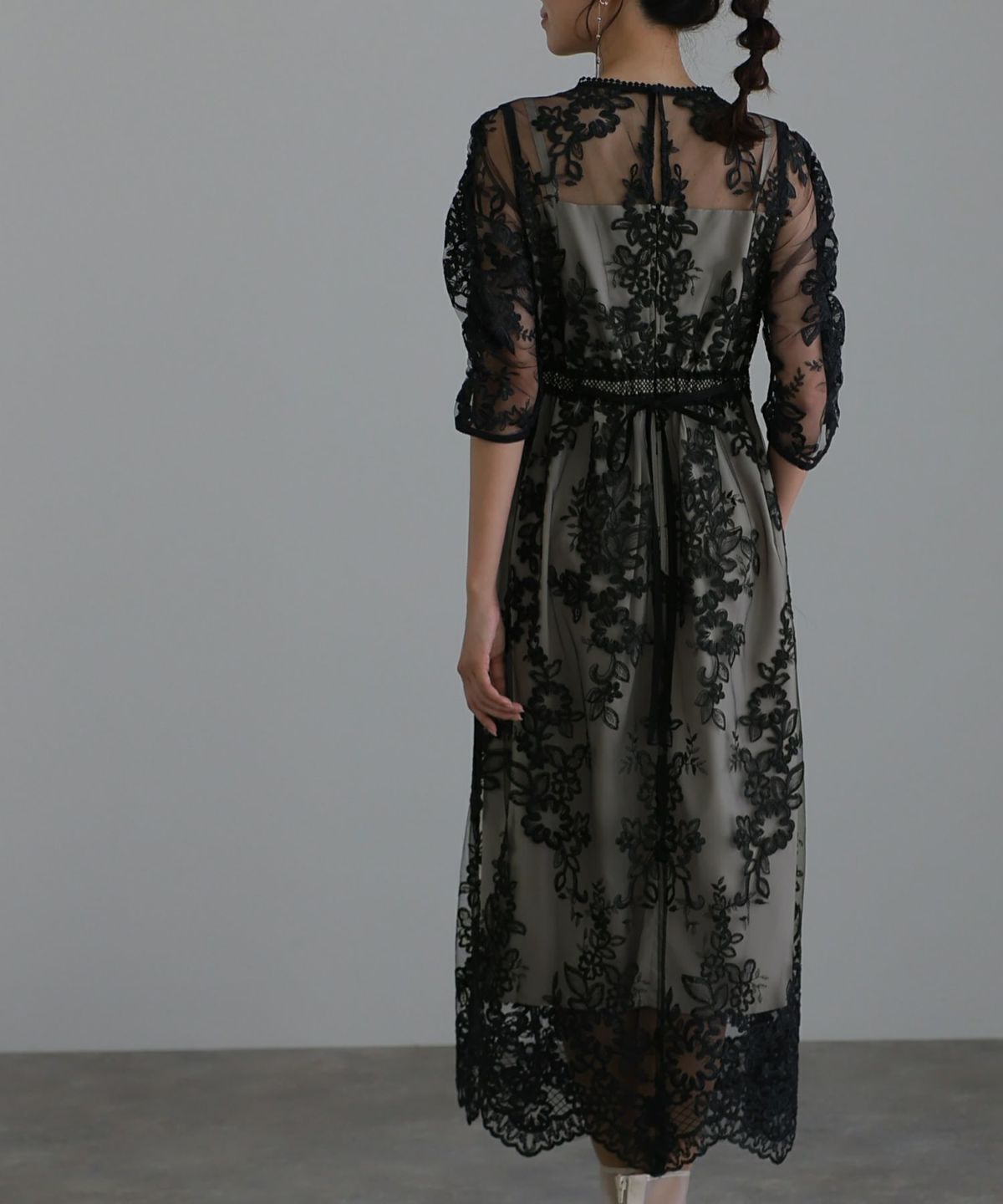 【二の腕】【脚】【ウエスト】【ヒップ】ほどよい透け感で気になる二の腕をカバーしたりロング丈で脚元もカバーできる体型カバーに優れたドレスもございます。