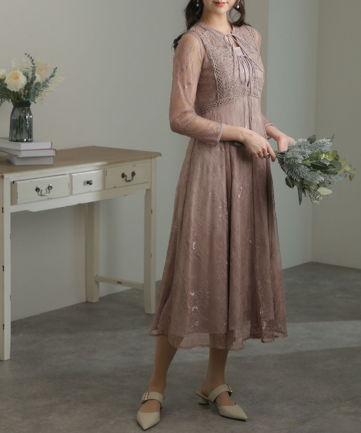 スリットスリーブジレ付きワンピース 幅広いオケージョシーンで活躍するアイテムをお探しの方におすすめ |