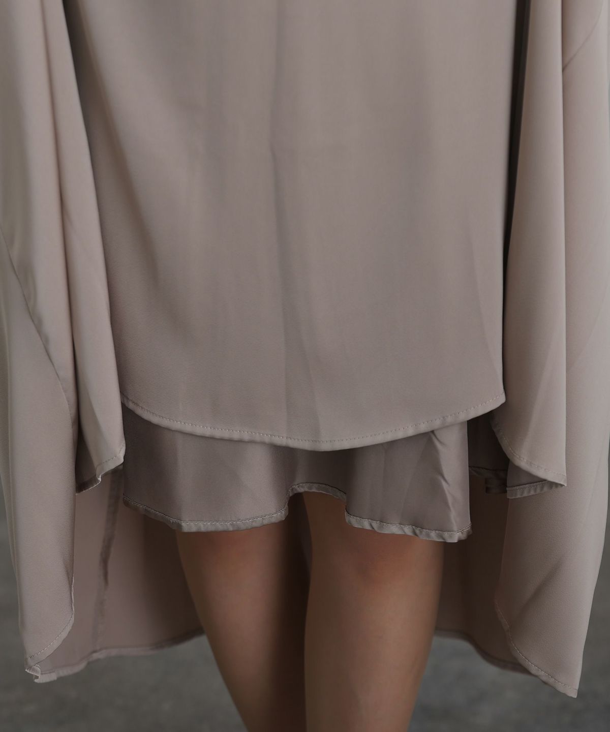 優美なフリルと華やぐシルエット チュールフリルブラウス×シャイニーキャミワンピース