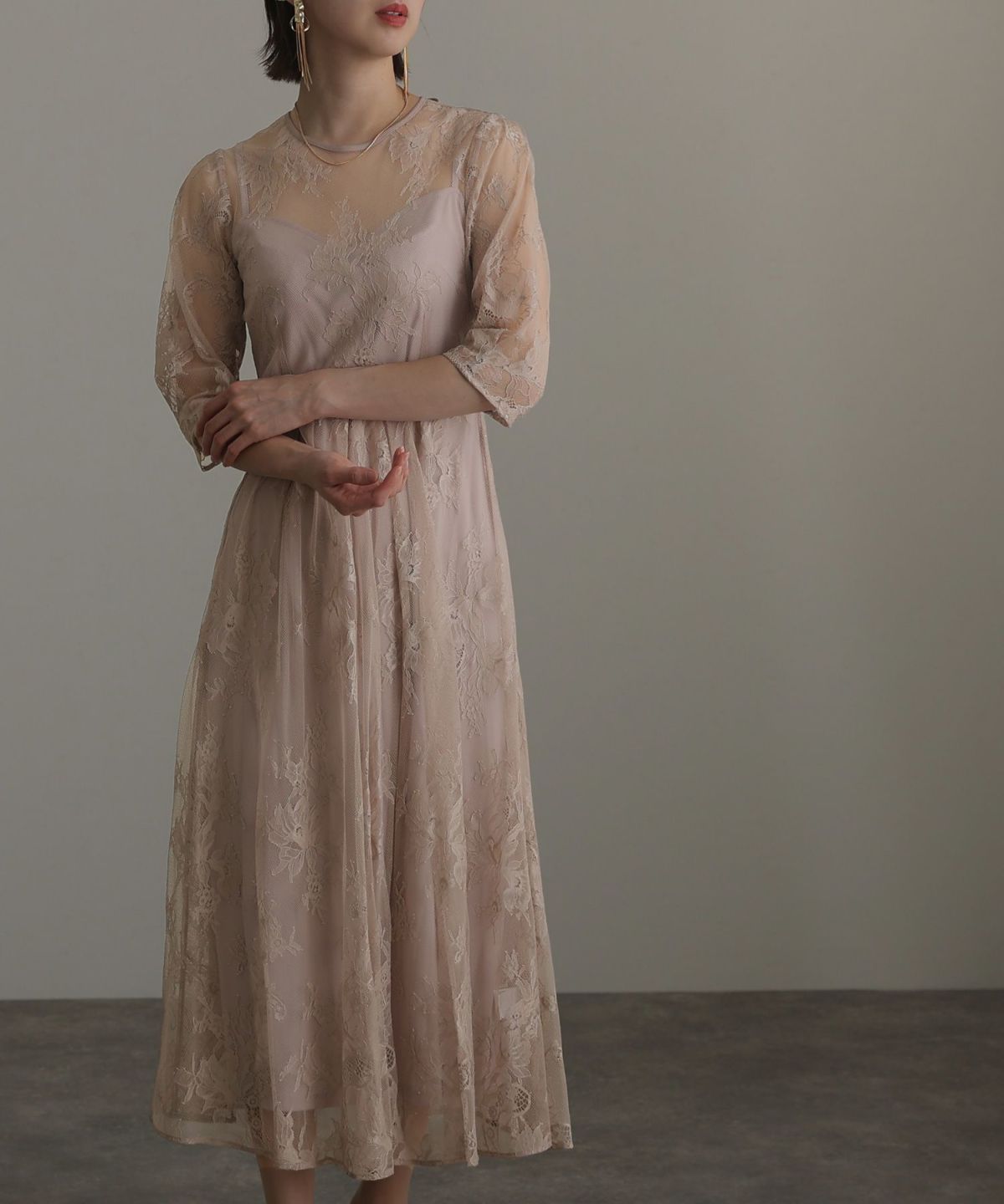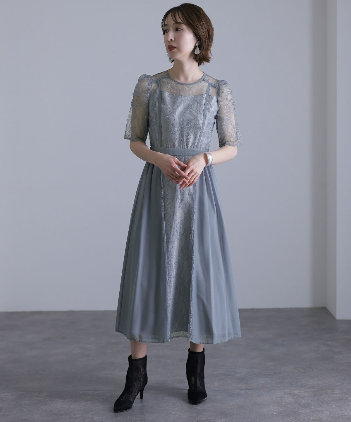 オフショル風で叶えるエレガントな抜け感 オフショル風総レースドレス