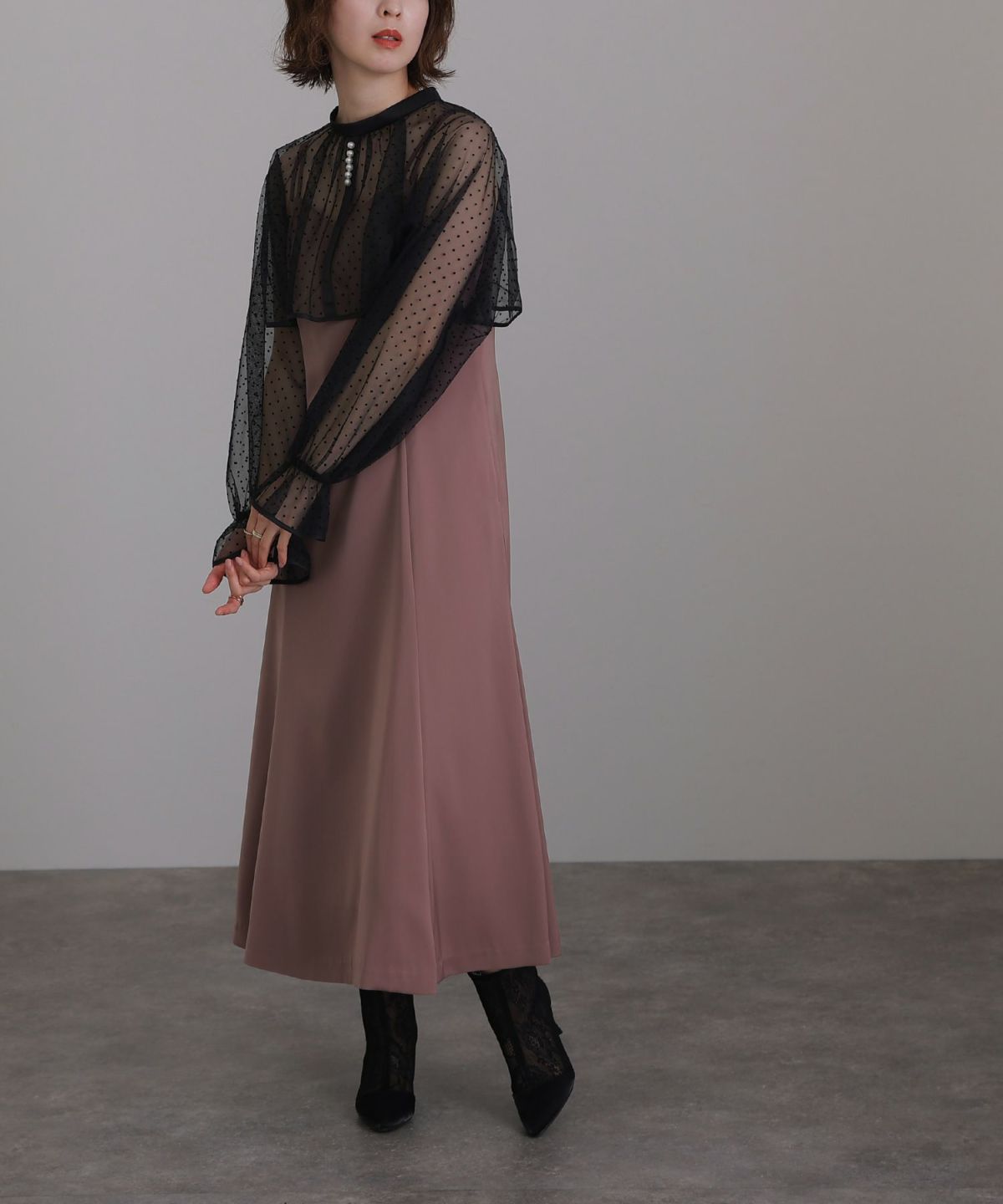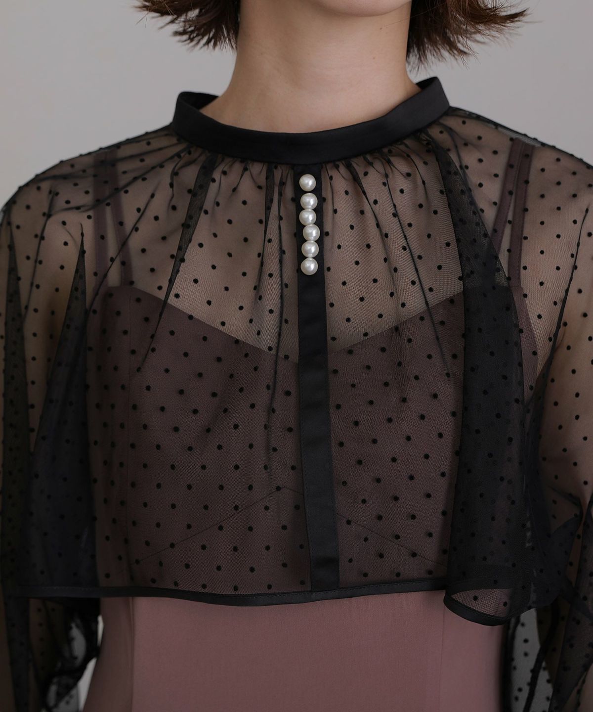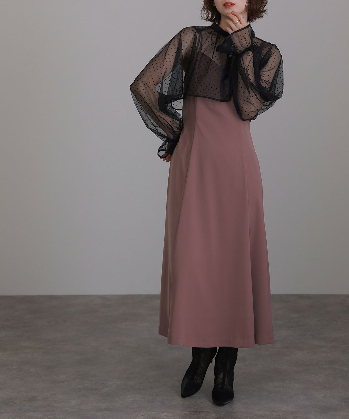 大胆な透け感ボレロがクールな印象に 2WAYフロッキードットボレロ&キャミワンピース