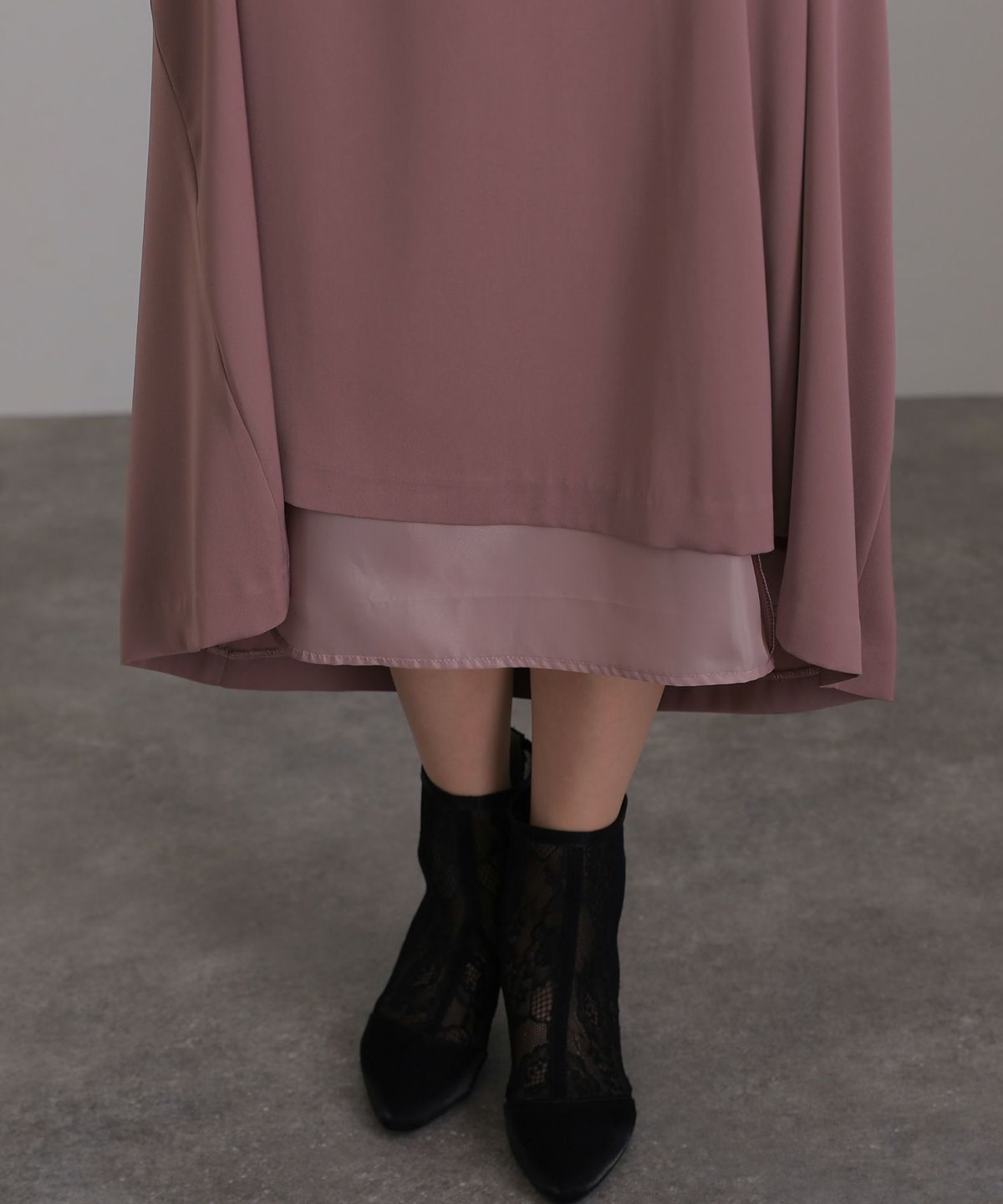 裾広がりのマーメイドラインが綺麗で女性らしい レース×サテン切替ワンピース