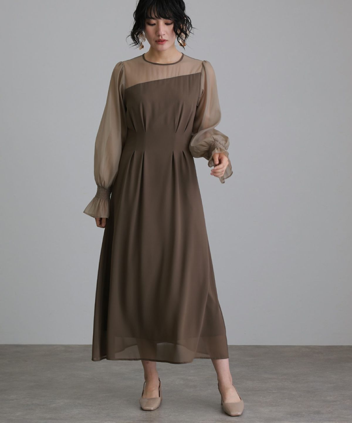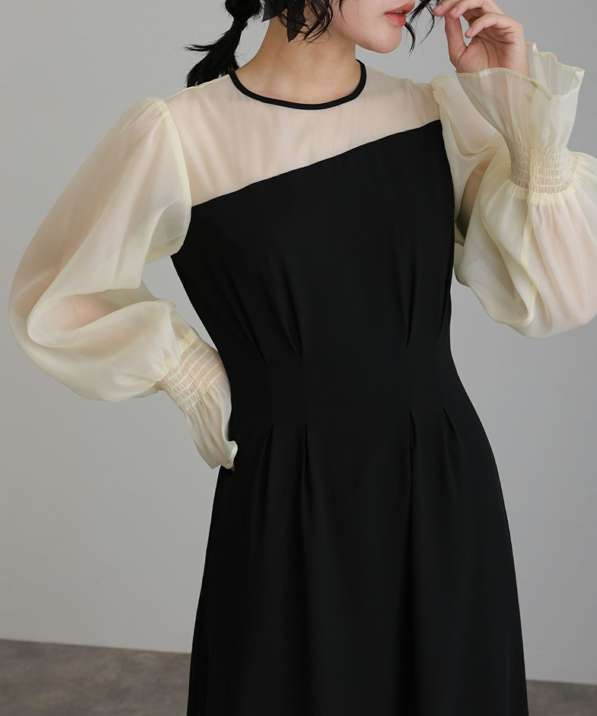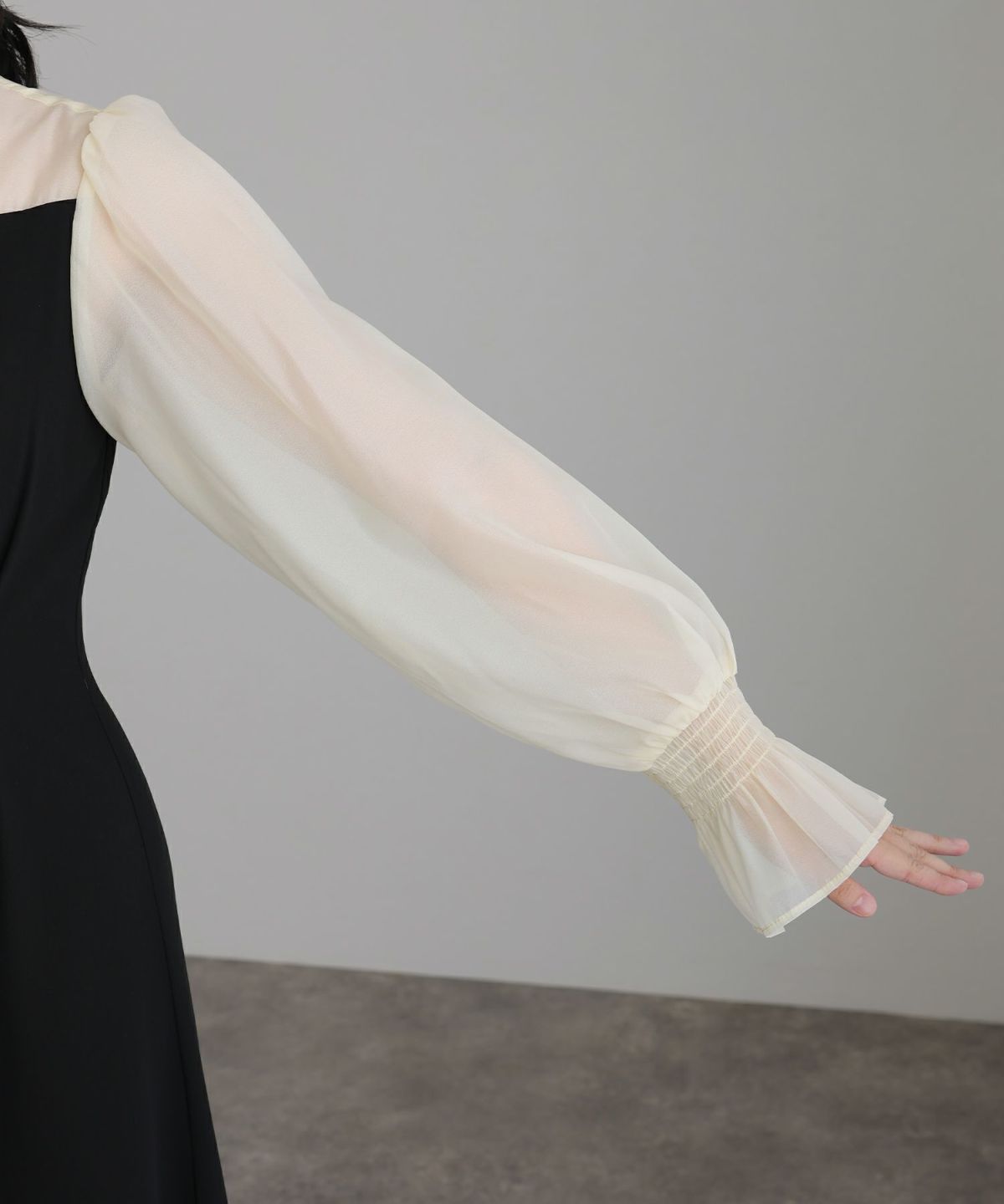 程よい透け感のオーガンジーとシフォンの組み合わせが素敵なドレスです。