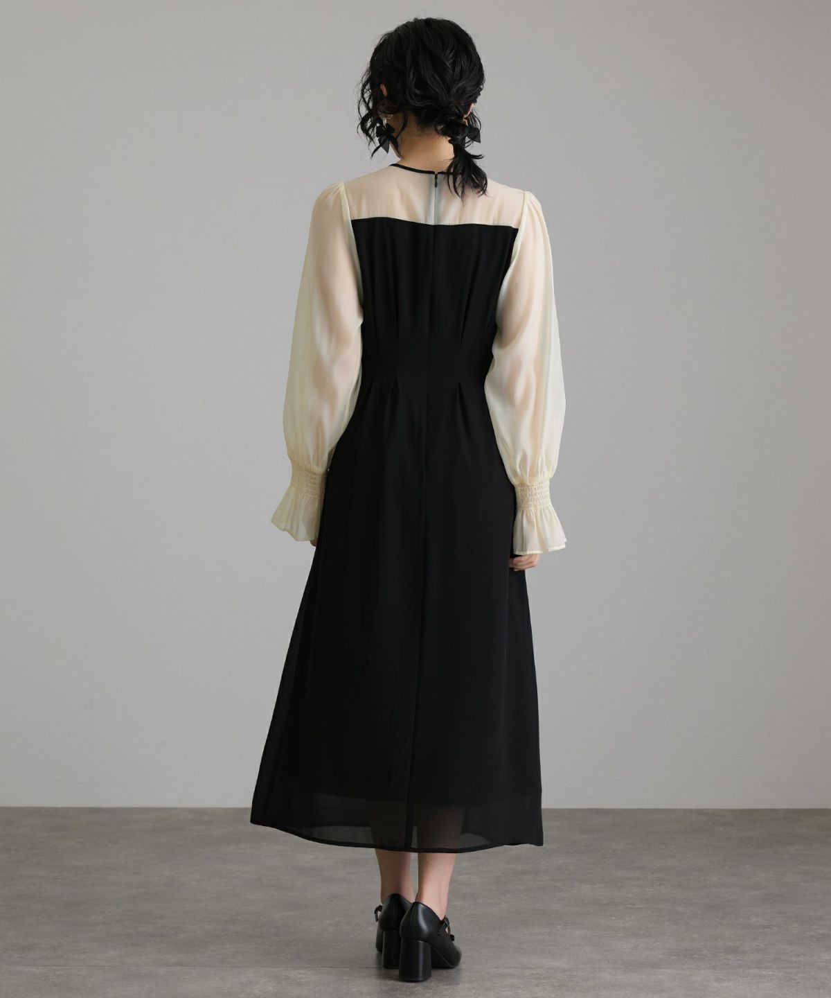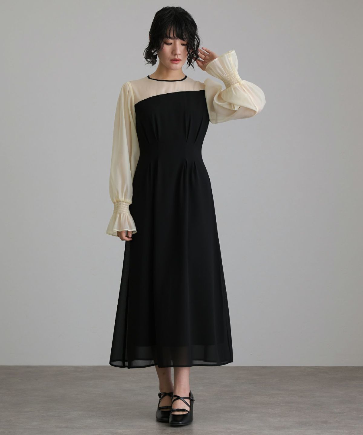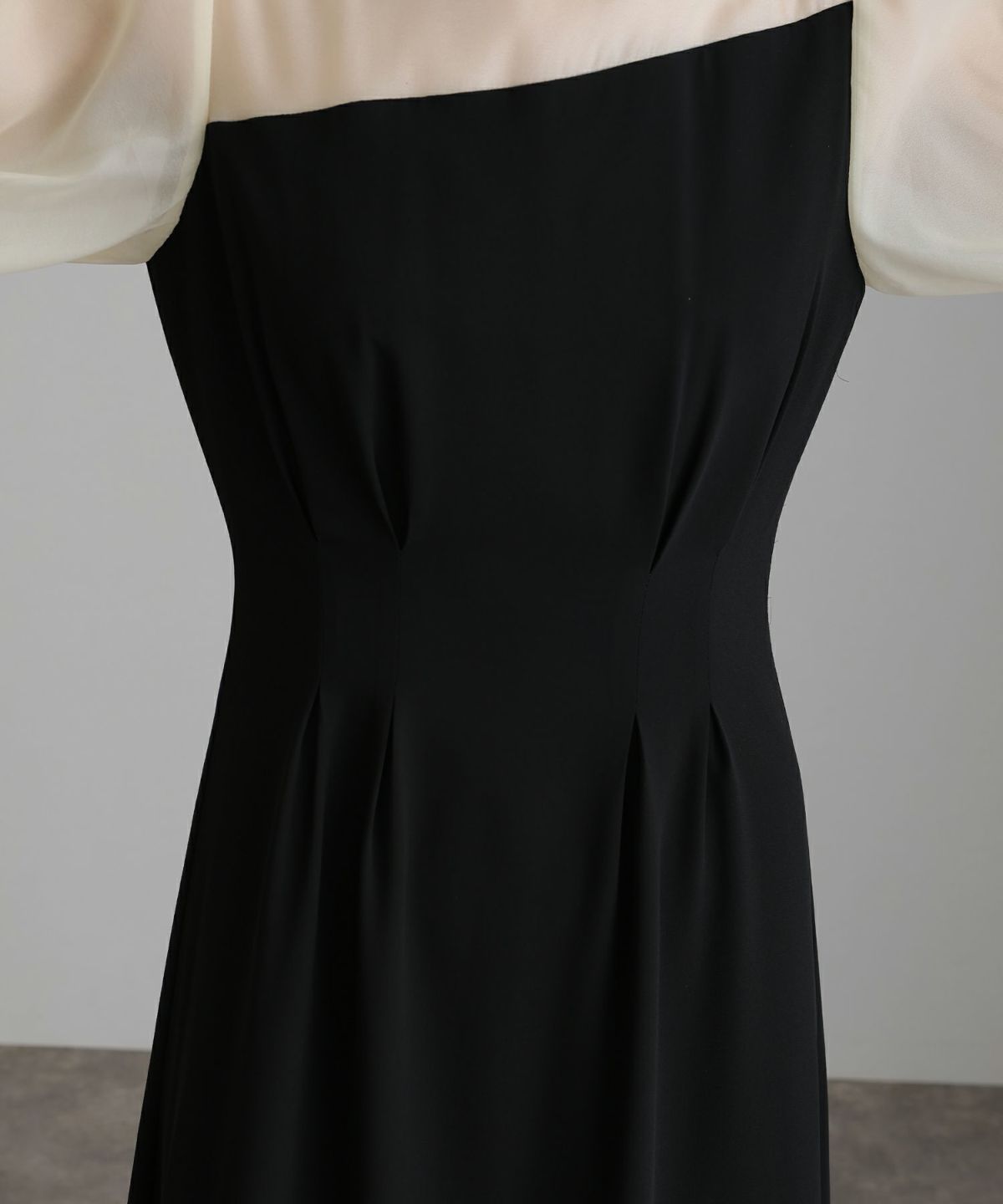 程よい透け感のオーガンジーとシフォンの組み合わせが素敵なドレスです。
