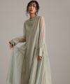 ボディにフィットしすぎず、袖部分の透け感でやわらかい印象に。
