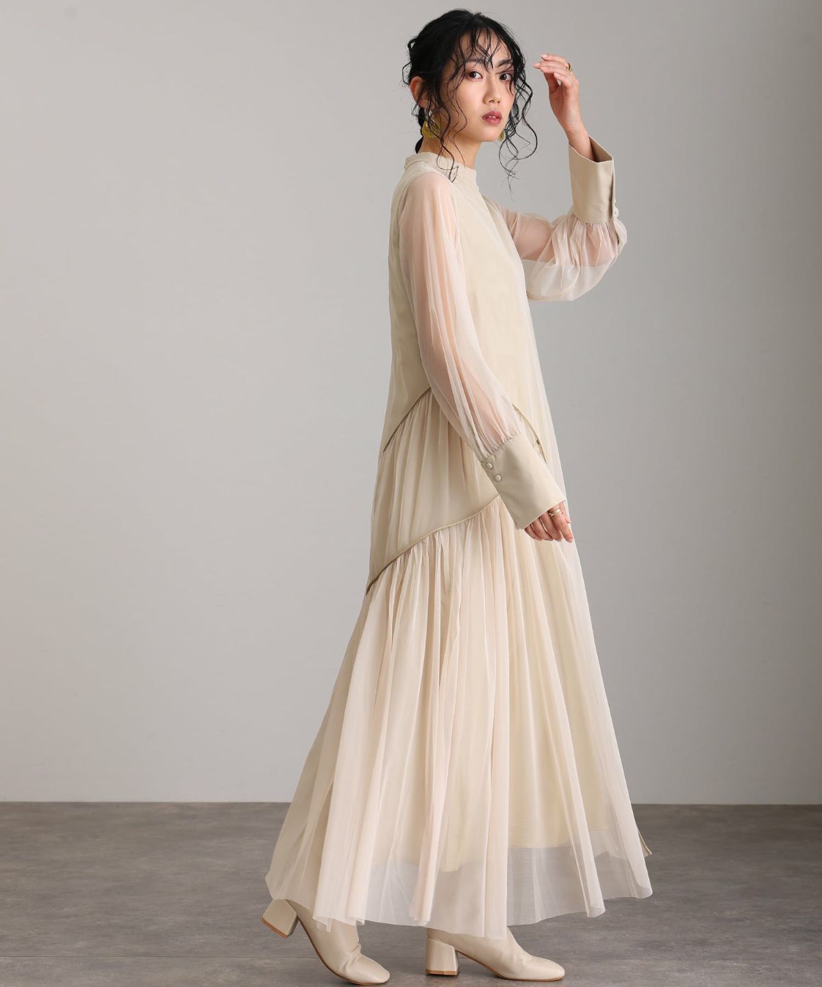 軽やかなソフトチュールが特徴的なシンプルなAラインワンピース。