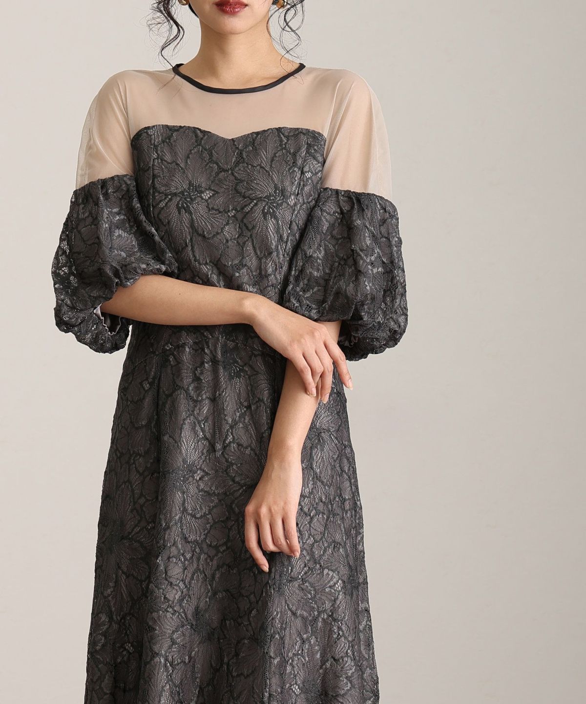 ヴィンテージ感漂うクラシカルなデザイン フラワーレースオフショル風ドレス