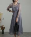 ギャザーチュールの透け感が可愛らしい ギャザーチュール&プリーツドレス