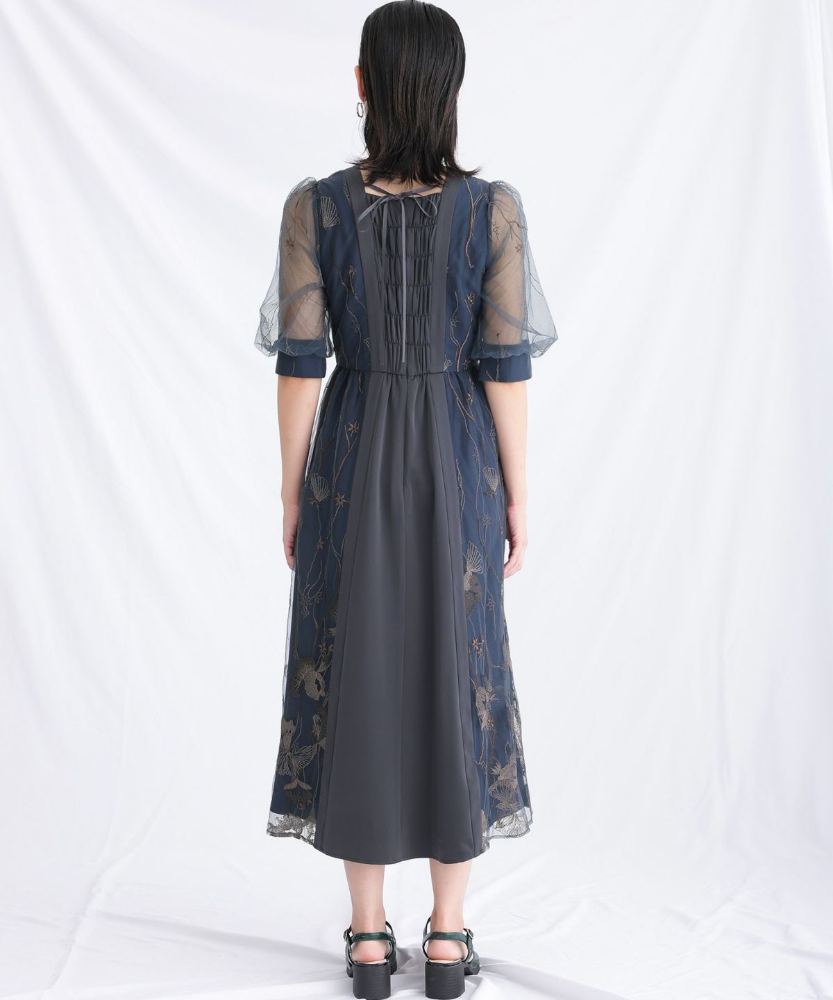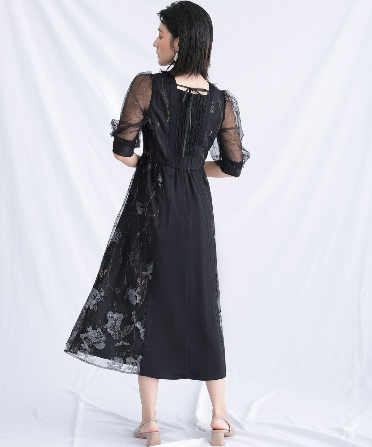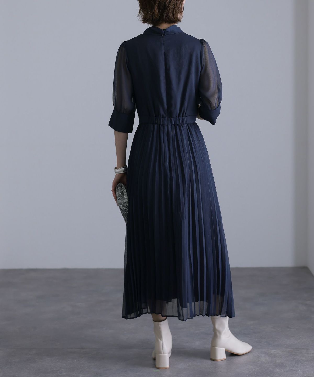 ワンピースタイプのパーティードレスは、バックスタイルも美しいデザインが多く一枚で完成度の高いスタイルを実現し、