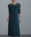 オリジナルの刺繍レースを贅沢に使用 Vネック2素材切替刺繍ドレス