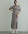 ハートカットと袖口のシャーリングがフェミニンな雰囲気 ハートカットタイトワンピース