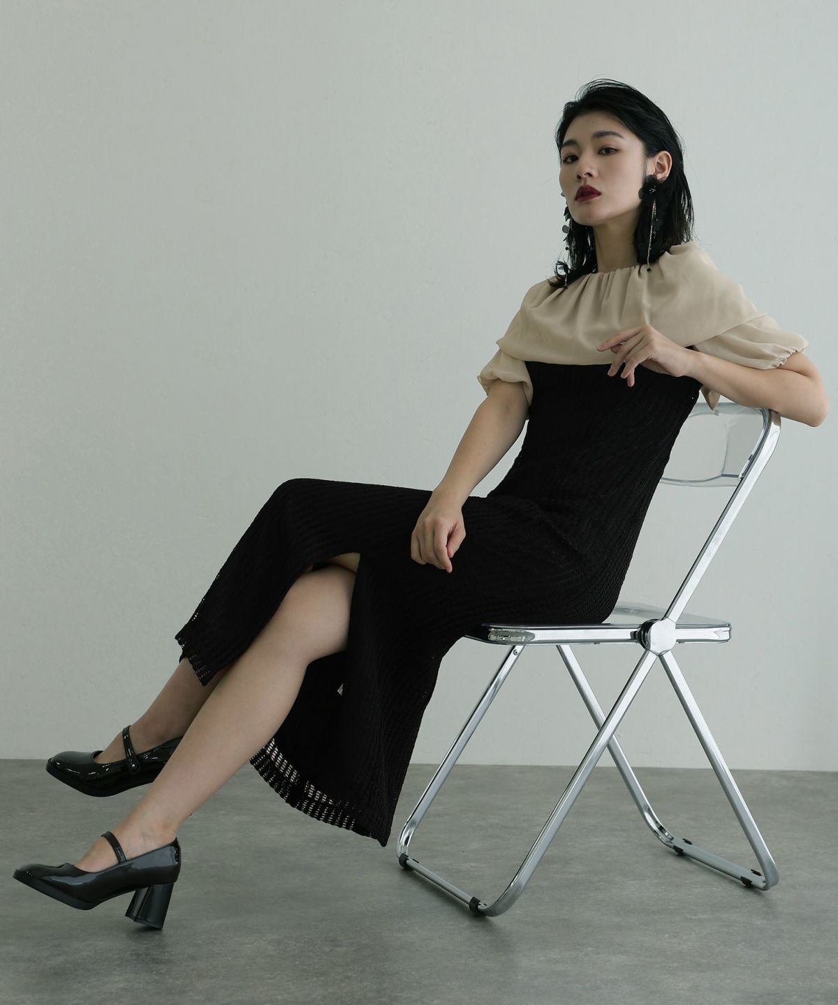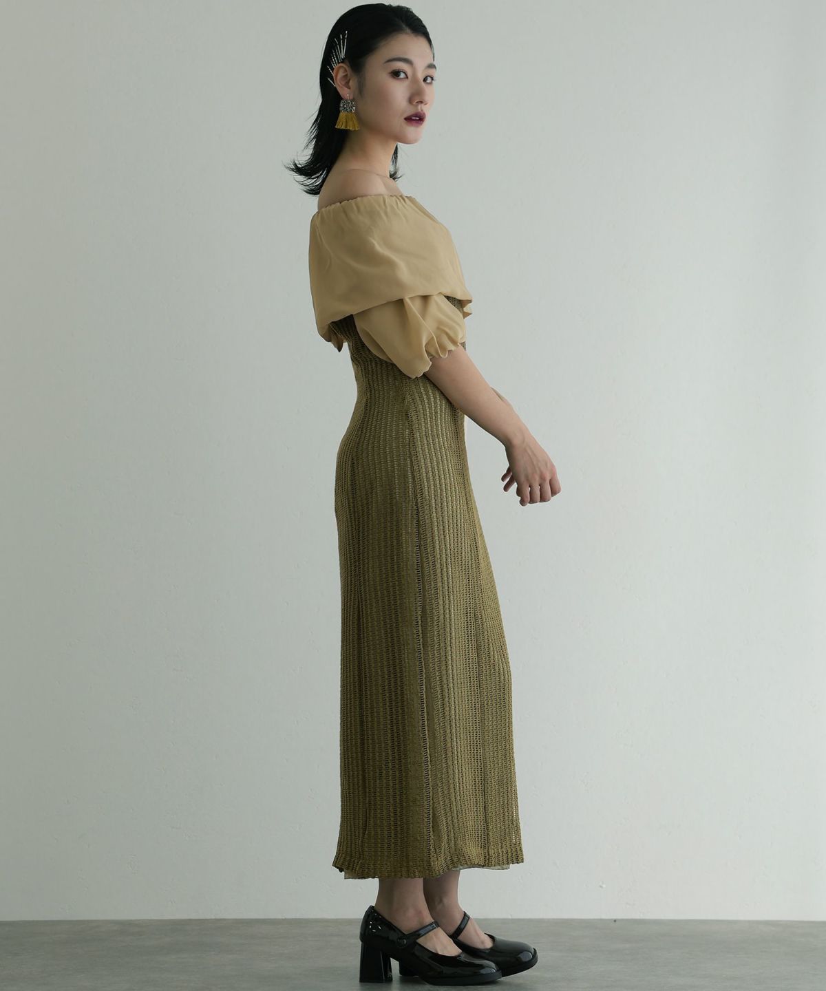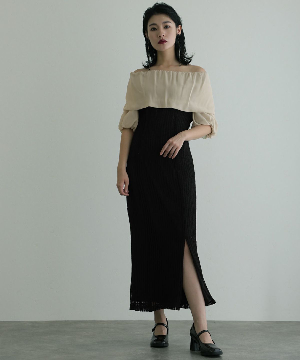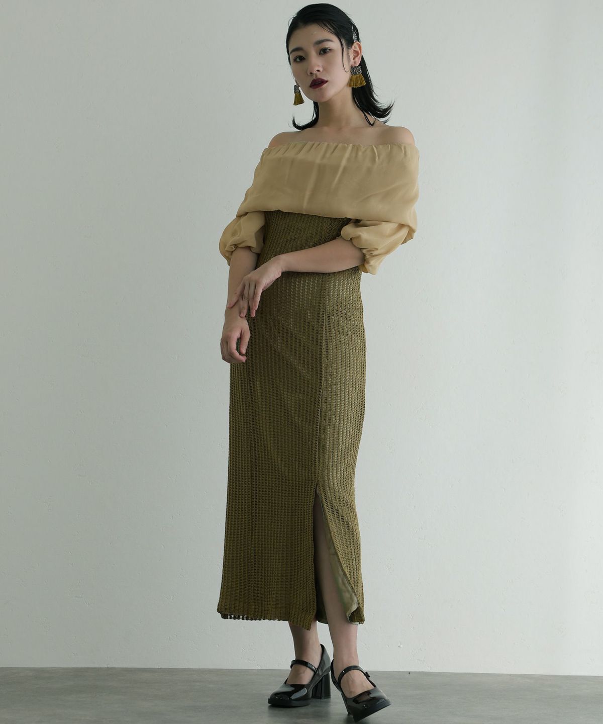 体型カバーポイント:【肩】【二の腕】【ウエスト】【脚】【太もも】
