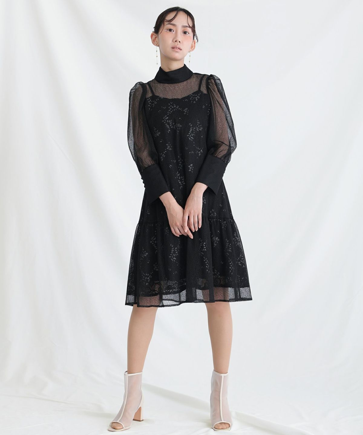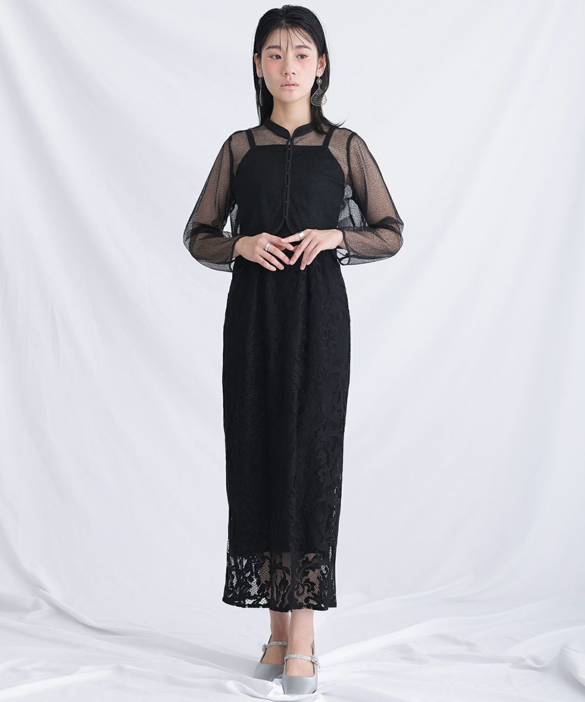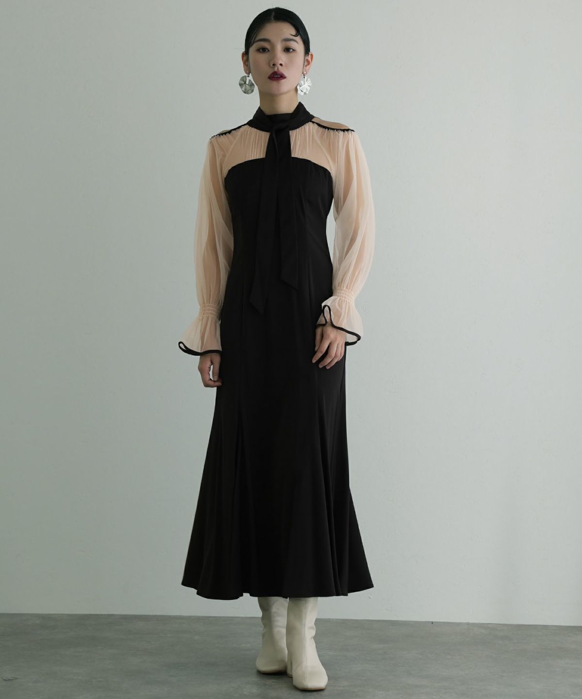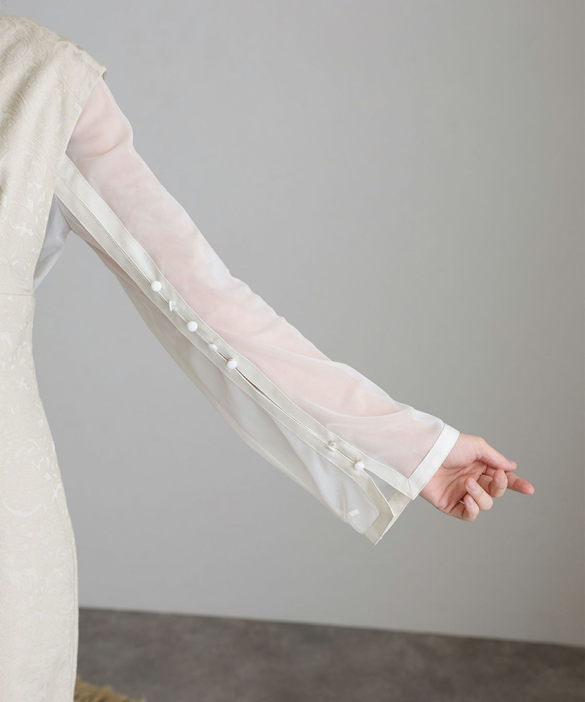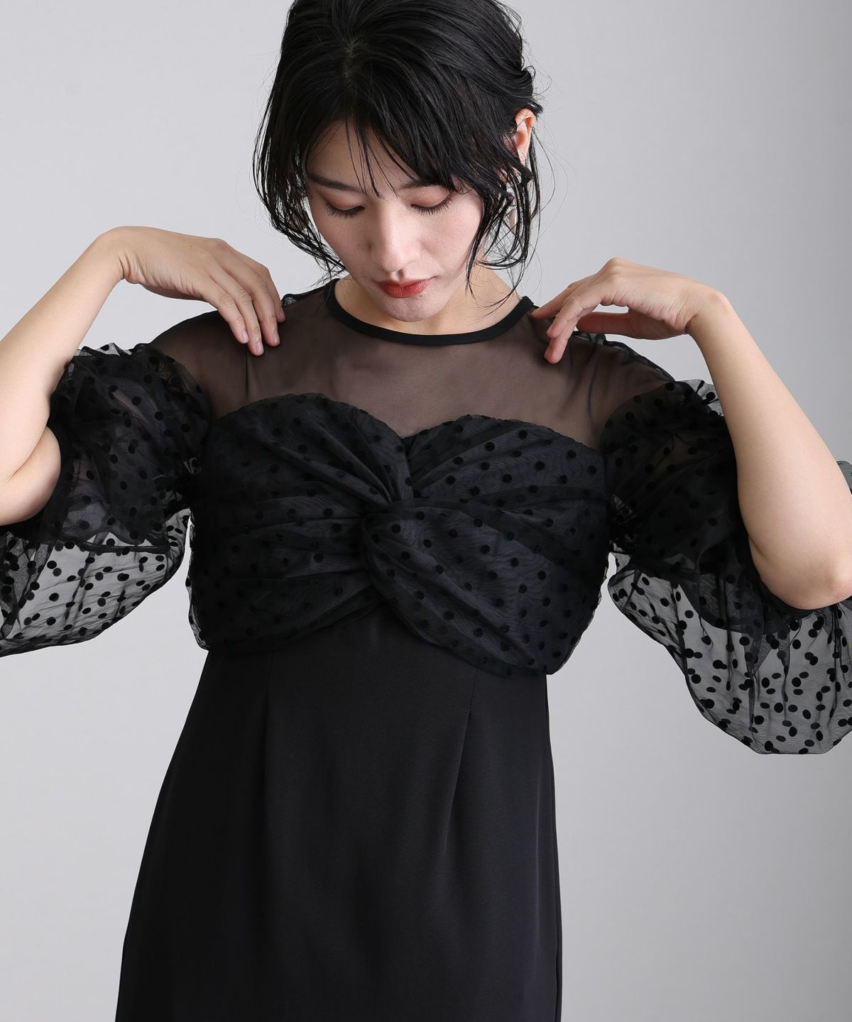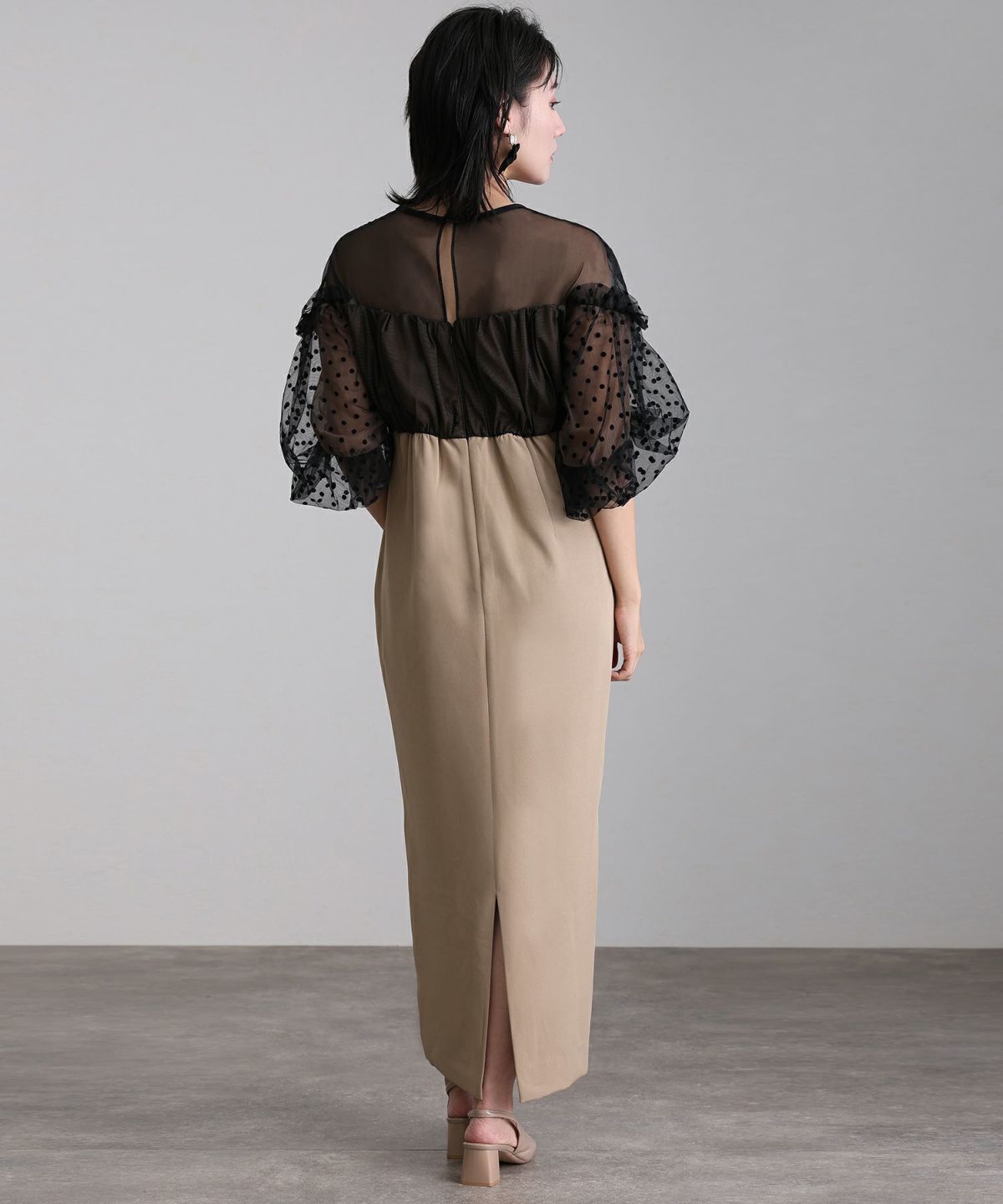 【二の腕】【脚】【ウエスト】【ヒップ】ほどよい透け感で気になる二の腕をカバーしたりロング丈で脚元もカバーできる体型カバーに優れたドレスもございます。