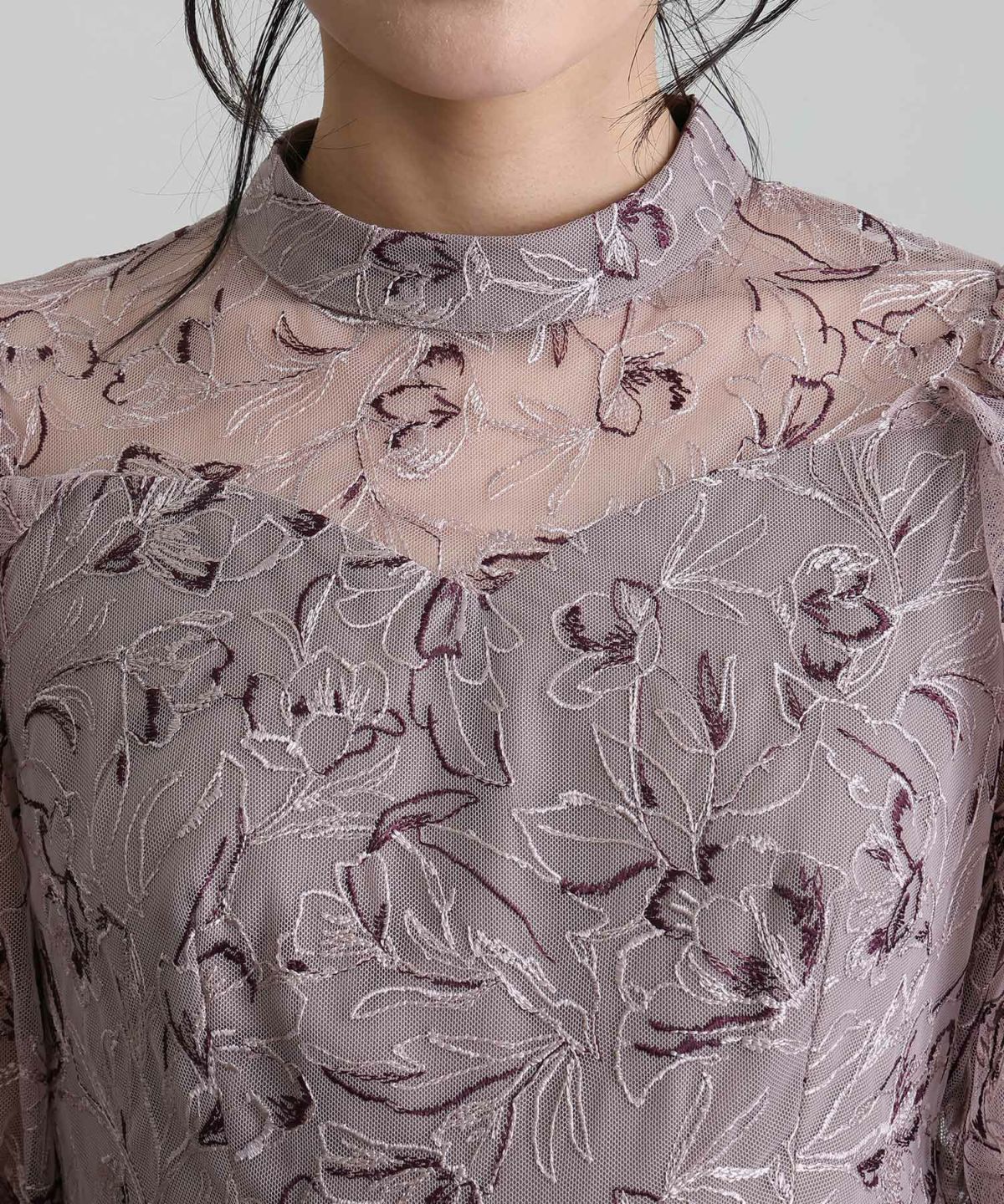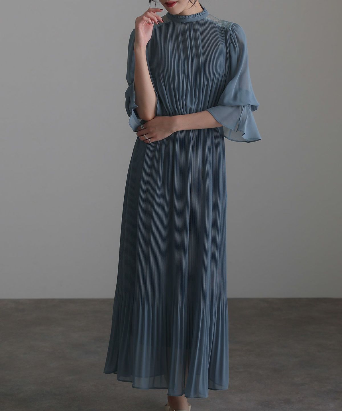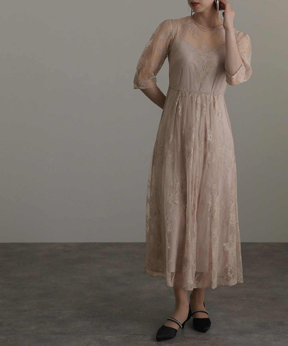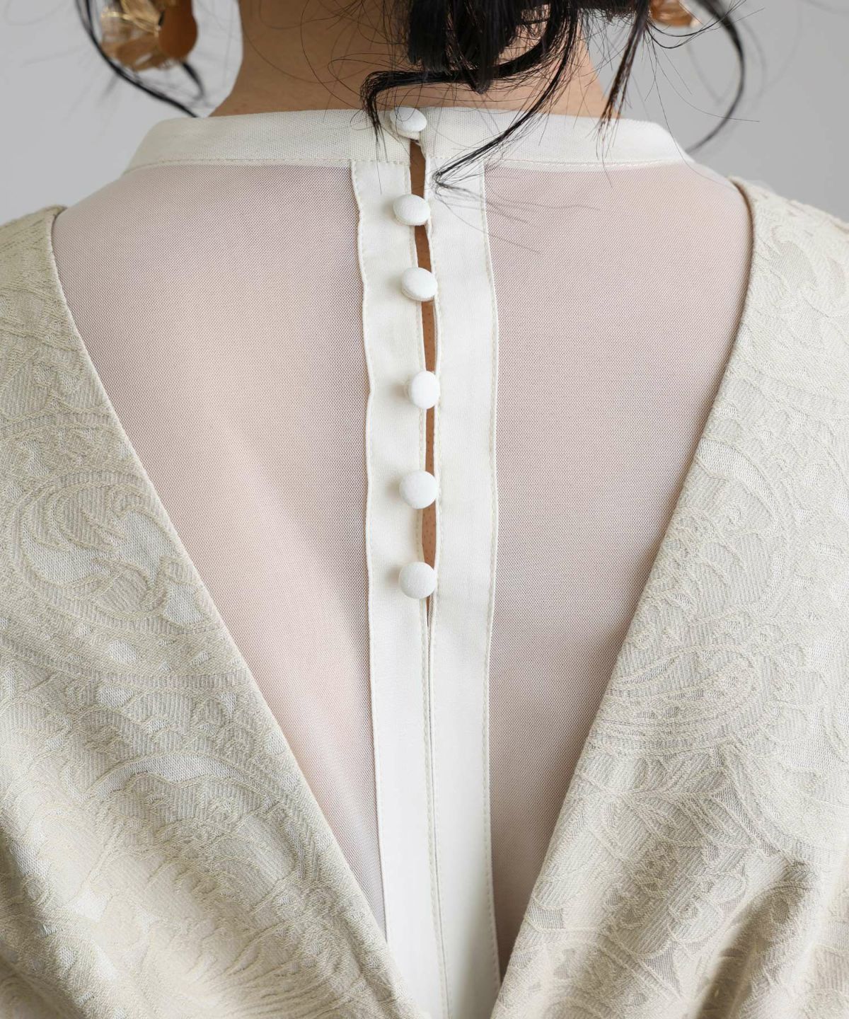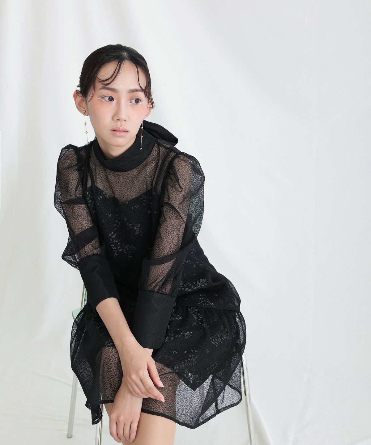【二の腕】【脚】【ウエスト】【ヒップ】ほどよい透け感で気になる二の腕をカバーしたりロング丈で脚元もカバーできる体型カバーに優れたドレスもございます。
