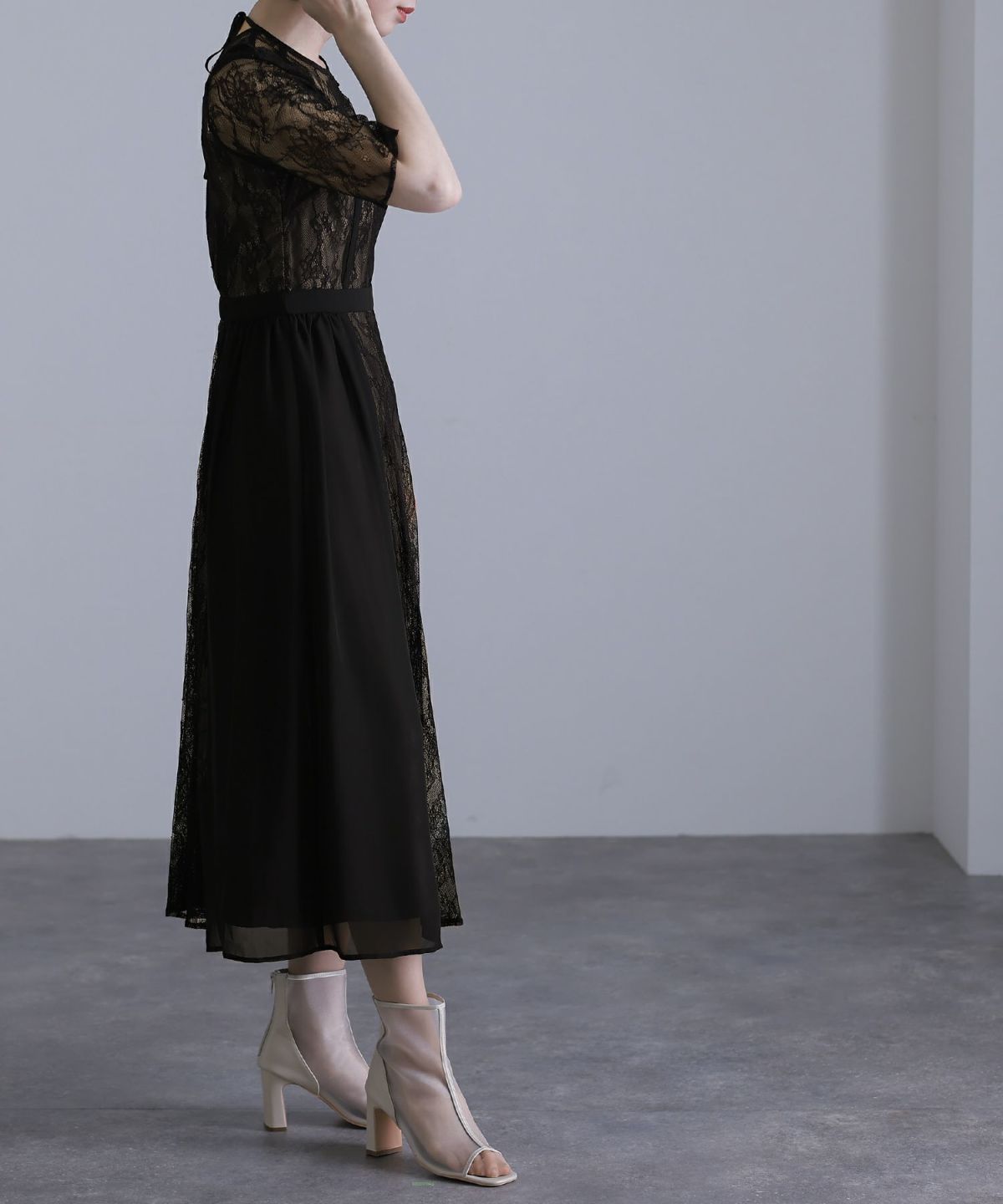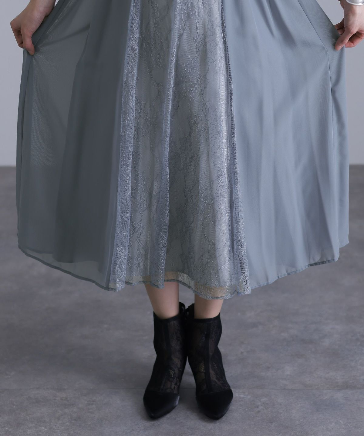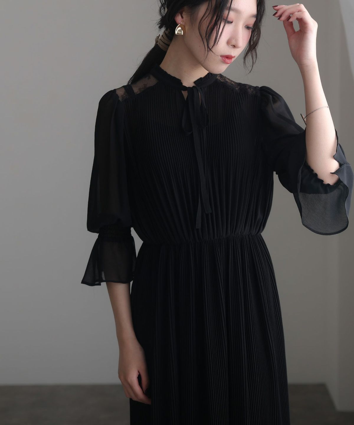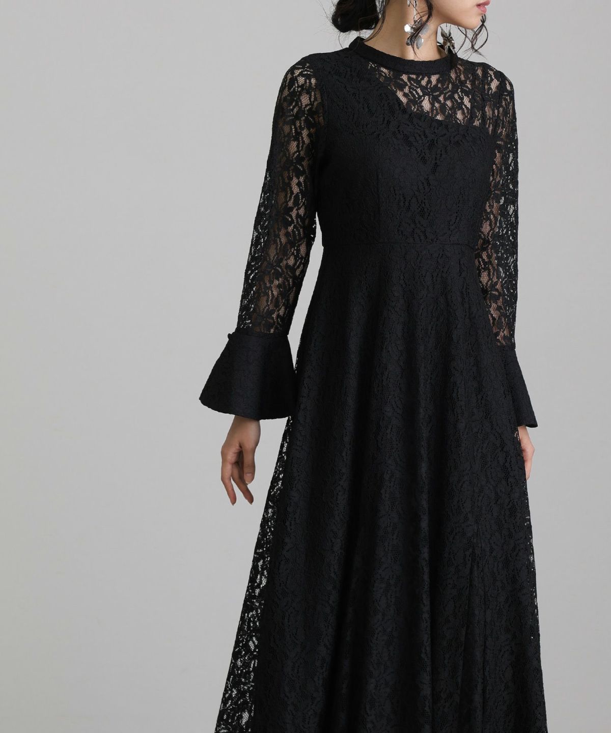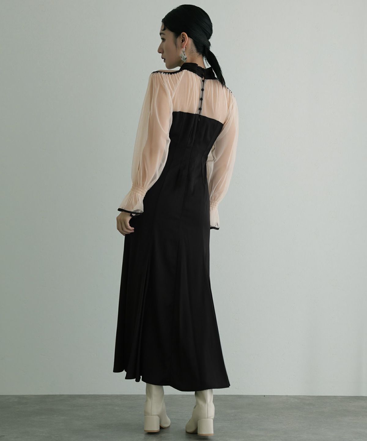【二の腕】【脚】【ウエスト】【ヒップ】ほどよい透け感で気になる二の腕をカバーしたりロング丈で脚元もカバーできる体型カバーに優れたドレスもございます。