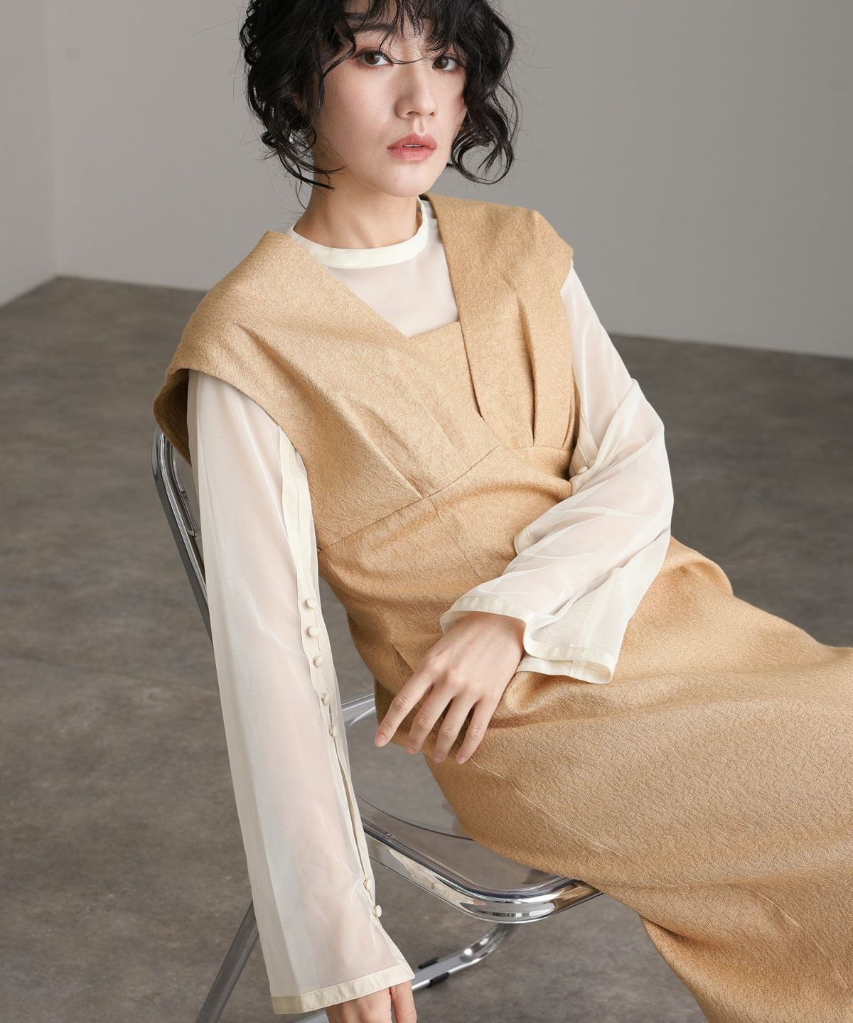 スリットスリーブジレ付きワンピース 幅広いオケージョシーンで活躍するアイテムをお探しの方におすすめ |