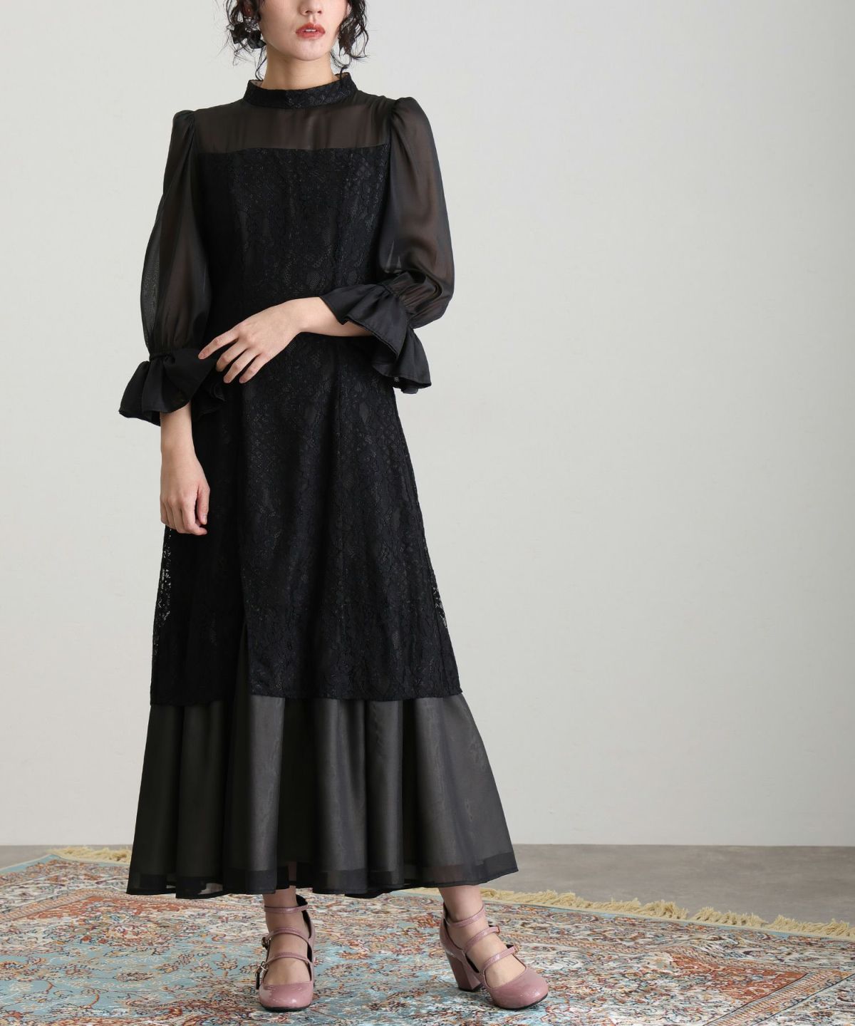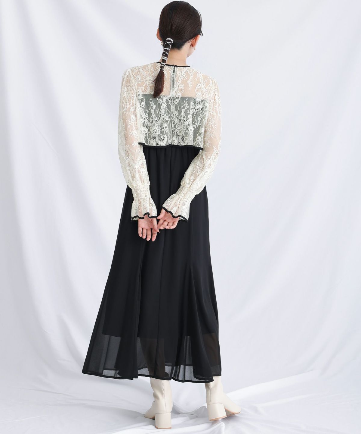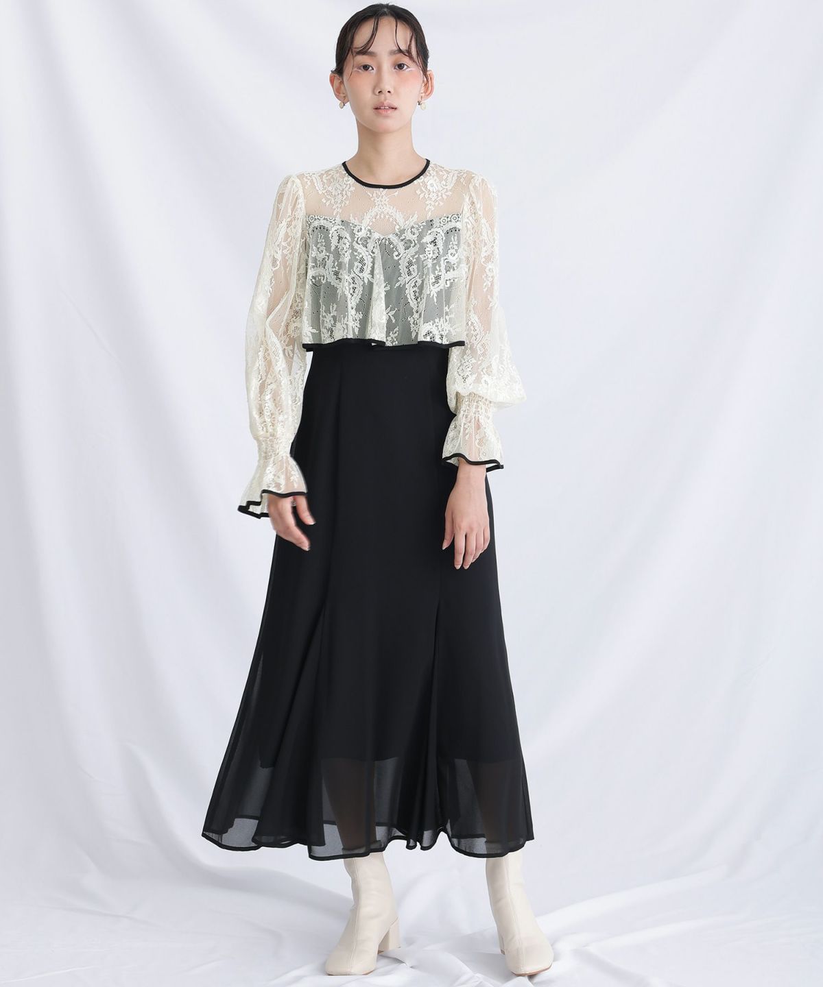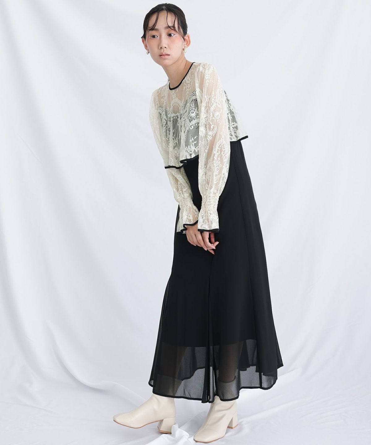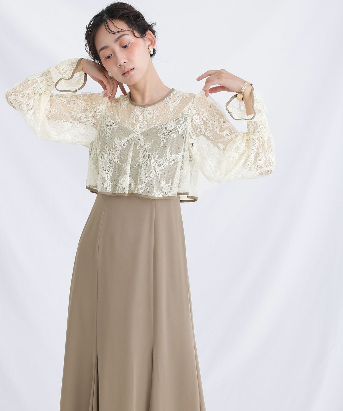 レースとオーガンジー素材の組み合わせが華やか レースレイヤードワンピ―ス