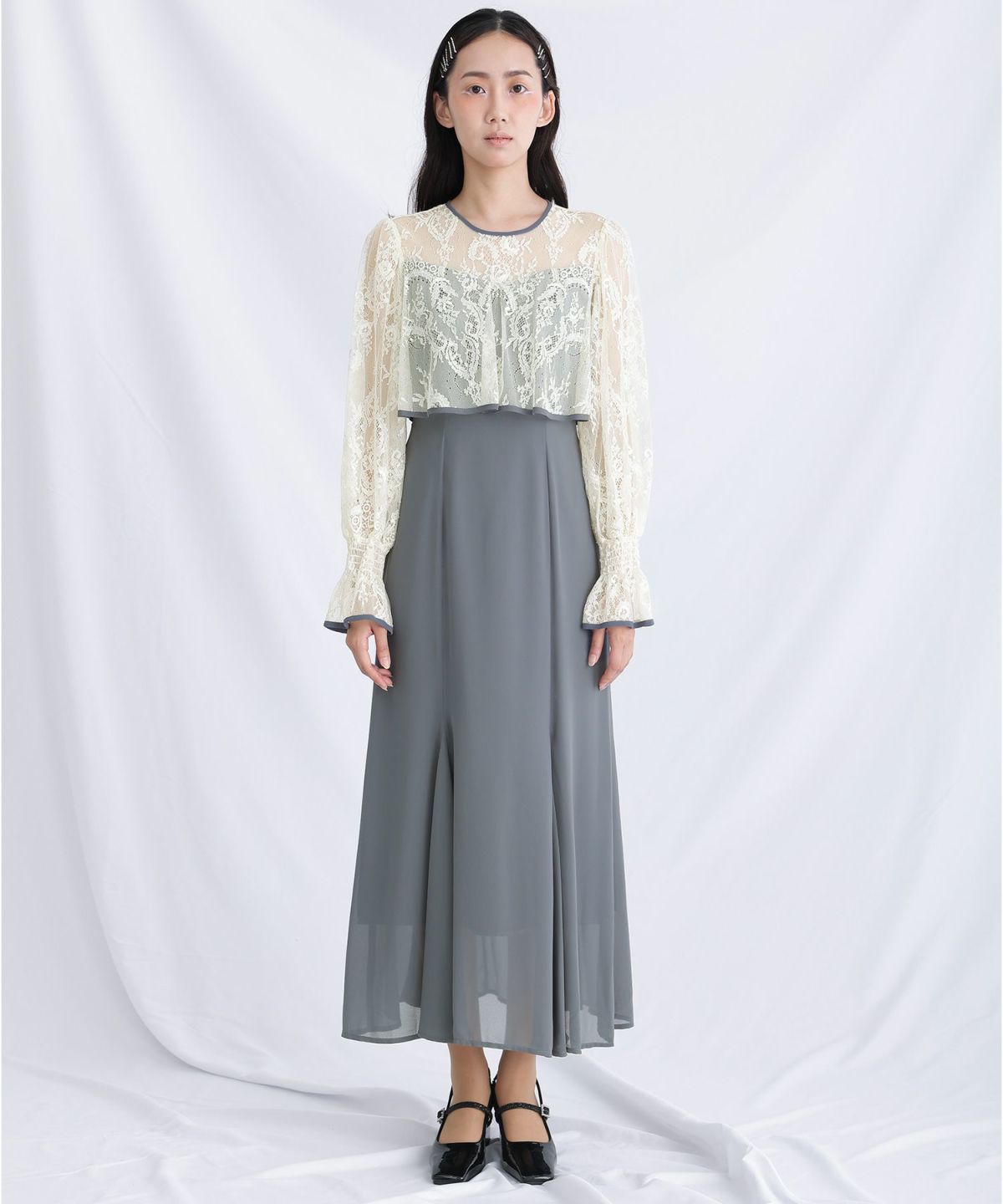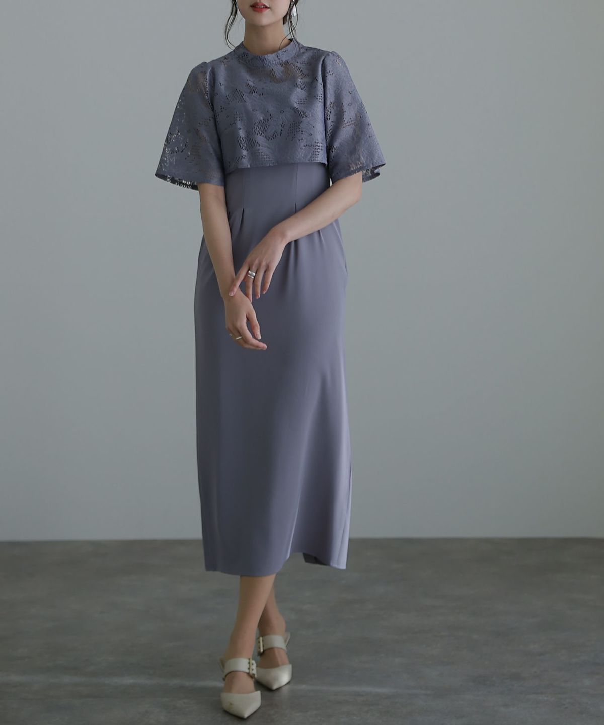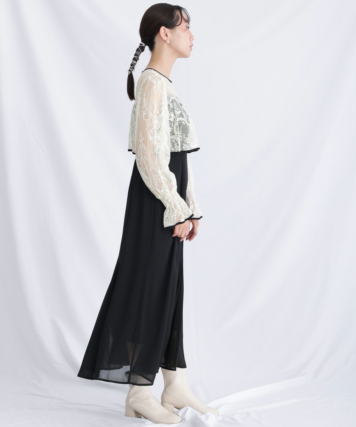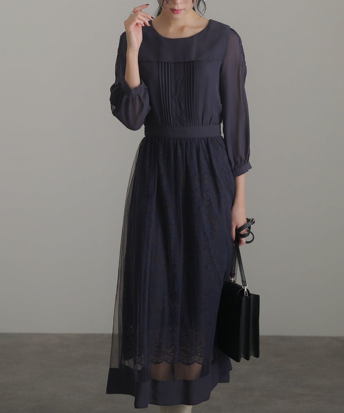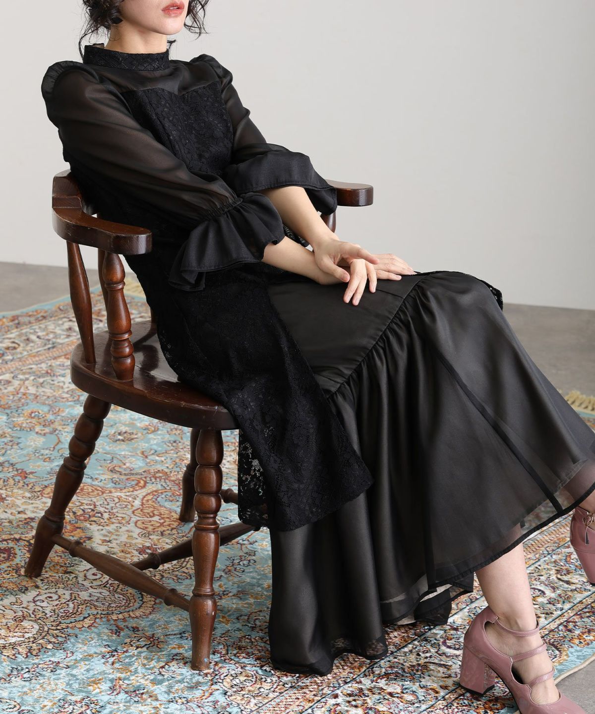 レースとオーガンジー素材の組み合わせが華やか レースレイヤードワンピ―ス