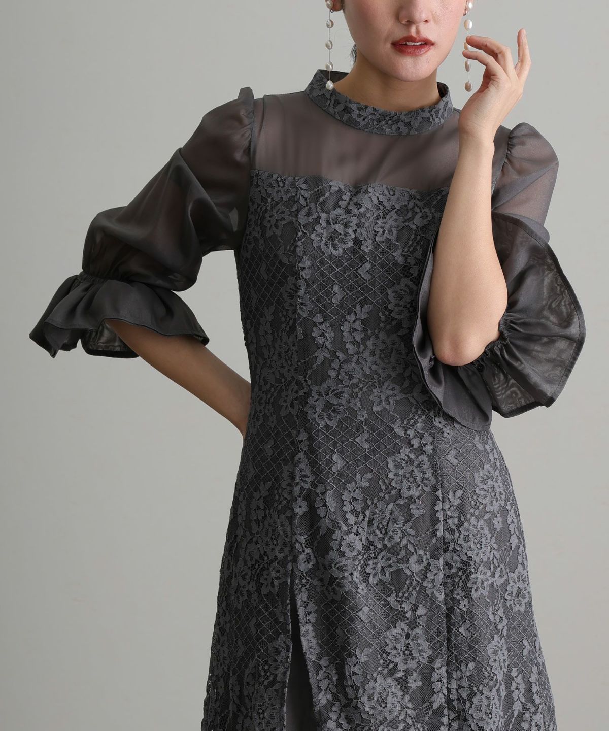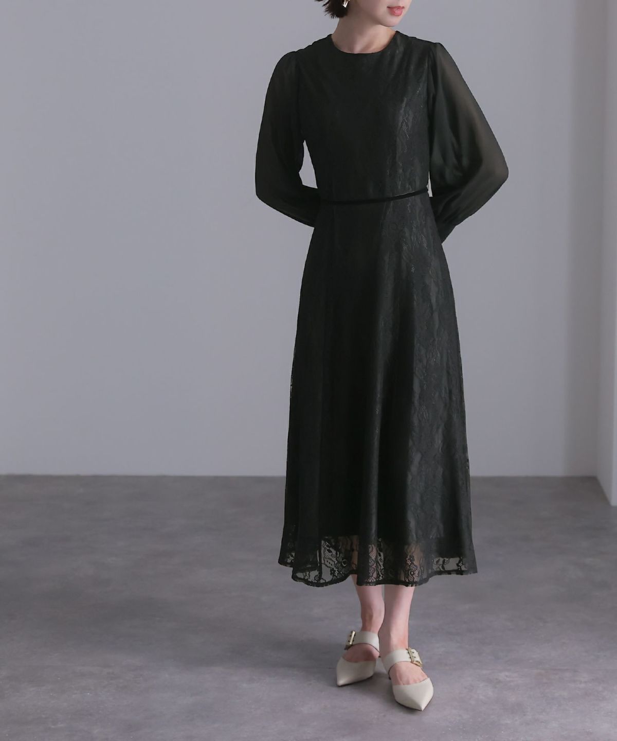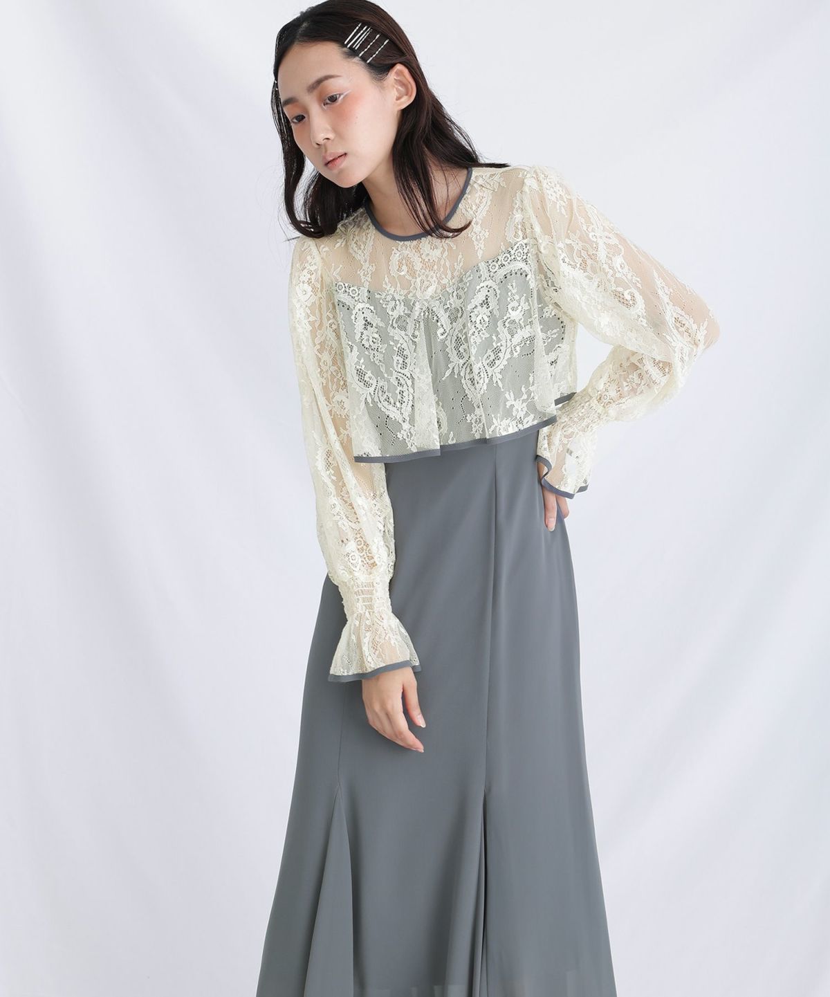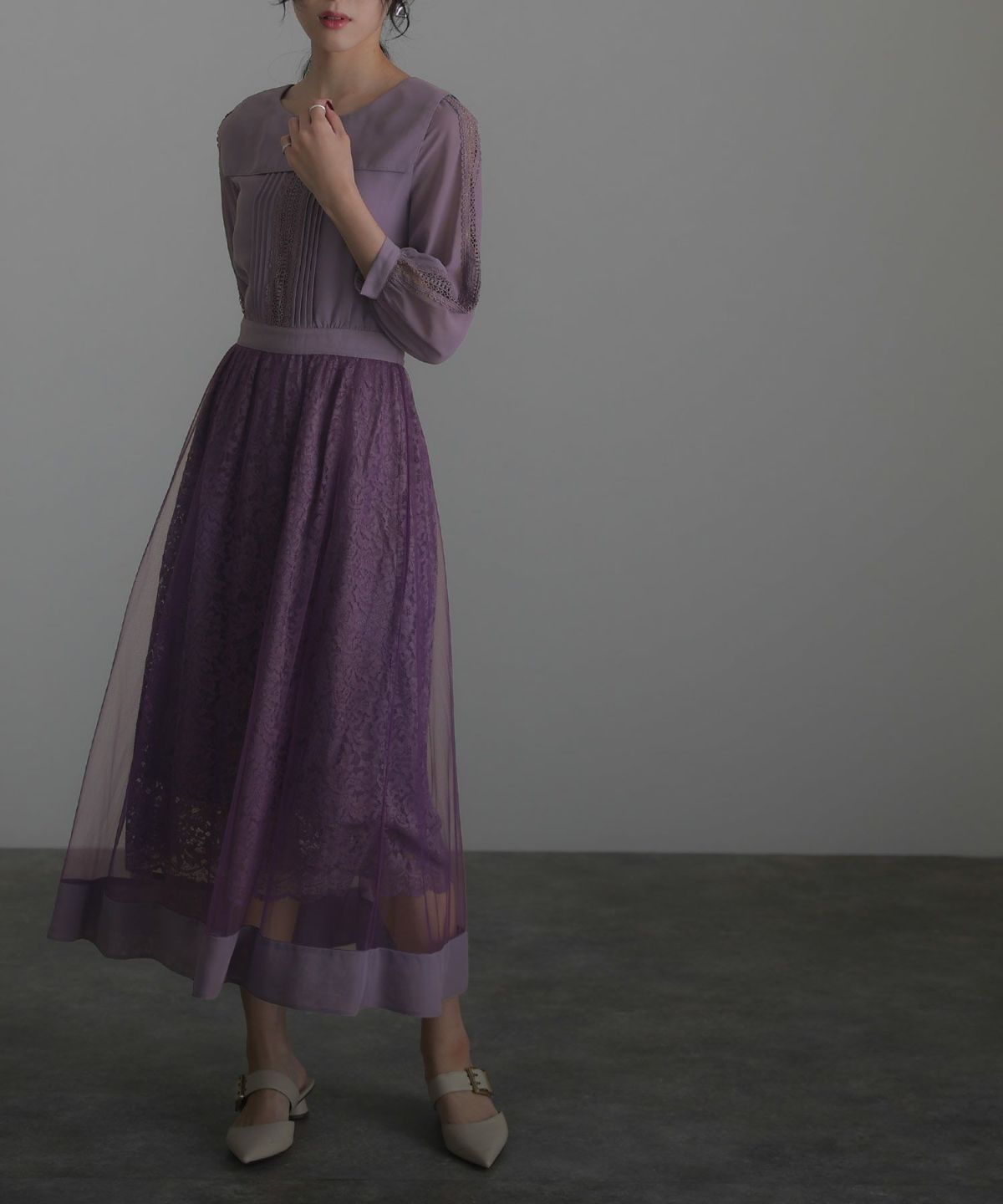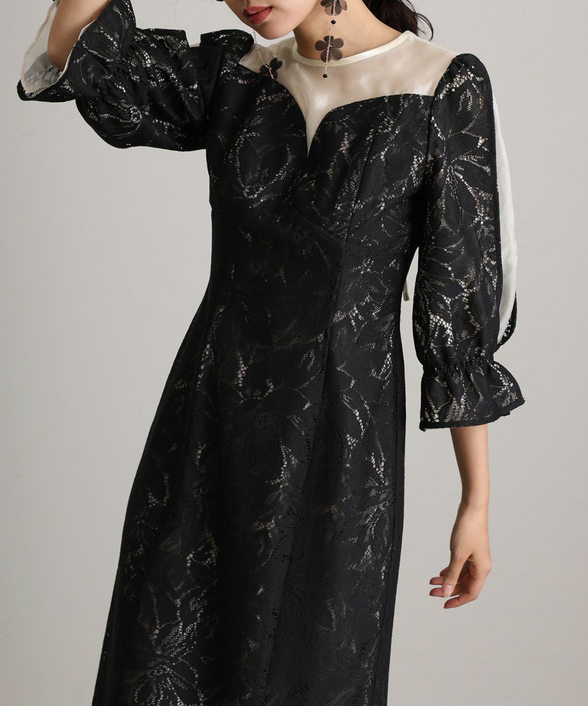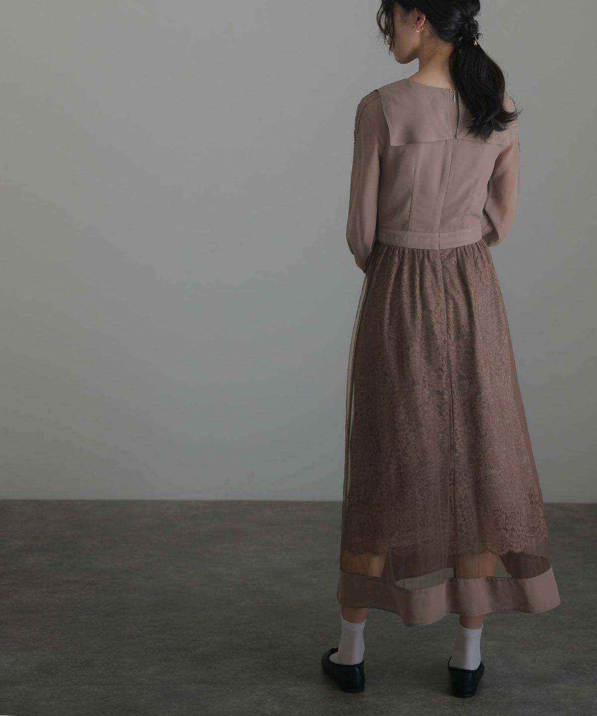 レースとオーガンジー素材の組み合わせが華やか レースレイヤードワンピ―ス