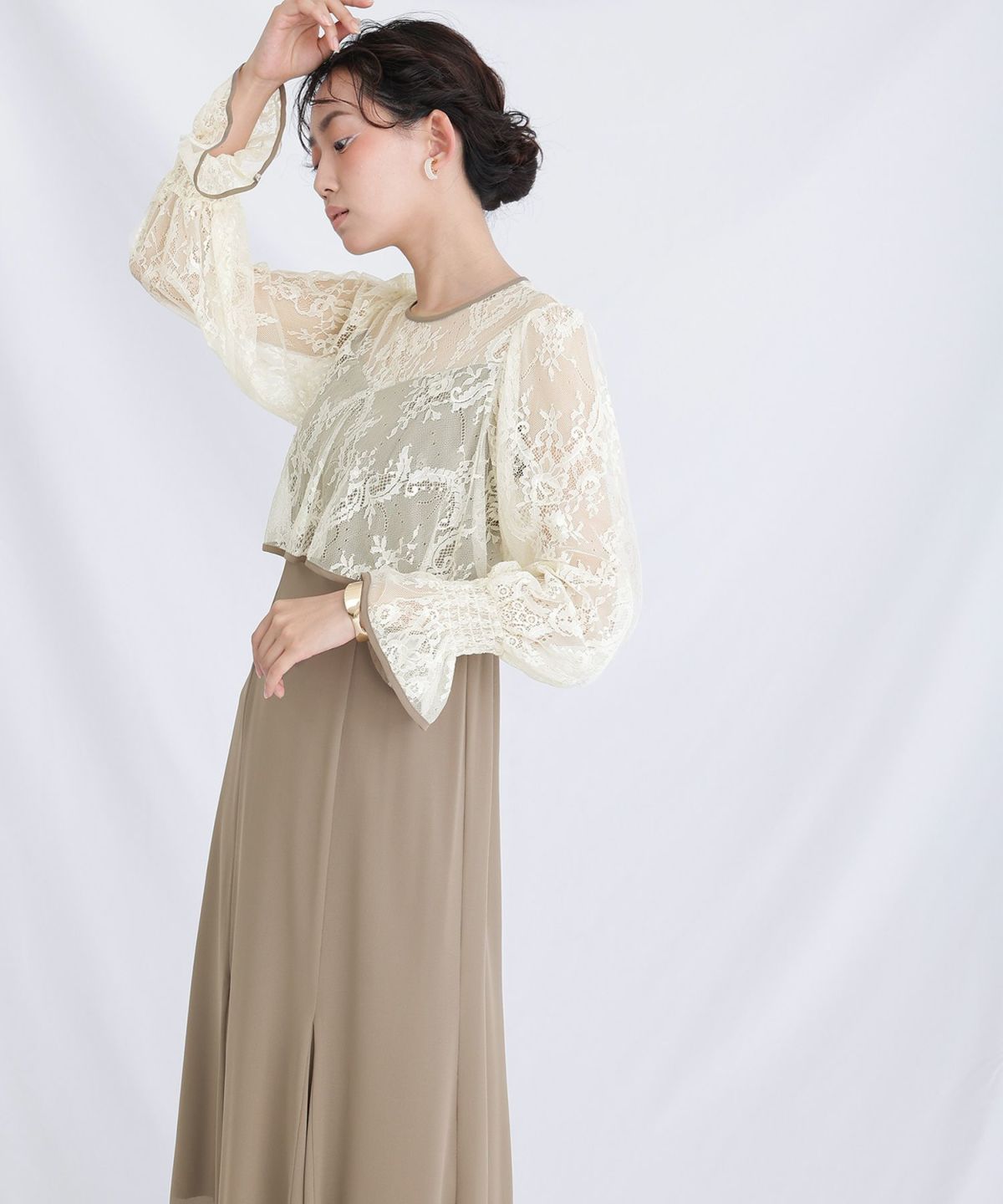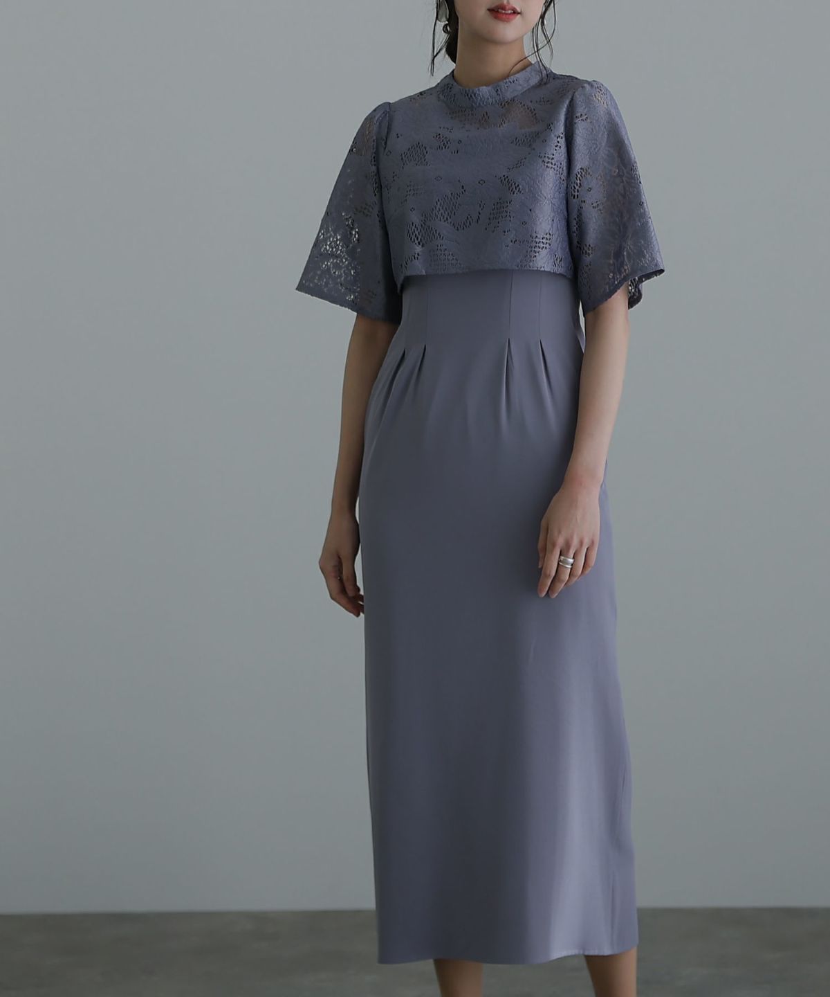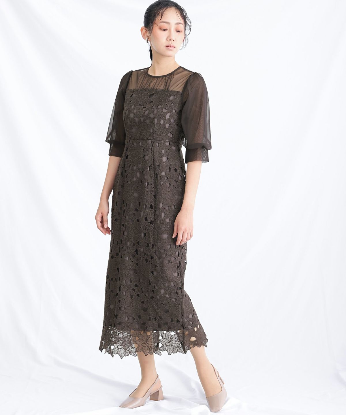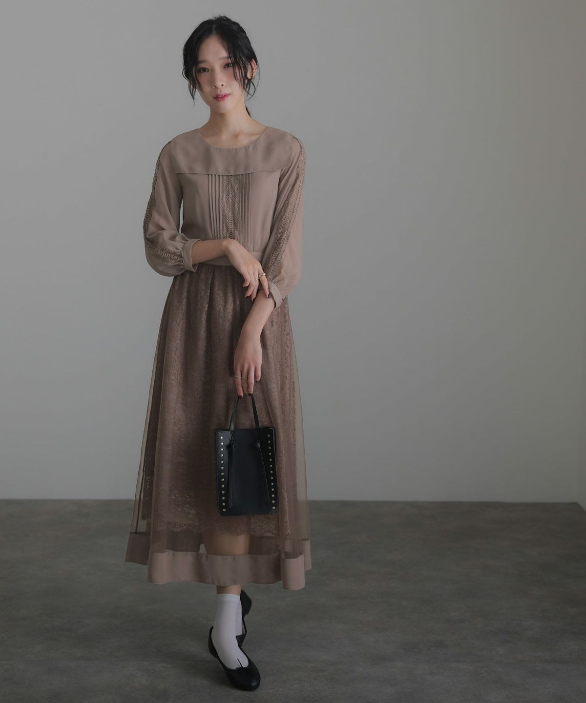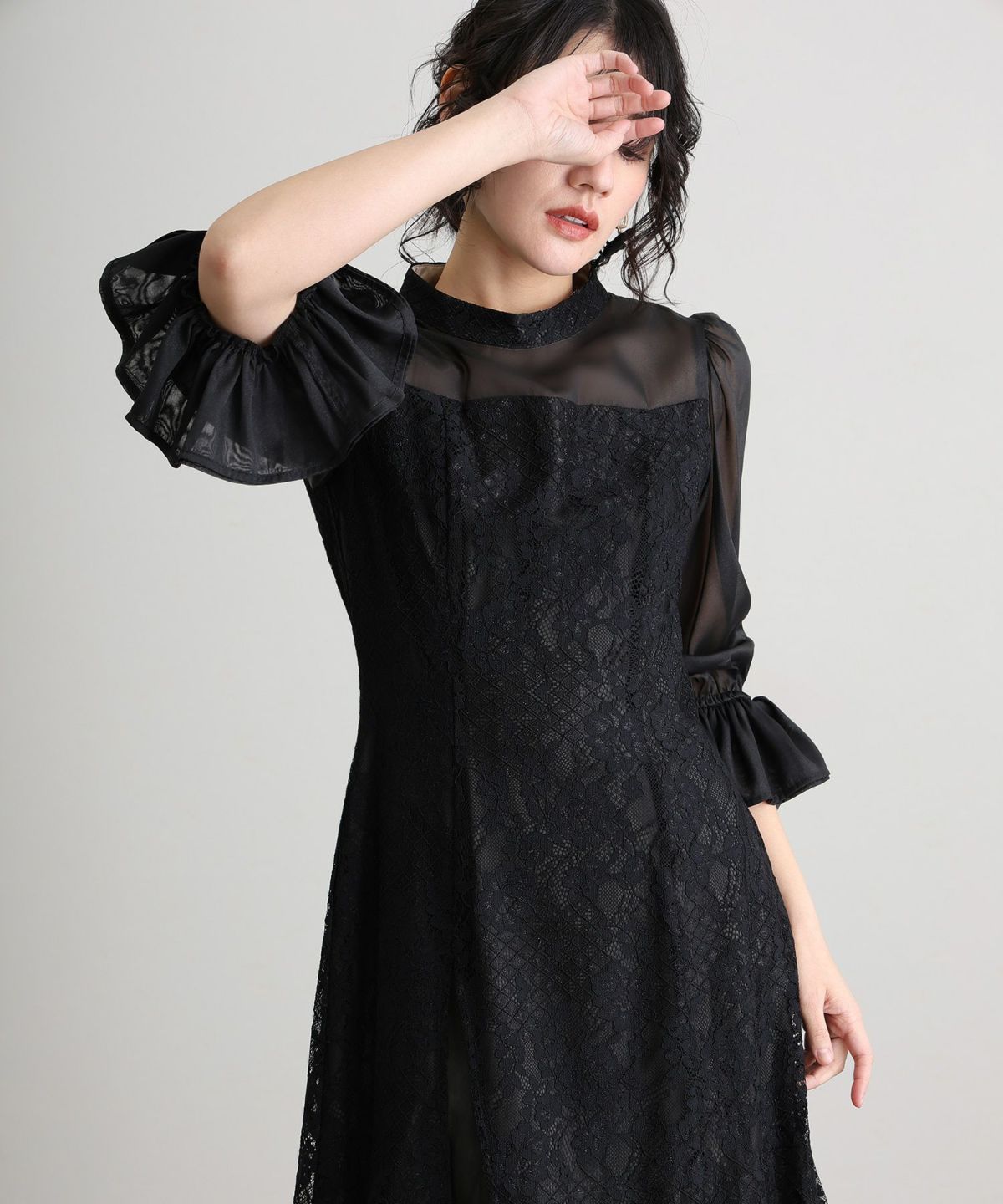レースとオーガンジー素材の組み合わせが華やか レースレイヤードワンピ―ス