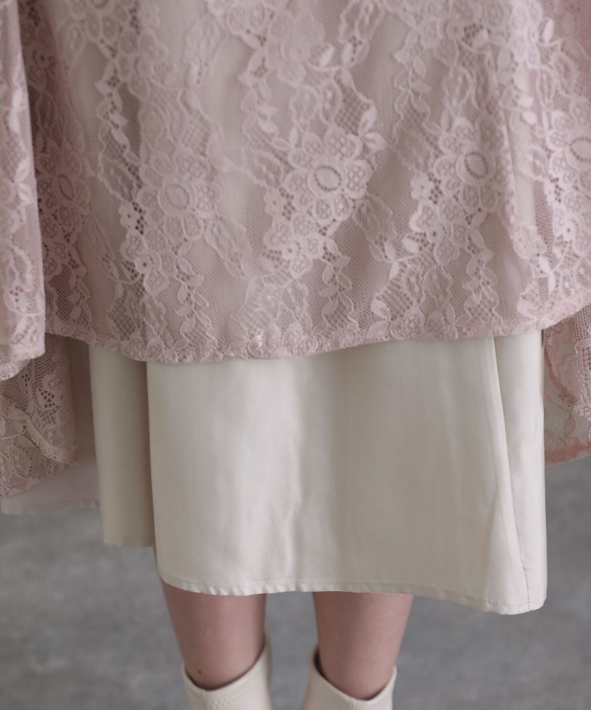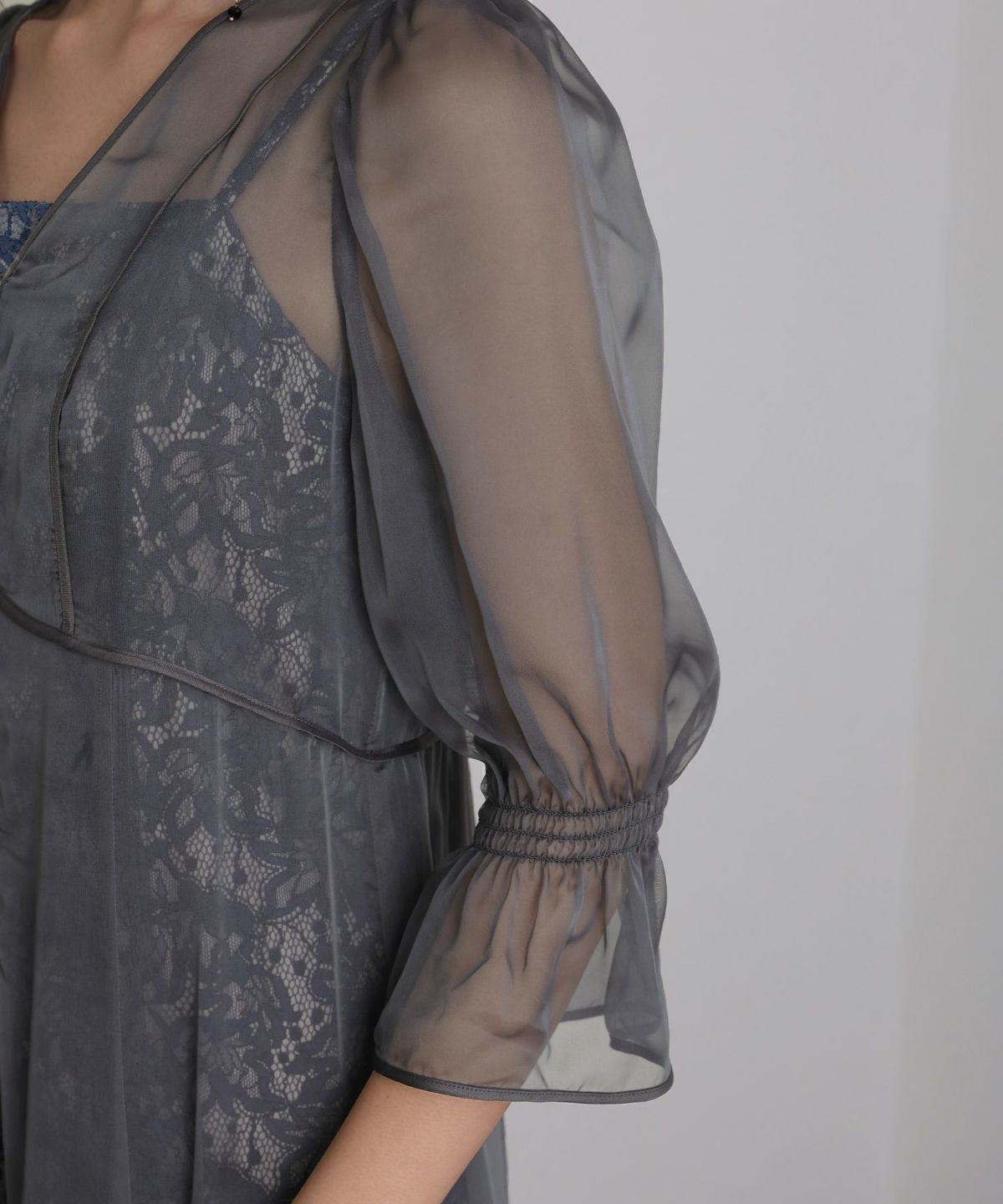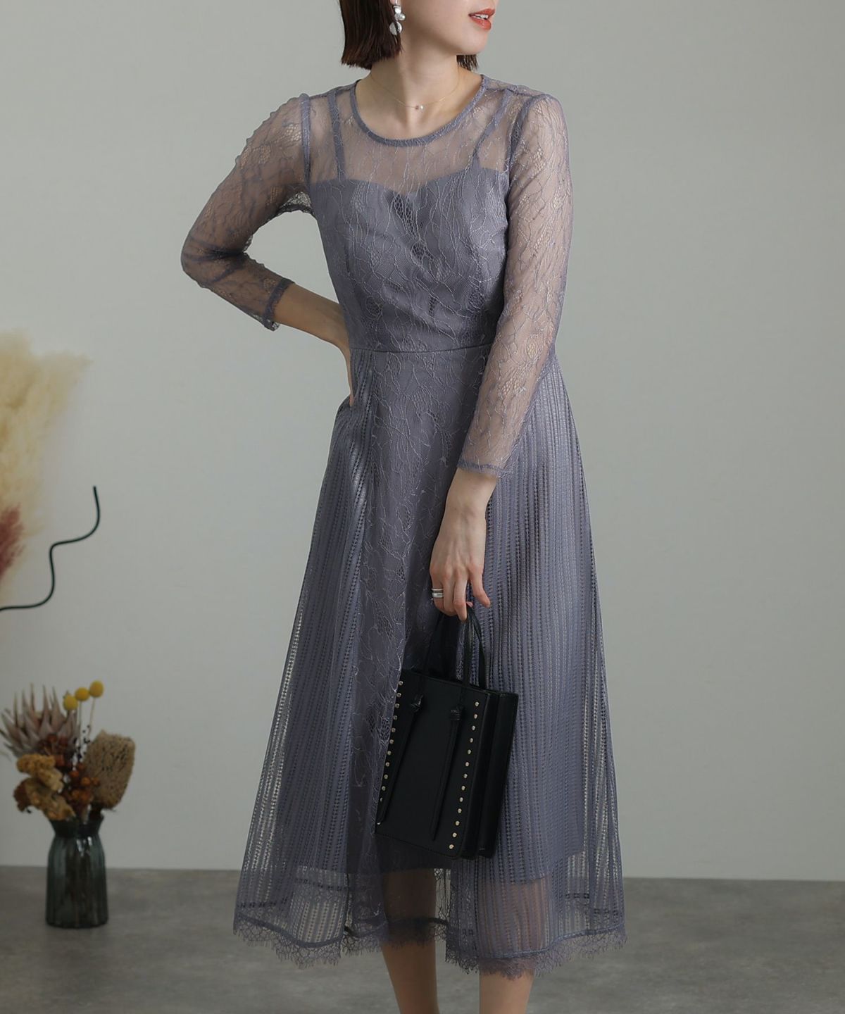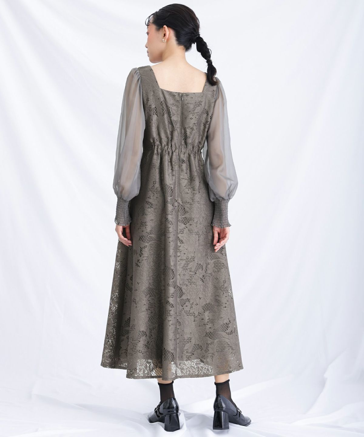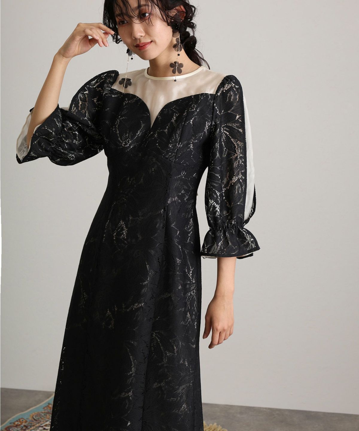 レースとオーガンジー素材の組み合わせが華やか レースレイヤードワンピ―ス