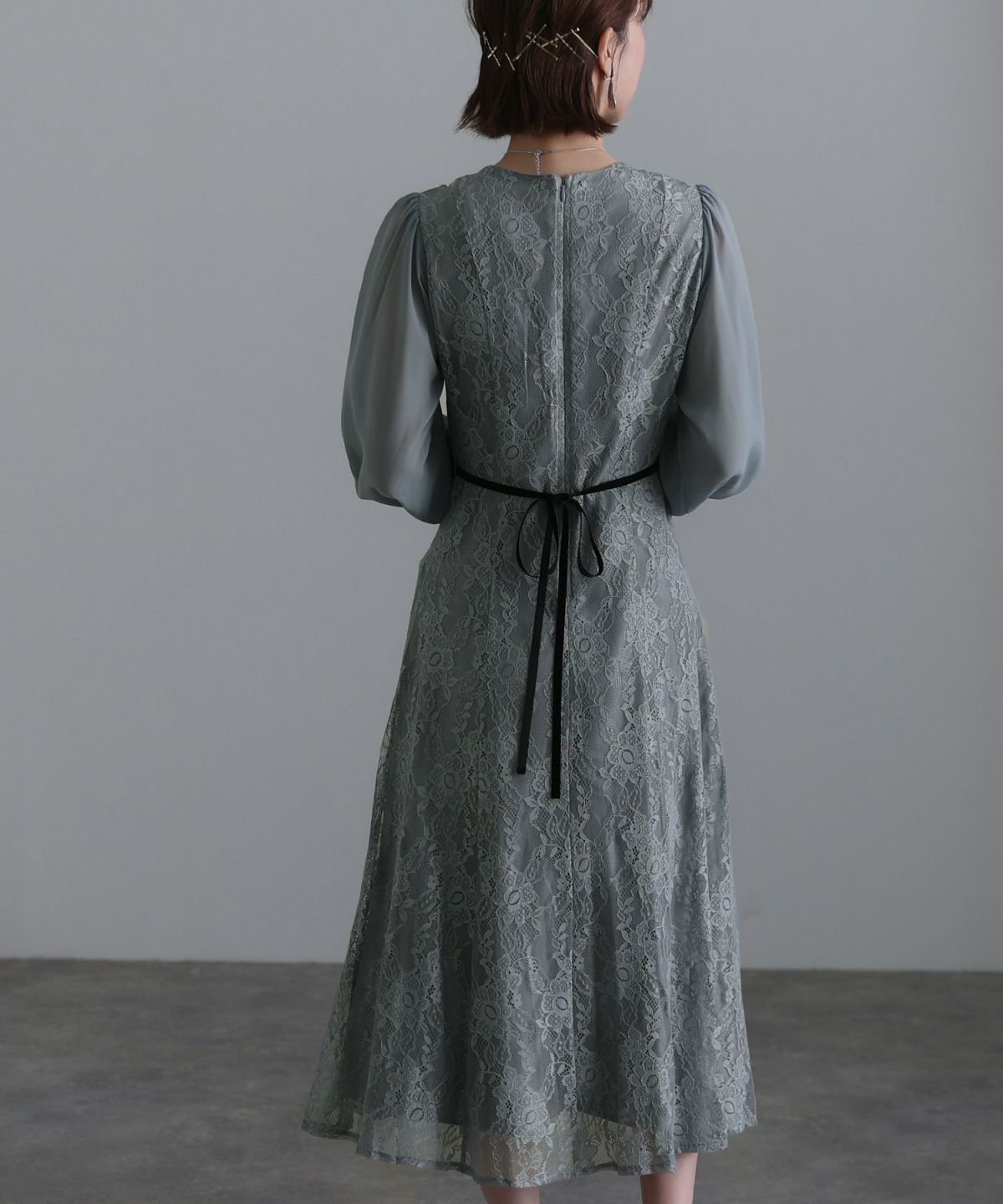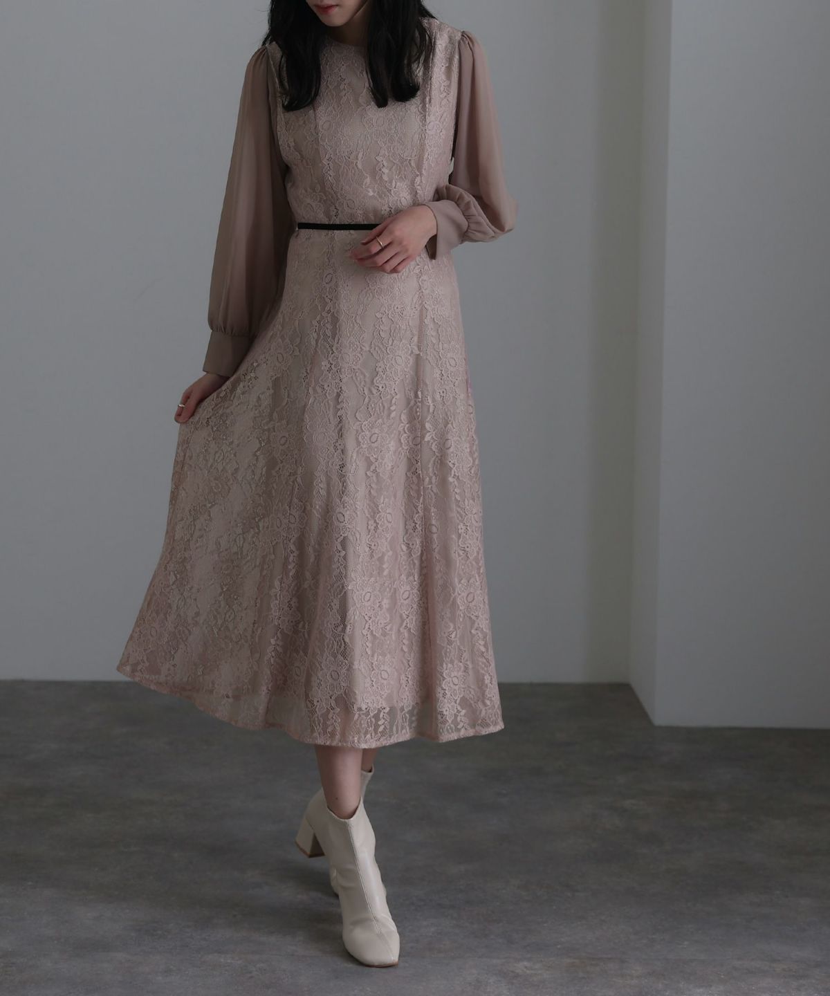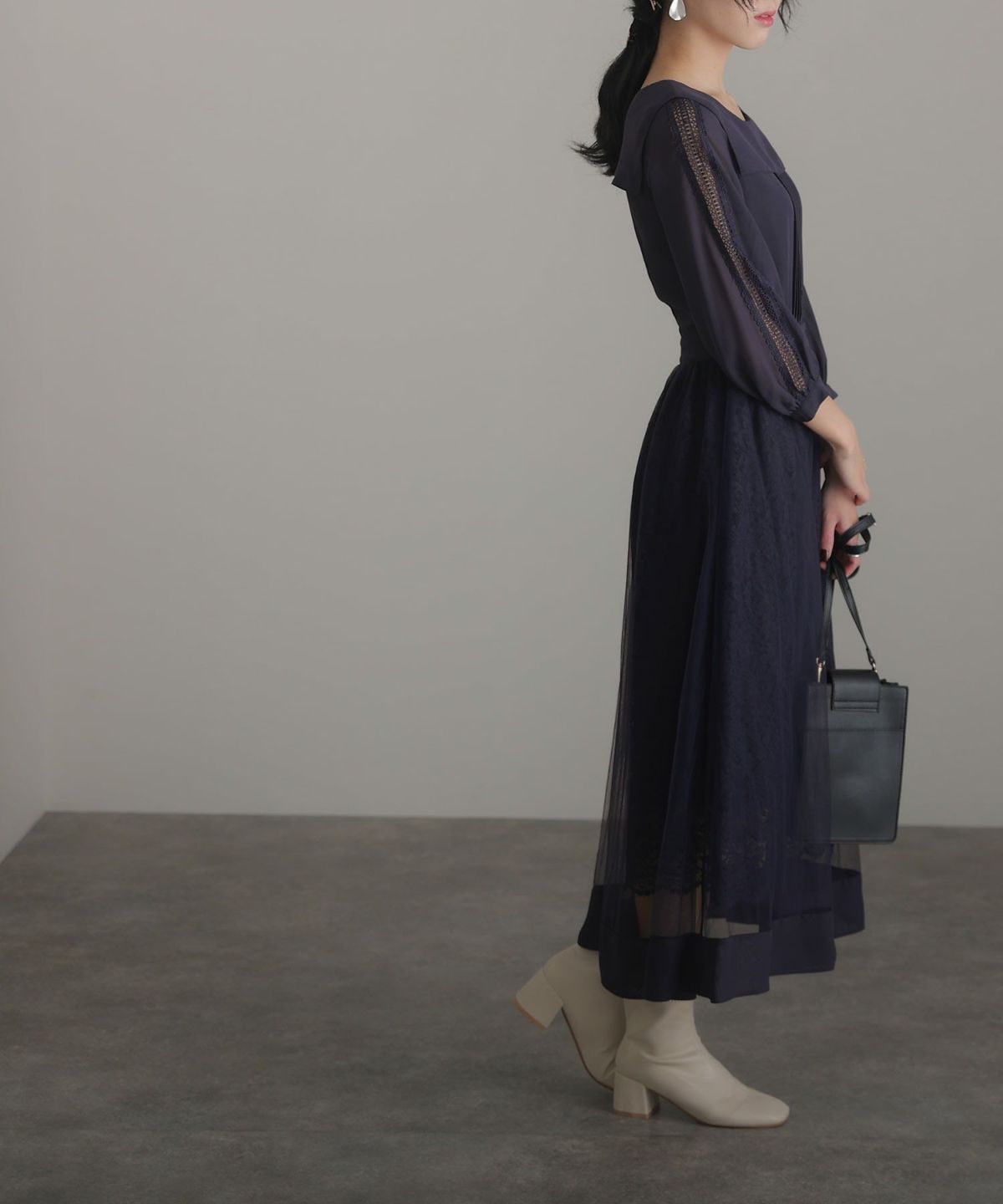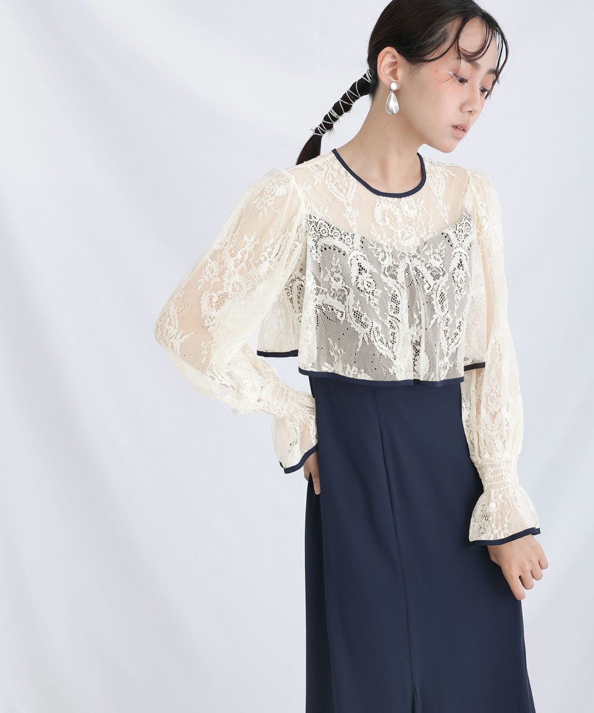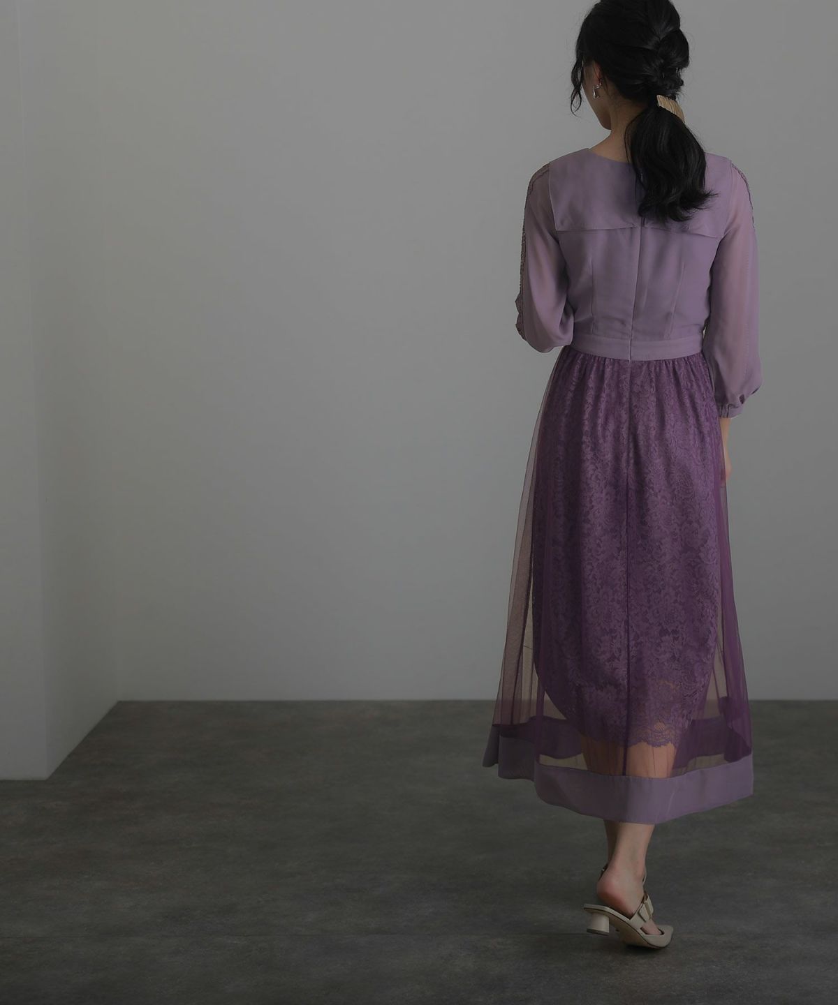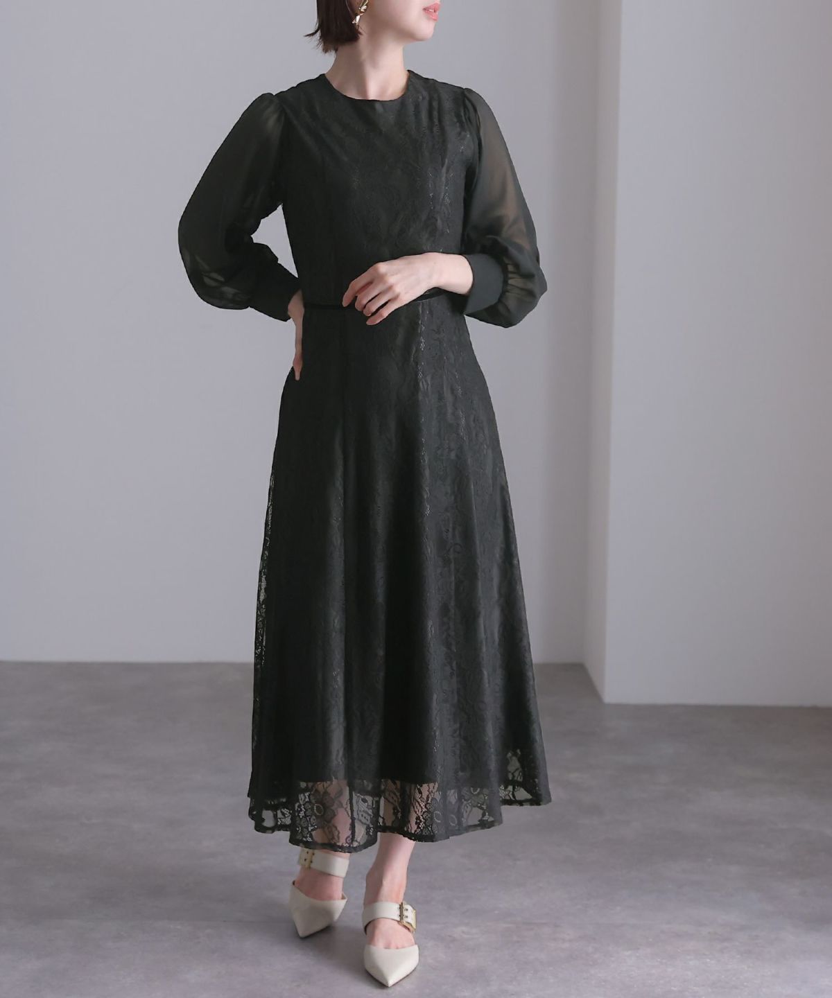 レースとオーガンジー素材の組み合わせが華やか レースレイヤードワンピ―ス